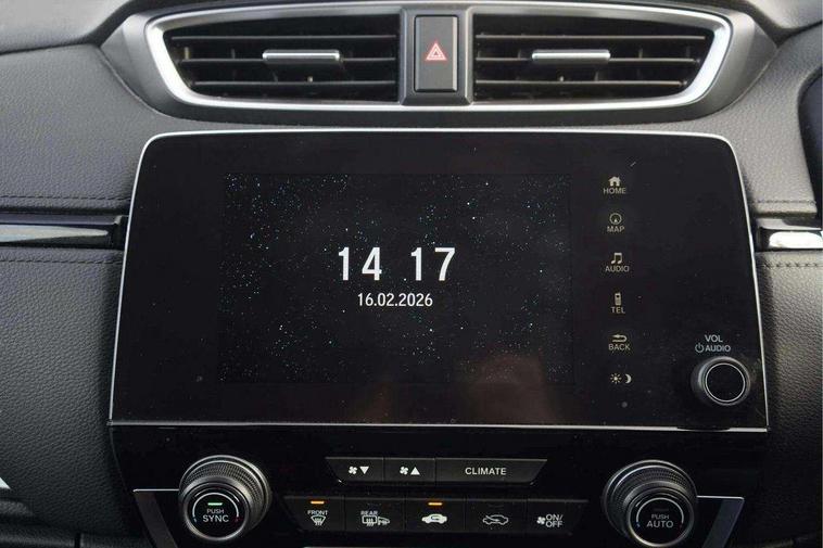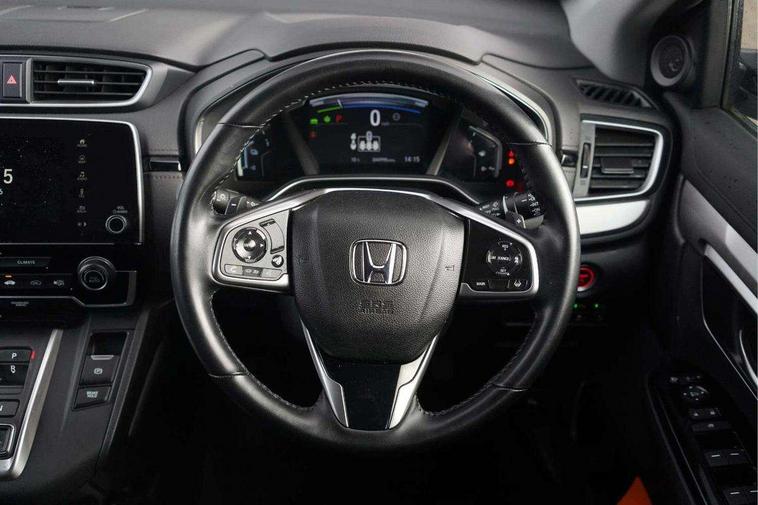 Adaptive cruise control, Agile handling assist, Bluetooth hands free telephone connection, E-call, Economy mode, Electric power steering, Emergency stop signalling system, Forward collision warning, Front parking sensors, Honda CONNECT with GARMIN Navigation + 7" touchscreen, DAB radio, Apple CarPlay, Android Auto, Aha app integration and internet browsing, Intelligent multi info display, Lane departure warning system, Lane keep assist system, Low speed following, Rear parking sensors, Rear view camera, Road departure mitigation, Speed limiter, Traffic sign recognition, Vehicle stability assist, 2 USB sockets in rear, 2x USB sockets in front, 9 speakers, DAB Digital radio, Dashboard centre speaker, Front tweeters, Steering wheel mounted controls, Subwoofer, Aspheric door mirrors, Auto dimming rear view mirror, Automatic headlights with dusk sensor, Body colour bumpers, Body colour door handles, Door mirrors tilt when reversing, Electric front windows/one touch facility, Electric rear windows + one touch facility, Electrically adjustable and heated door mirrors, Electrically retractable door mirrors, High beam assist, LED daytime running lights, LED front fog lights, LED Headlights, LED rear lights, Rain sensor, Rear privacy glass, Rear side wing doors, Rear wiper, Shark fin roof aerial, Third brake light, Welcome home function, 3 seat bench in 2nd row, 60/40 split folding rear seat, Accessory sockets, AWD emblem rear, Cargo hooks, Courtesy lights, Driver's electric adjustable lumbar support, Driver/passenger front seatback pockets, Driver/passenger sunvisors with illuminated vanity mirrors, Dual zone automatic climate control, Front centre armrest, Front map lights, Height adjustable driver's seat, Hybrid emblem, Illuminated glovebox, Instrument panel with garnish wood film, Isofix child seat preparation, Leather steering wheel, Paddle shift controls, Rear air vents, Rear centre armrest, Rear headrests, Rear reading lights, Rear seat conversation mirror, Silver interior door handles, Single front passenger seat, Sunglasses holder with mirror, Tilt/telescopic adjustable steering wheel, Tonneau cover, Trunk light, 5 x 3 point seatbelts, ABS/EBD, Anti-whiplash front headrests, Brake assist function, Collision mitigation braking system, Deflation detection system, Driver airbag, Electronic parking brake with auto hold, Front and rear curtain airbags, Front and rear seat belts with emergency locking retractor (ELR), Front side airbags, Hill start assist, Manual child lock in rear doors, Passenger airbag deactivate switch, Honda super locks, Immobiliser, Security alarm, Smart entry + Smart start, Ultrasonic security sensor, Tyre repair kit,
