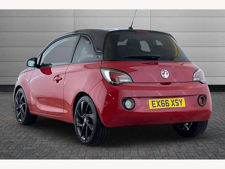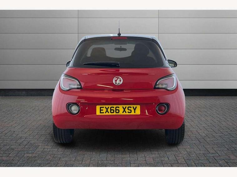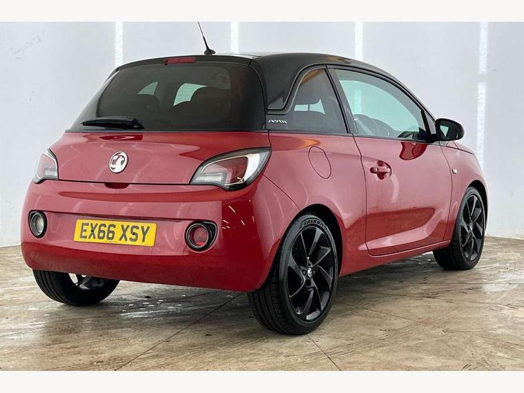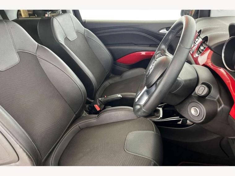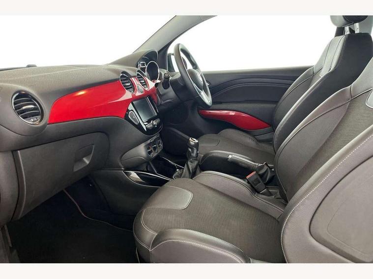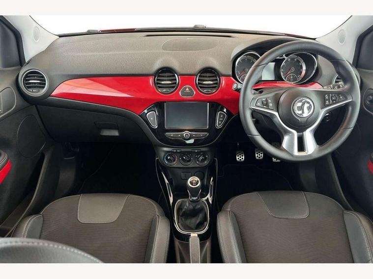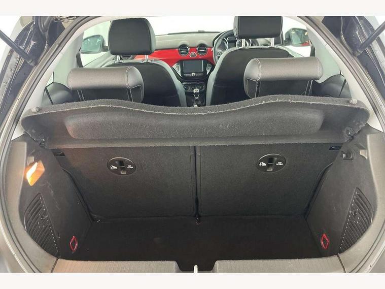 Bluetooth system, Cruise control + speed limiter, Digital clock, Electronic odometer and trip odometer, IntelliLink infotainment system, Low fuel level warning light, On board computer, Rev counter, Service interval indicator, Speed sensitive power steering, Auxiliary input socket, Bluetooth audio streaming, DMB digital radio, Steering wheel mounted audio controls, USB connection, Adaptive brake lights, Electrochromic automatic anti-dazzle rear view mirror, Front grille bar - Black jack, Laminated windscreen, LED daytime running lights, LED tail lights, 12V power socket in centre console, 2 rear cupholders in centre console, 50/50 split folding rear seat, Air conditioning, Air recirculation control/activation light, Colour-keyed fleece velour carpets, Driver/front passenger assist handle, Driver/front seatbelt pretensioners, Facia, door panel inserts in exterior colour, Front body-lock seatbelt pretensioners, Front door pockets, Front seats - 'Easy Entry', Height adjustable driver's seat, Height/reach adjust steering wheel, Illuminated load area, Interior courtesy light operated by all doors, Leather steering wheel, Luggage cover, Morrocana cloth upholstery, Sports pedals, Twin sunvisors with document holders and drivers covered mirror, Roof colour pack (Black Jack) - Adam, ABS, ESP plus, Hill start assist, Seatbelt warning, Side airbags, Side impact protection beams, Traction control, Tyre pressure monitoring system with individual tyre pressure display, Anti-drill door locks, Electric tailgate lock with touchpad, Folding key, Immobiliser, Locking wheel nuts, Remote central locking, 17" Hurricane alloy wheels in black gloss finish, Tyre inflation kit,