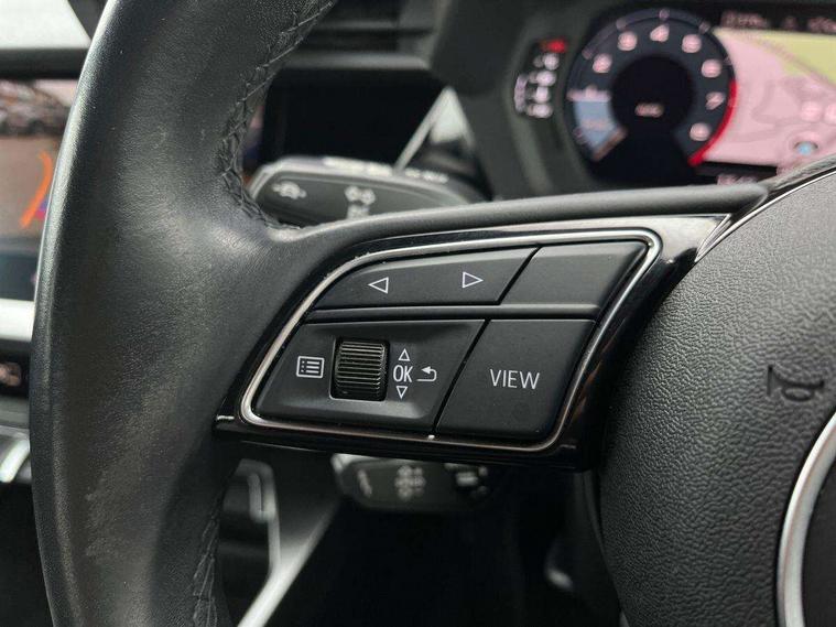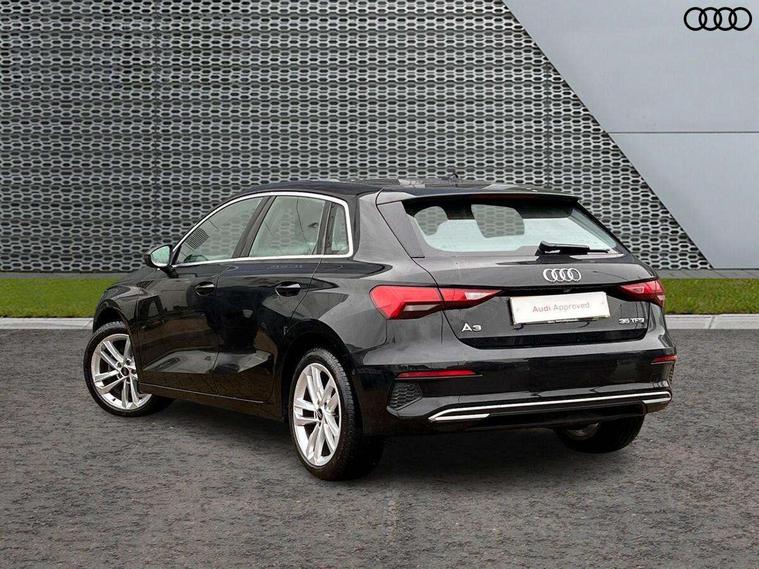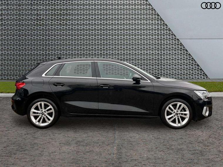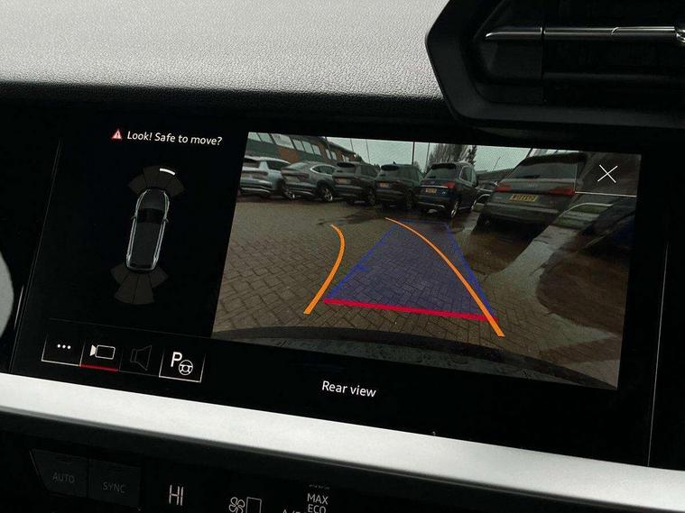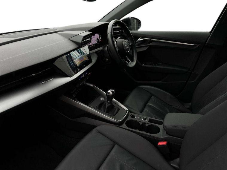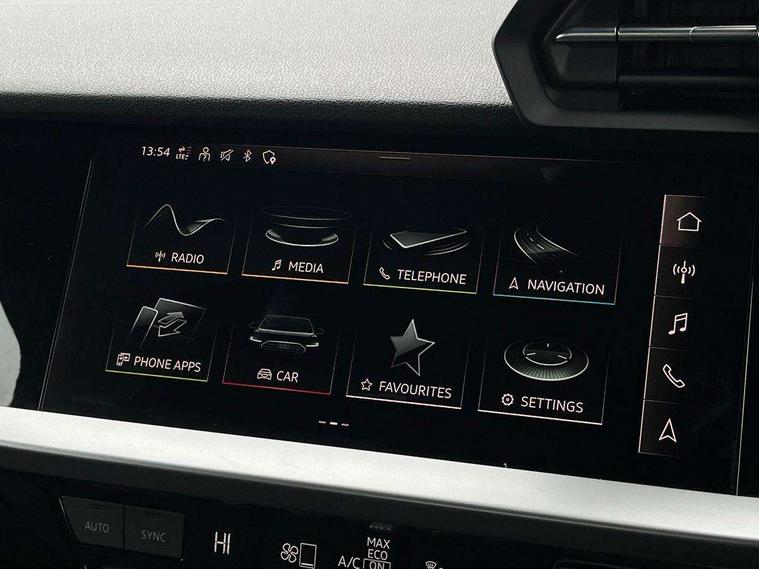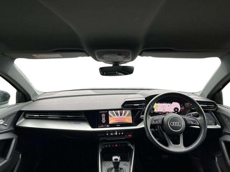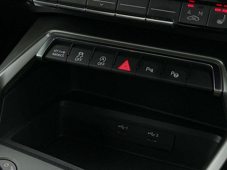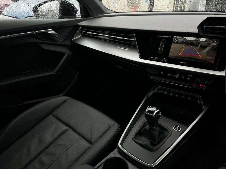 Audi connect emergency call and service, Audi drive select (Auto, Comfort, Dynamic, Efficiency and Individual), Audi smartphone interface, Audi Virtual Cockpit - 10.25" digital and colour instrument cluster, Automatic start/stop system with recuperation, Bluetooth interface, Collision avoidance assistant, Electromechanical power speed sensitive steering, Lane departure warning system, MMI Navigation Plus with high resolution 10.1" colour touch screen display, Service indicator, Trip computer, Voice control system with natural language interaction, Standard suspension, 2xUSB-C connection with data and charging functions, 6 passive loudspeakers, DAB Digital radio, 3rd brake light, Acoustic glass windscreen, Aluminium window trim, Auto dimming frameless rear view mirror, Body colour exterior mirrors, Body colour roof spoiler, Electrically adjustable/heated/folding/auto dimming door mirrors with integrated LED indications + kerb view function for passenger side, Front electric windows, LED daytime running lights, LED headlights and halogen rear lights, Light and rain sensors, Rear electric windows, Rear side wing doors, Rear window, rear door windows and rear side windows in clear glass, Rear wiper, 12V socket and storage compartment in front centre console, 3 seat bench in 2nd row, 40/20/40 split folding rear seat bench with cupholder, Dual zone electronic climate control, Front and rear centre armrest, Front and rear headrests, Front door sill trims with aluminium inlay, Front/rear floor mats, Height and reach adjustable steering wheel, Interior lighting - Front and rear roof module including reading lights, glove compartment light and right hand side, Luggage compartment floor covering, Manual boot compartment lid, Manually adjustable front seats, Seat side bolsters, Single front passenger seat, Steel grey cloth headlining, Twin leather upholstery, Aluminium interior elements pack - A3 Sportback, Sport styling pack - A3 Sportback, 3x3 point rear seat belts, Driver and front passenger airbag with passenger airbag deactivation, Electronic Stabilisation Control (ESC) including ABS, ASR and EDL, First aid kit with warning triangle and 2 safety vests, Front side airbags with head airbags and interaction airbag, Pre-sense front with pedestrian and cyclist detection, Seatbelt monitoring, Tyre pressure loss indicator, Anti theft alarm, Anti-theft wheel bolts, Immobiliser, Manual child locks, Remote control central locking, Inlays with silk effect paint in platinum grey,