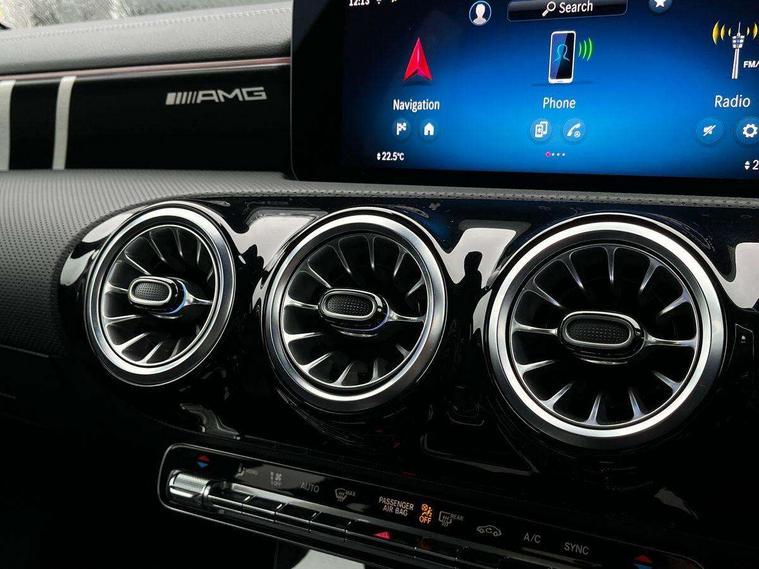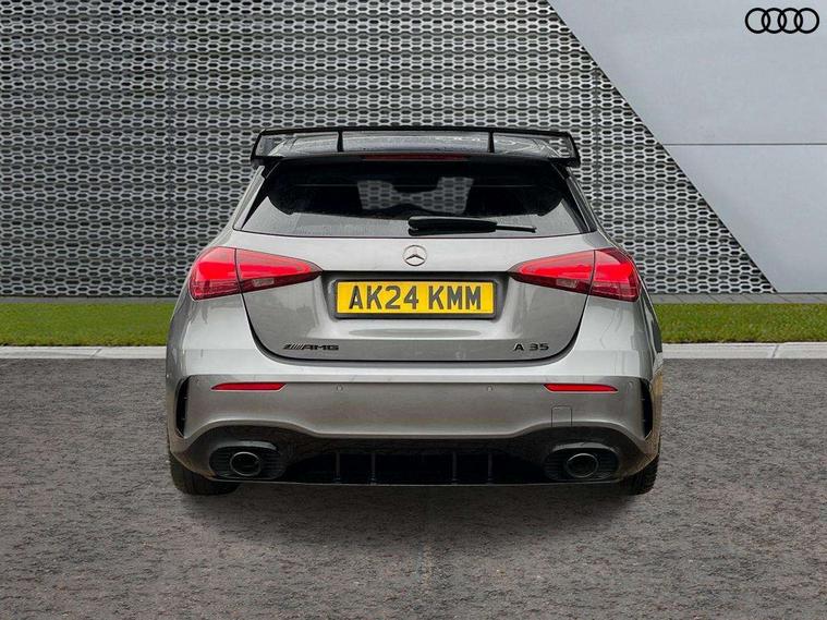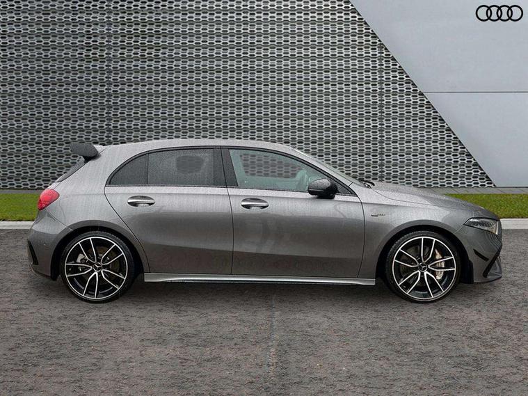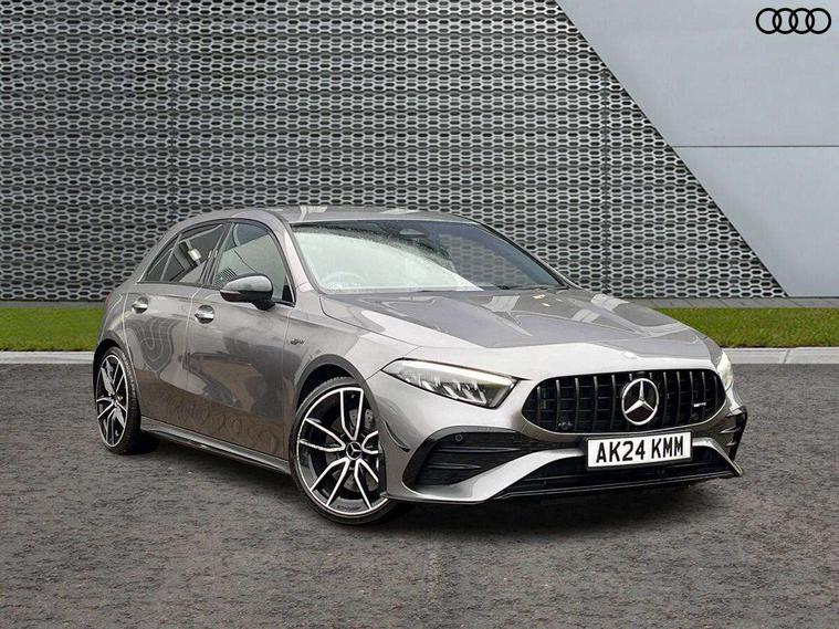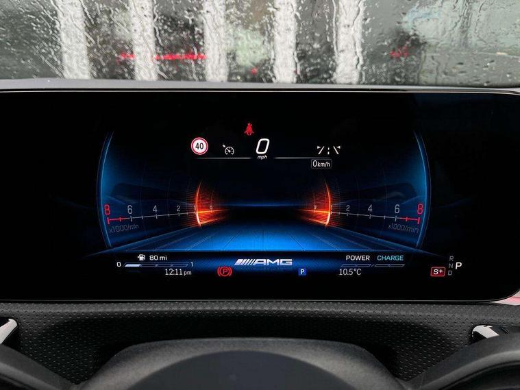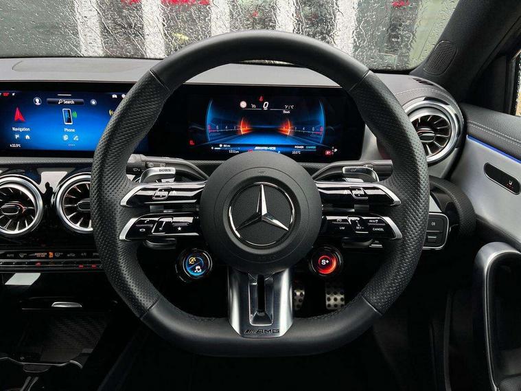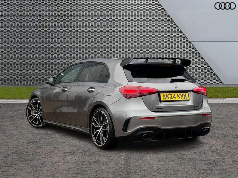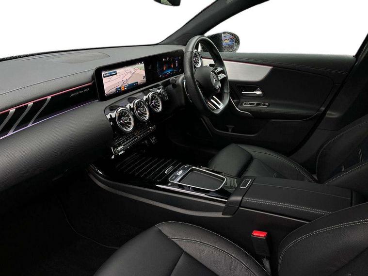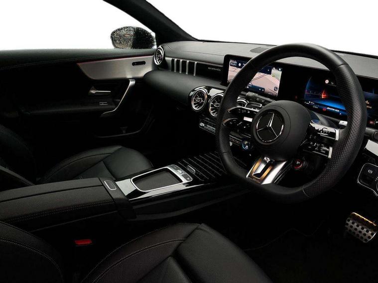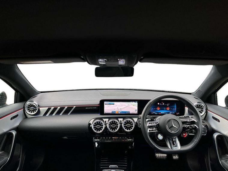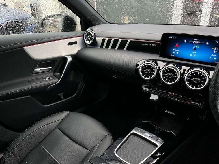 10.25 inch touchscreen central media display, 10.25" Digital instrument cluster display screen, Attention assist, Blind spot assist, Brake pad wear indicator warning light, Car wash mode, Cruise control + speed limiter, Direct steering, Direction indicators with lane change function, Dual bluetooth interfaces, DYNAMIC SELECT with driving programs (Slippery, Comfort, Sport, Sport+ and Individual), Easy pack tailgate hands-free access, ECO start/stop function, Engine start/stop button, Fluid level warning indicator for fuel, oil, coolant and washer fluid, Fluorescent jacket for driver, Hard-disk navigation, Hey Mercedes Voice activation, Lamp failure indicator, Lane keeping system, MBUX augmented reality for navigation, Mercedes me connect including emergency call system, accident recovery, breakdown and maintenance management, Mercedes me remote services, Outside temperature gauge, Owners manual in English, Pre-installation of private car share, Preinstallation for Mercedes Benz link, Remote boot closing, Service indicator (ASSYST), Smartphone integration with Apple CarPlay and Android auto, Speed limit assist, Speed sensitive power steering, Tailgate, Trip computer in multifunction display with current consumption indicator, Wireless charging, AMG suspension, DAB Digital radio, MBUX multimedia system, Mercedes Benz sound system (100 W) with 6 speakers, 4 Electric Front and Rear windows, Adaptive brake lights, AMG body styling - AMG front apron with front splitter and AMG rear apron and visible exhaust tailpipe trim elements, AMG Front apron with flics as air deflector elements on the outer air intakes, AMG Rear apron with specific diffuser look with four vertical fins and two round chrome plated tailpipe trim elements with a diameter of 90 mm, AMG spoiler lip on roof, Beltline strips in High gloss Black, Body colour bumpers, Body colour door handles with chrome inserts, Body colour side skirt, Darkened AMG specific radiator grille, Electric adjustable and heated door mirrors with integrated LED side indicators, Front splitter and trim elements on the louvres in the outer air inlets, Front wings wheel arches with TURBO 4MATIC lettering, Headlamp assist automatic headlamp activation, Heat insulating dark tinted rear and rear side windows, Heated glass rear windscreen + timer control, LED High level third brake light, LED High Performance headlamps including integral LED daytime running lamps and adaptive highbeam assist, LED tail lamp, Privacy glass, Radio aerial, Rain sensing windscreen wipers with two sensitivity settings, Rear fog lights, Rear side wing doors, Rear windscreen wiper, Wider wheel arches for AMG wheels, Window line trim strip in black, 3 seat bench in 2nd row, 4 way lumbar support, 40:20:40 split folding rear seats, Air conditioning - Two zone thermotronic luxury automatic climate control with display, AMG floor mats, AMG Performance steering wheel in nappa leather, Automatic child seat recognition sensor, Black air vents with surround in silver chrome, Black roof lining, Brushed stainless steel sports pedals with rubber studs, Front centre armrest with stowage, Front door sills with AMG lettering, Front seat backs luggage nets, Heated front seats, Height/reach adjustable steering column, Interior lighting - 64 colour Ambient lighting, Interior mirror with reading lamps in black and frameless, Rear armrest with 2 cupholders, Seat occupancy sensor for front passenger seat, Silver coloured aluminium gear shift paddles on steering wheel, Single front passenger seat, Sports seats with integrated headrests, Stowage compartment in centre console with retractable cover, Sunvisors with illuminated vanity mirrors, Twin front cupholders, Aerodynamic pack - A Class, AMG night pack - A Class, AMG night pack II - A Class, Light and sight pack - A Class, Mirror package - A Class, Parking pack - A Class, Seat comfort pack - A Class, USB pack plus - A Class, 3 rear 3 point seatbelts, ABS with Brake Assist, Active bonnet, Active brake assist includes forward collision warning system with autonomous braking, Adaptive brake assist with hold function and hill start assist, Black seatbelts, Bonnet with power domes, Childproof locks manually operated for rear doors and electrically operated for rear power windows, Crash responsive emergency lighting, Driver and passenger head and side airbags, Drivers knee airbag, Dual stage driver/passenger airbags, Electronic parking brake, ESP curve dynamic assist, ESP with ASR, Front and rear seatbelt reminder, Front brake calipers with AMG lettering, ISOFIX and top tether child seat fixing points in two outer rear seats, Tyre pressure monitoring system, Warning triangle and first aid kit, Window airbags, Alarm system/interior protection/immobiliser, Guard 360 degree vehicle protection, Keyless entry lock/unlock, Keyless Go, Remote central locking and crash sensor with emergency opening function, Aluminium AMG design black/silver interior trim, 19" AMG 5 twin spoke light alloy wheels painted in high gloss black with high sheen finish, Summer tyres, Tirefit sealant kit,