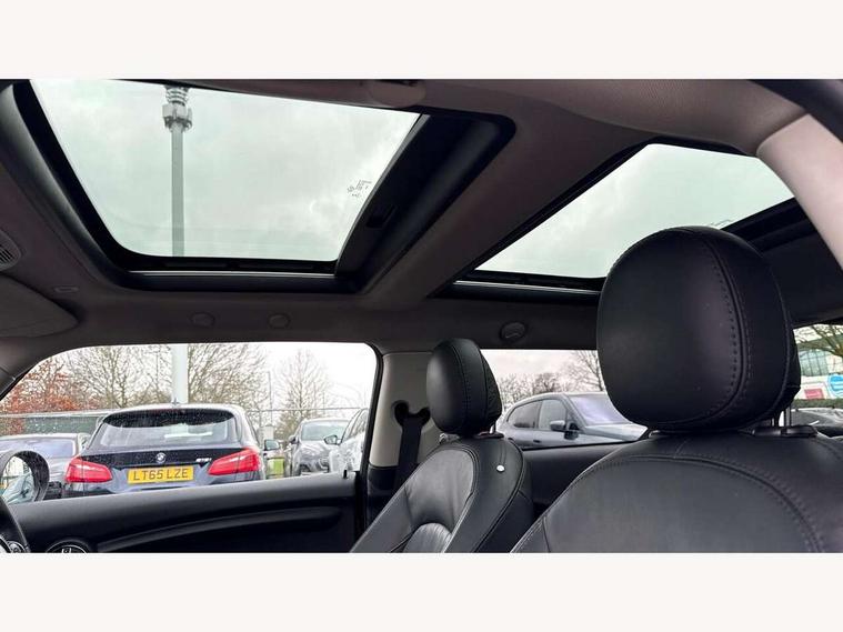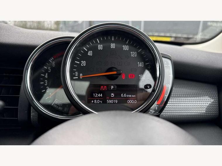 Acoustic seat-belt warning, Basic bluetooth function with USB audio, Brake fluid level warning light, Brake pad wear indicator warning light, DTC - Dynamic traction control, Exterior temperature gauge, Intelligent emergency call, MINI TeleServices, Oil level indicator, On board computer, Push button starter, Service interval indicator, Servotronic PAS, Electronic differential lock, Auxiliary input socket, DAB digital radio module, 2 speed wipers+intermittent wipe, Anti dazzle mirror, Anti trapping/one touch open close front windows, Body coloured bumpers, Chrome bezels around rear lights and headlights, Chrome door handles, Chrome exhaust tailpipe, Chrome grille surround, Chrome plated trim on bottom edge of window, Chrome strip on lower grille, Electric front windows, Electric rear windows, Electrically adjustable door mirrors, Flared wheel arches, Follow me home headlights, Green tinted heat insulating glass, Heated door mirrors/heated windscreen washers, Heated rear window with auto timer, High gloss black tailgate, LED fog lights, LED rear lights, Rear wiper, Roof spoiler in roof colour, Side scuttles, White indicator lights, 2 rear head restraints, 4 boot load lashing points, 4 way manually adjustable passenger seat with height, reach, tilt, backrest and headrest, 6-way manually adjustable driver's seat, Active carbon filter, Adjustable front seats backrest, Air recirculation system, Auxiliary socket in centre console storage compartment, Centre console storage, Driver's seat height adjuster, Driver/passenger sunvisors, Easy entry seats, Front and rear cupholders, Front head restraints, Front passenger grab handle, Gear/selector and handbrake in artificial leather, Internal chrome door handles, Isofix child seat preparation, Luggage compartment lighting, Multifunction steering wheel, Reach + rake adjustable steering column, Rear grab handles, Rear storage trays, Split folding rear seats, Storage compartments in doors, Toolkit in luggage compartment, 3 point seatbelts, 3x3 point rear seatbelts, ABS/EBD, ASC+T, Cornering brake control (CBC), Crash Sensor - activates hazard/interior lighting + unlocks doors, Driver and passenger airbags, Driver/front passenger side airbags, DSC - Dynamic Stability Control, Fuel cut off safety device, Head airbags, Hill start assist, Manual passenger airbag deactivation function, Seatbelt pretensioners, Tyre pressure warning, Ventilated front disc brakes, Drive away door locking, Locking wheel bolts, Remote central locking/doors+fuel cap+tailgate, Second remote key, Thatcham category 1 alarm + immobiliser,