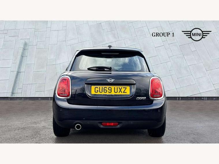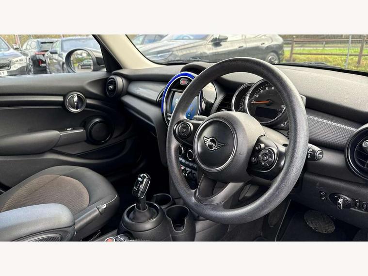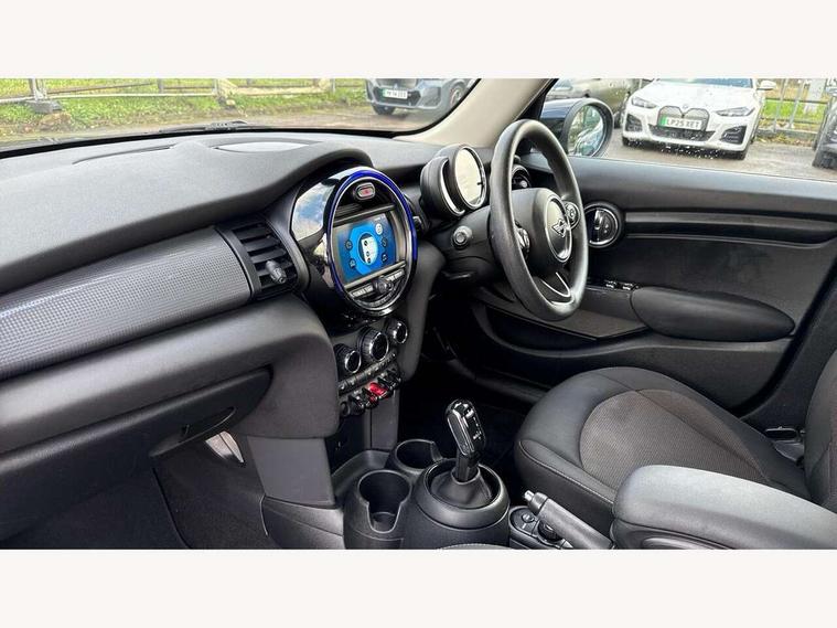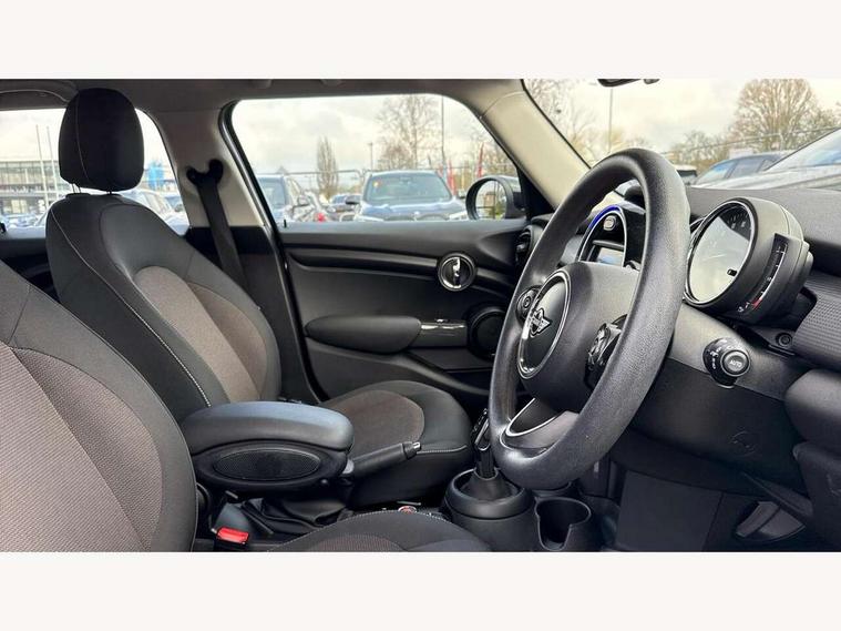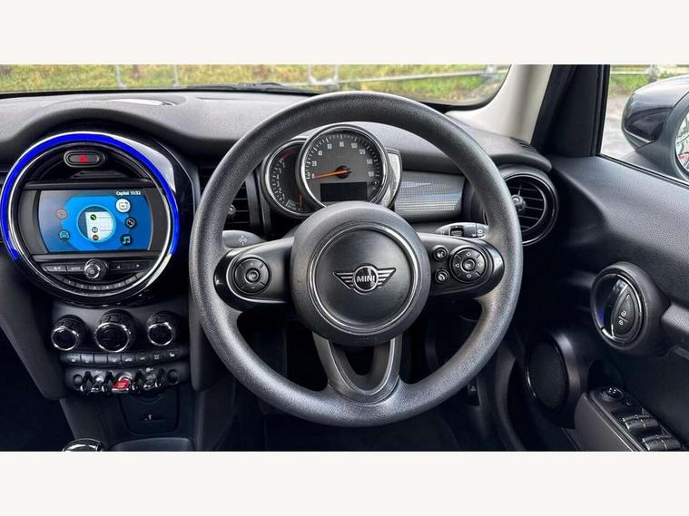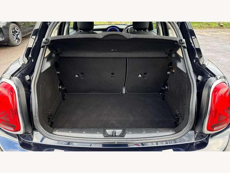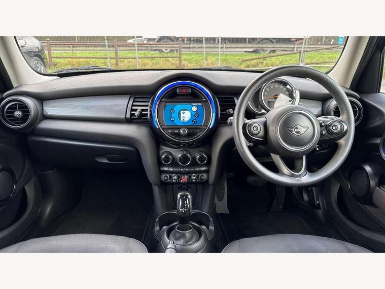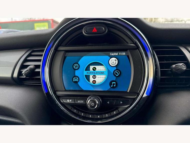 Automatic start/stop function with brake energy recuperation, Compatible mobile phone bluetooth with audio streaming, Electro-mechanical speed dependant steering assistance, Instrument cluster, Mini E-call, MINI TeleServices, On board computer, Service interval indicator, Double Vanos system, Fully variable valve control, High precision injection, Steptronic transmission with double clutch, 6.5" touchscreen with LED ring, FM tuner and DAB digital radio, Automatic headlight activation switch, Body colour fuel filler cap, Chrome border high gloss black slats radiator grille, Dynamic brake lights, Electric front+rear windows, Heated rear window, Heated windscreen washer jets, LED headlight with closed ring and daytime driving lights, Left exhaust tailpipe with chrome finisher, Metal door sill strips with MINI imprint, Model logo Cooper on right of tailgate, Rain sensor window wipers, Rear fog lights, Rear LED lights with union jack design, Rear window wiper, Side scuttle panel with integrated indicator, Sun/heat protection glass, White indicator lenses, 12V Accessory socket in centre console, 4 lashing eyes in luggage compartment, 60/40 split folding rear seat, Chrome interior highlights, Colour line - Carbon black, Cupholders, Front and rear head restraints, Front and rear isofix with front passenger airbag deactivation, Glove compartment, Height and length steering column adjustment, Interior lighting with 12 basic colours selectable via toggle switch in roof, Leather gearshift lever and handbrake gaiters, LED reading lights, vanity mirror lights, front foot well light and spotlight on front seats, Manual air conditioning, Mechanical seat adjustment, driver seat height adjust, forward/back and front seats backrest, Mini logo projection on floor from drivers exterior mirror, Multifunction steering wheel, Satellite grey headlining, Storage compartments in doors, Sunvisors with vanity mirrors, 3 point seatbelts on all five seats, 6 Airbags - front, side, head and seat belt tensioners, Anti-lock braking system (ABS), DSC - Dynamic Stability Control, Front and rear disc brakes, Hill start assist, Single tone fanfare horn, Tyre pressure monitoring system, Alarm system with tilt sensor, monitoring doors, bonnet interior and tailgate, Electronic vehicle immobiliser, Start/stop toggle with keyless go, Tool kit,