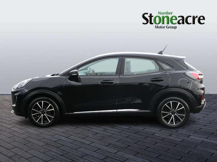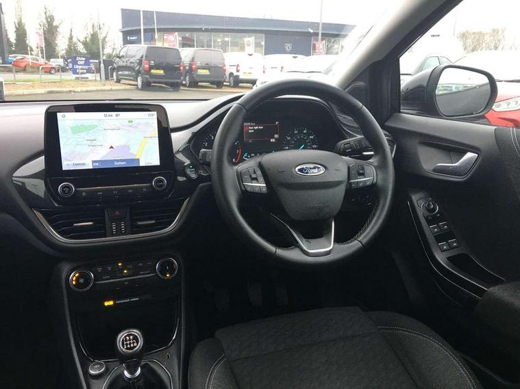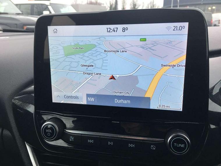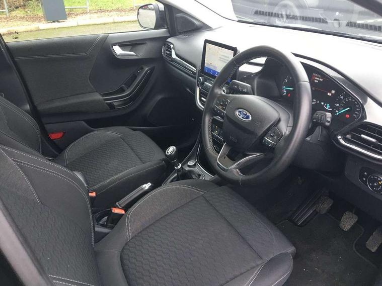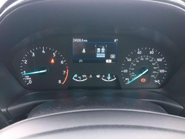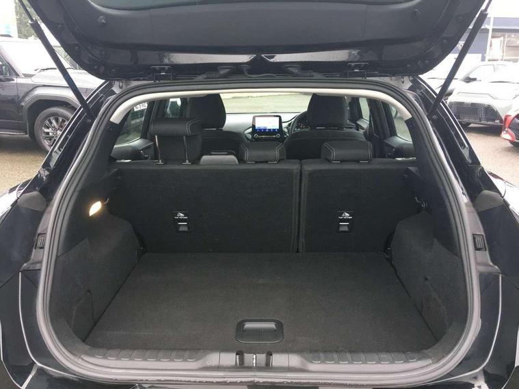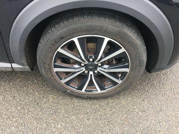 Driver impairment monitor, Emergency call service, Ford easy fuel, Lane keeping aid with lane departure warning, Power assist steering, Power start button, Rear parking sensor, Selectable drive modes(Normal, sport, Eco, trail, slippery), Speed sign recognition, Standard suspension, Automatic headlights with auto high beam, Automatic rain sensing wipers, Body colour rear spoiler, LED rear lamps, Projector headlamps with LED day time running lights and front fog lamps, Quickclear heated windscreen, Rear side wing doors, Rear wiper, Third brake light, 3 seat bench in 2nd row, Centre console with armrest and stowage, Electronic automatic temperature control (EATC), Ford megabox extended bootspace, Front and rear head restraints, Front floor mats, Manual 2 way passenger seat adjustment, Manual 4 way driver seat adjust with lumbar adjustment, Sensico leather steering wheel/gear knob/handbrake, Single front passenger seat, Titanium cloth upholstery, Driver assistance pack with Lane departure warning - Puma, Ford SYNC 3 navigation pack - Puma, 3 rear seatbelts, Child safety lock, Electronic stability control (ESC) and hill start assist, Tyre pressure monitoring system (TPMS), Thatcham alarm, 17" 10 spoke absolute black machined finish alloy wheel,