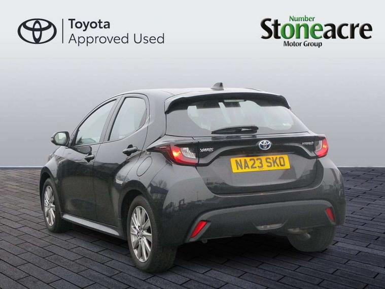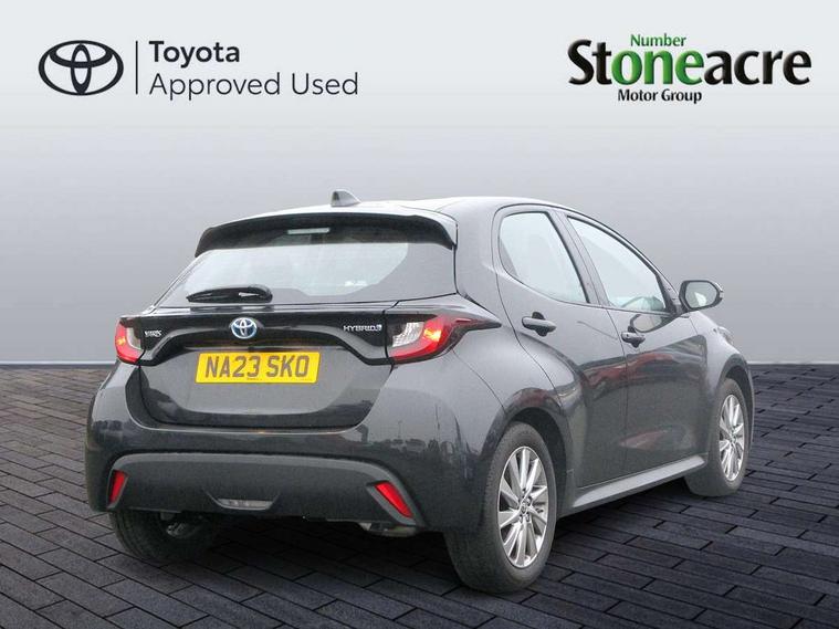 4.2" coloured TFT multi information display with analogue speedometer, Adaptive cruise control, Adjustable speed limit with speed warning, Bluetooth connectivity, E-call, Electric power steering, Hybrid energy display, Multi information display switches on steering wheel, Reversing camera, Smartphone integration with Apple CarPlay and Android auto, Tailgate, Voice recognition, Vehicle Stability Control (VSC), 4 speakers, 7" Multimedia display touch screen, Toyota Touch 2 with DAB, USB connection, Acoustic windscreen glass, Auto windscreen wipers, Automatic headlights, Body coloured door mirrors, Bulb indicators, Chequered front grille, Daytime running lights, Electric adjustable heated door mirrors, Follow me home headlights, Front auto power windows with anti jam protection, Halogen projector headlights, LED High mounted stop lamp, Manual headlight levelling, Rain sensor, Rear side wing doors, Rear spoiler, Rear wiper, Shark fin antenna, Turning signal integrated indicators in door mirrors, Variable front intermittent wipers, 3 adjustable rear headrests, 3 seat bench in 2nd row, 3 spoke leather steering wheel, 60/40 split folding rear seat, Active headrests, Adjustable boot height, Auto air conditioning, Coat hooks in rear grab handles, Cup holders (2 front & door), Data Communication Module (DCM) connected services, Fabric upholstery, Front armrest, Glovebox, Grey roof lining, Height adjustable driver's seat, Isofix seat fixing, Leather gearshift, Pollen filter, Shopping bag hooks, Single front passenger seat, Tilt/telescopic steering column, 3 point seatbelts on all rear seats, ABS+EBD+Brake assist, Electronic parking brake, Emergency brake light system (EBS), Front passenger airbag on/off switch, Front seatbelt reminder, Hill start assist control (HAC), Rear child proof door locks, Rear seat belt reminder, Supplemental Restraint System (SRS) 8 airbags: Driver & passenger's airbags, dual side curtain airbags, side impact airbags, front centre airbag, Toyota Safety Sense 2, Precollison + Night time Pedestrian & Cyclist Detection, Lane Trace Assist, Auto High Beam, Intelligent ACC & Road Sign Assist, Tyre pressure warning system, 2x Master key, Alarm/immobiliser, Remote powered central double locking doors, Soft touch instrument panel, Space saver spare wheel,