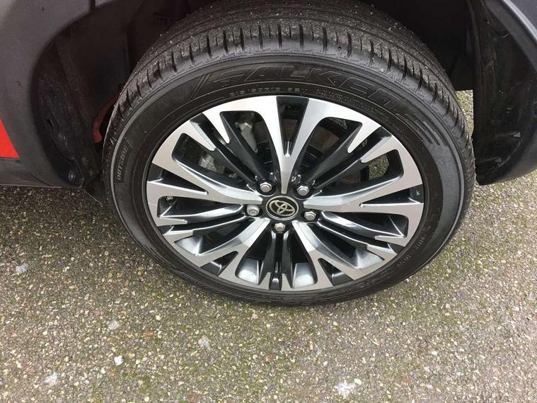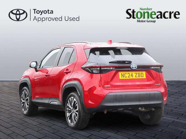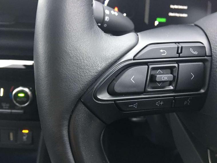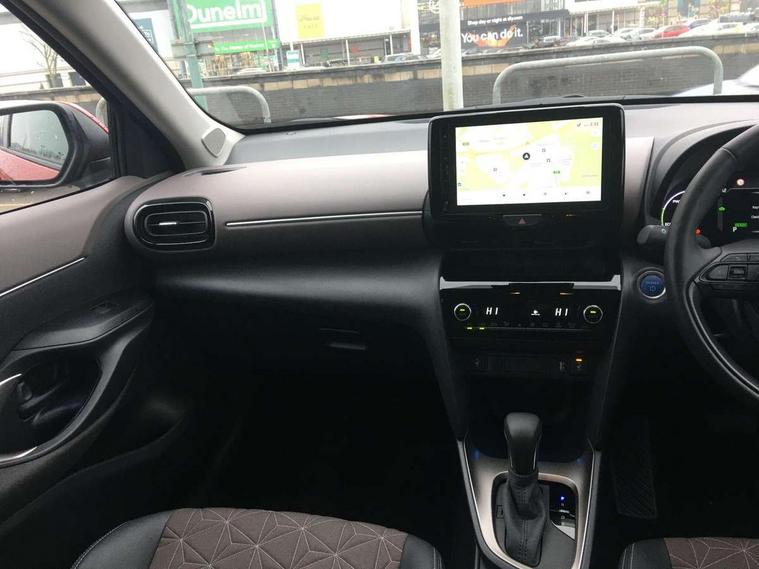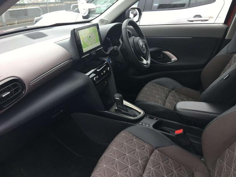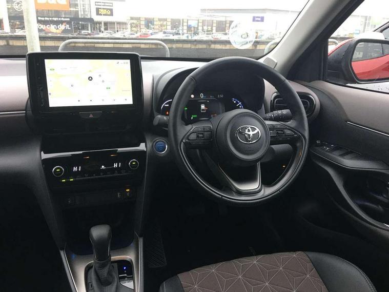 10.5" Multimedia display screen, 10.5" Toyota smart connect+ with navi multimedia system with wireless Smartphone integration incl Apple CarPlay, 360 degree panoramic view monitor, 7" Multi information display screen, Adaptive cruise control, multi info switches on steering wheel, Adjustable speed limiter, Advanced parking assist, Blind spot monitoring, Bluetooth connectivity, Color multi-information display, Digital speedometer, Digital tachometer, Drive mode selector, Driver attention alert system, Dynamic guide lines on reversing camera, eCall emergency system, Electric power steering, Emergency driving stop system, Full range intelligent adaptive cruise control, Hybrid system indicator, Intelligent front and rear parking sensors with clearance sonar and automatic braking, Intersection turn assist, Key reminder warning, Lane change assist, Lane departure warning, Lane trace assist, My T Connected services, Power tailgate, Pre-collision system enhanced with emergency steering assist, Rear cross traffic alert with brake assist, Remote boot door release in cabin, Road sign assist - RSA, Safe exit assist, Telephone switch on steering wheel, Wireless Mobile Phone Charger, Steering assisted vehicle stability control, 6 speakers, DAB Digital radio, Front USB Type-C connector, Front USB-C device charger, 3rd brake light, Acoustic windscreen glass, Anti-jam protection on power windows, Auto dimming rear view mirror, Auto high beam [AHB] with on/off switch, Auto intermittent windscreen wipers, Automatic headlights, Automatic headlights cut-off, Automatically retractable door mirrors, Black door moulding, Black lower front grille, Black protection moulding on side doors, Black roof rails, Black wheel arch mouldings, Body colour door handles, Body colour front bumper, Body colour rear bumper, Electric adjustable heated door mirrors, Follow me home headlights, Front and rear electric windows with auto up/down function, Gloss black upper front grille, Headlight cut off reminder, Indicators integrated on door mirrors, Intermittent rear wiper, Kick activated power back door, LED daytime running lights guide, LED front fog lights, LED front light guide, LED Indicators, LED projector headlights, LED rear lights with sequential indicators, Manual headlight levelling, Meshed upper front grille, Noise reduction layer on windscreen, Privacy glass, Rain sensor, Rear side wing doors, Rear spoiler, Rear window defogger, Shark fin antenna, 12v power outlet - front, 12V power point in boot, 2x Rear coat hooks, 3 seat bench in 2nd row, 3 spoke leather steering wheel, 40/60 split deckboard, 40:20:40 split folding rear bench seat, Adjustable rear headrests, Adjustable speed limiter switch on steering wheel, Boot light, Central armrest, Driver and front passenger personal lights, Driver and front passenger Whiplash injury Lesseing seats, Driver and passenger seatback pockets, Dual zone automatic air conditioning, Fabric door trim, Front console box, Front cup holders, Front door pockets, Front head restraints, Front sport seats, Front/rear assist grips, Gear shift indicator, Grey roof lining, Heated driver and passenger seats, Heated steering wheel, Height adjustable driver's seat, Height adjustable front passenger seat, Hooks for luggage holding belts, ISOFIX child restraint system, Lane departure alert switch on steering control, Leather gearshift, LED centre room light, Light on driver and passenger sun visor, Manual telescopic and tilting steering wheel, Mirror on driver and passenger sun visor, Nanoe-X air purifier, Partial synthetic leather upholstery, Pollen air filter, Power adjustable lumbar support on driver seat, Rear cup holders, Rear door pockets, Rear head restraints, Remote air-conditioning system, Single compartment glovebox, Single front passenger seat, Soft tonneau cover, Storage box under boot floor, Voice recognition switch on steering wheel, White ambient lighting in centre console, White ambient lighting in footwell, White ambient lighting on front doors, Yaris cross floor mats, Tech pack - Yaris Cross, 3x3 point rear seat belts, ABS+EBD+Brake assist, Downhill Assist Control (DAC), Driver and passenger central airbags, Driver and passenger front airbags, Driver and passenger side airbags, Electronic parking brake, Emergency brake light system (EBS), Front seat belt reminder, Hill start assist control (HAC), Passenger airbag on/off switch, Pre-collision system with pedestrian and cyclist detection, Rear door child safety locks, Rear passenger side airbags, Rear seat belt reminder, Traction control, Tyre pressure warning system, Immobiliser, Intrusion alarm, Keyless smart entry with push button start, Power door locks, Power passenger window lock, Remote door lock, Gloss black side air vent surrounds, Tyre repair kit,