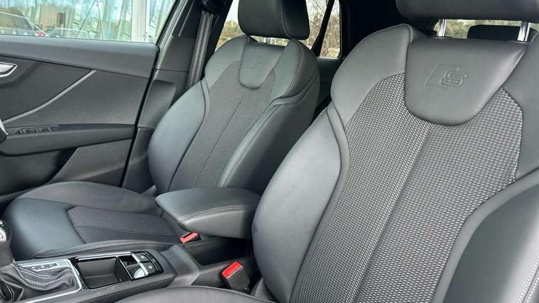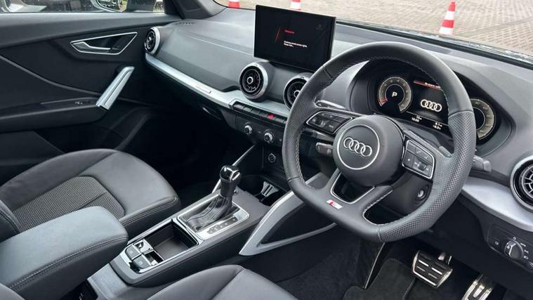 3D map display, Audi connect navigation and infotainment includes innovative services, Audi connect remote and control connects your vehicle to your smartphone, Audi drive select: S tronic - power steering assistance + engine + gearshift (modes: comfort, auto, dynamic, efficiency, individual), Audi smartphone interface - Apple carplay/Android Auto, USB connect, 2xSDXC card readers, voice control for navi, telephone, music and 3rd party apps, Audi virtual cockpit, Automatic start/stop system with recuperation, Bluetooth interface includes bluetooth audio streaming, Camera based traffic sign recognition, Cruise control, Distraction and Fatigue warning, E-call, Jukebox hard drive memory for music (10GB), Lane departure warning, MMI navigation plus with 8.8" touchscreen, Natural voice recognition, Power operated tailgate, Progressive steering, Rear parking sensors, Sport suspension, 6 passive loudspeakers, DAB Digital radio, USB type C port, Audi beam, Auto dimming rear view mirror, Black window trims, Bumper in full body colour paint finish, Electrically adjustable, folding, auto dimming and heated door mirrors with integrated LED side indicators, Front windscreen with grey tinted sunband, LED daytime running lights, LED headlights with dipped beam, high beam, position lights, indicators, LED rear lights, LED third brake light, Privacy glass - dark tinted rear and rear side windows from B-pillar backwards, Rear side wing doors, Rear wiper, Variable front intermittent wipers, Wheel arch trims in manhattan grey, 12V socket in front, 3 seat bench in 2nd row, 3 spoke flat bottomed multi-function leather sport steering wheel with gear shift paddles with S logo, 4-way electric lumbar support for front seats including manual seat height adjustment for both front seats, 60/40 split folding rear seat bench, Black carpets, Black cloth headlining, Front and rear head restraints, Front centre armrest, Front sport seats, Front/rear floor mats, Height/reach adjust steering wheel, Illuminated door sill trims with S logo, ISOFIX child seat mounting in front passenger and rear outer seats, Manual air conditioning, Single front passenger seat, Stainless steel pedals, Black styling pack - Q2, 3x3 point rear seatbelts, 6 airbags - Front, curtain and front side airbags, Electromechanical parking brake, Electronic stabilisation control including ABS, ASR and EDL, Front passenger airbag deactivation, Hill hold assist, Pre-sense front with pedestrian recognition, Seatbelt monitoring, Tyre pressure warning light with visual and acoustic warning, Warning triangle and first aid kit, Anti theft wheel bolts, Electronically operated child locks, Remote central door locking, Thatcham category 1 alarm, Aluminium interior element, Black dashboard, Gloss black centre console, Matt brushed aluminium trim inlays, Tool kit,