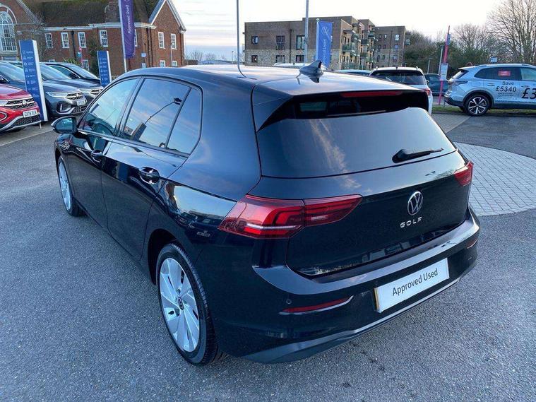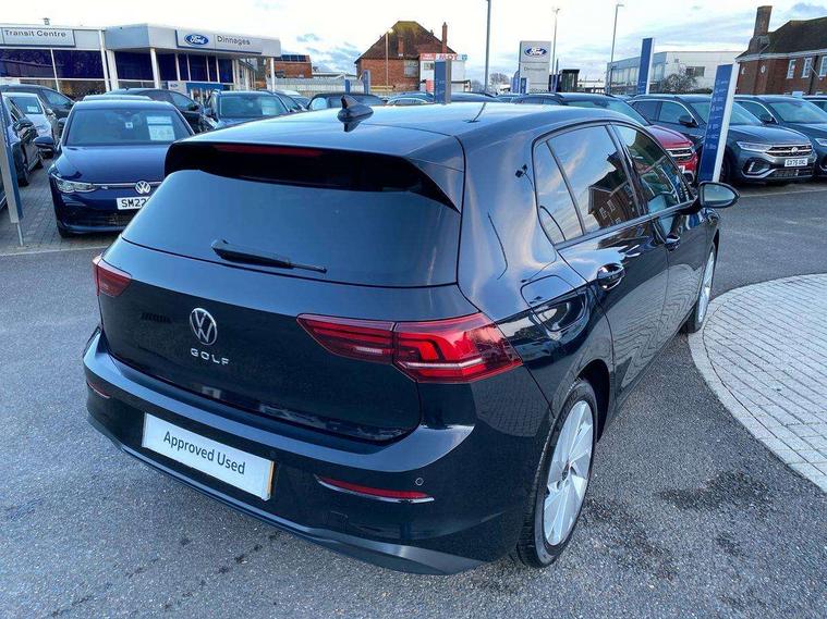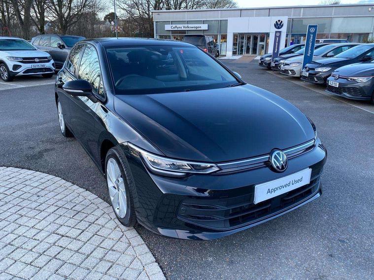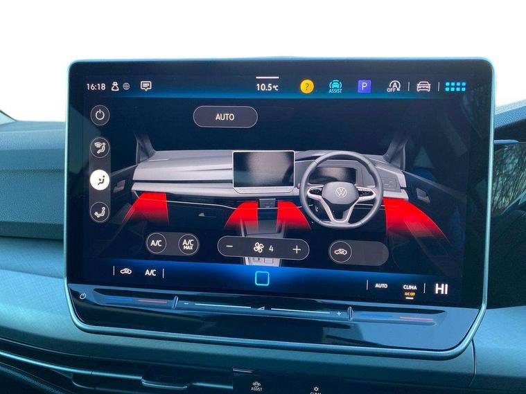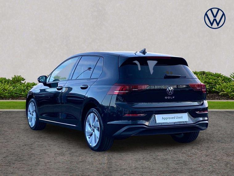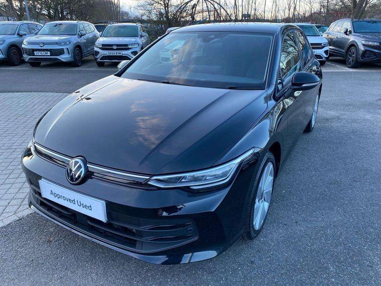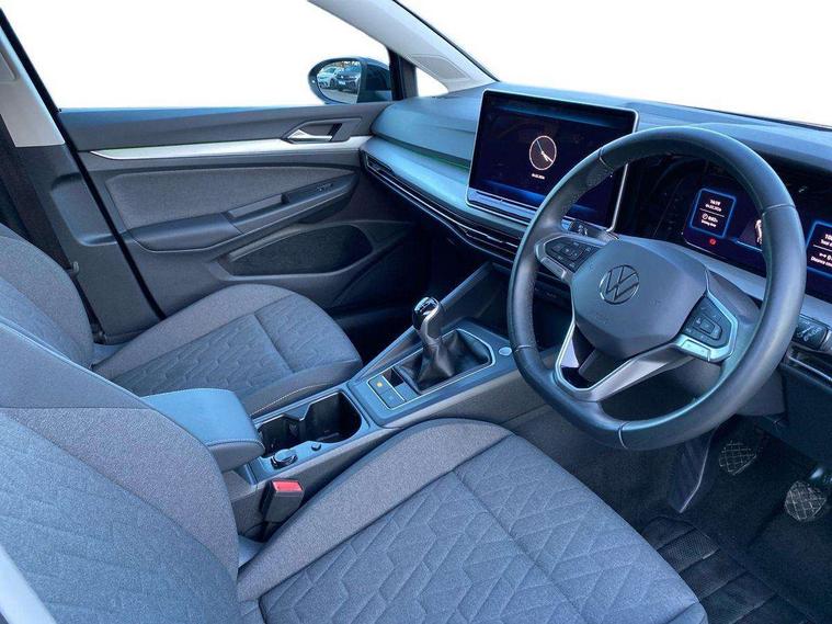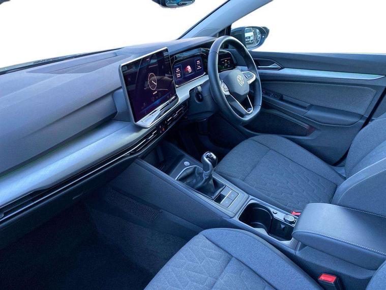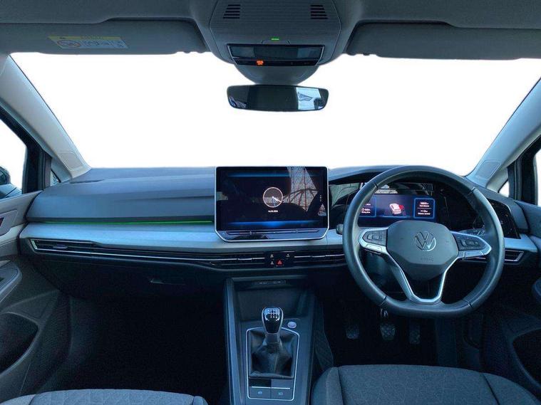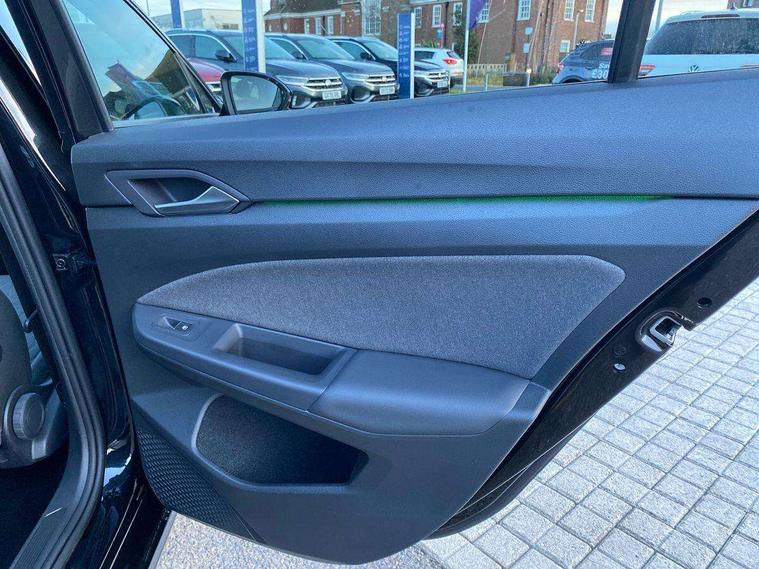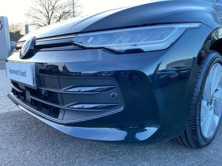 Activated carbon canister, Adaptive cruise control (ACC), Advanced driver attention and drowsiness monitor, Dynamic road sign display, E-Sim card for online connectivity, eCall emergency call system, Multi-color Digital cockpit pro, selection of different info profile possible, Multifunction front facing camera for distance control, Navigation system, Oncoming vehicle braking when turning including swerve support, Preparation for light assist system, Speed limiter, Speedo, rev counter, electronic odometer, trip, service interval display, exterior temperature and fuel gauge, Voice enhancer and voice control, Warning signal and warning light for front and rear seatbelts not fastened, We connect plus preparation, We connect preparation, Wireless app connect, Petrol Particulate Filter, Start-stop system with battery regeneration (recuperation - energy recovery during braking), XDS electronic differential lock for improved traction and handling, 2 USB C ports in front, 2 USB charging sockets on the centre console in the rear charging capacity upto 45W, Comfort telephony + wireless charging, without wireless aerial connection, Digital radio reception (DAB), Diversity antenna for FM reception, Gaming platform via car app, Infotainment system with 12.9" display, Mobile phone interface with inductive charging feature, 3rd brake light, Auto dimming rear view mirror, Auto headlights, Automatic headlamp activation with Coming home and Leaving home feature, Body colour door handles, Body colour door mirrors, Exterior ambient lighting with illuminated door handles, Exterior mirrors convex on the left and aspherical on the right, Front and rear electric windows, Heat insulating windshield made of laminated glass, LED daytime running lights, Rain sensor, Rear exhaust tailpipe, Rear fog light on one side and reversing lights on both sides, Rear side wing doors, Rear tinted glass 65% light absorbing from B pillar backwards, Rear windscreen washer and wiper with interval delay, Remote electrically foldable door mirrors, puddle lights and reverse activated passenger's door mirror, Standard bumpers, Welcome light with surround lighting, 12V socket in front centre console, 12V socket in luggage compartment, 3 rear head restraints, 3 seat bench in 2nd row, Chrome plated radiator grille inserts, air vent surrounds and light switch surrounds, Front centre armrest, Front head restraints, ISOFIX anchors for child seats on outer rear bench seats and on front passanger seat compatible for i-Size, Leather gearshift handle, Luggage compartment lighting, Rear cupholder and loadthough, Single front passenger seat, Soul black instrument panel, Split folding backrest with centre armrest and unsplit rear seat bench, Standard pedal cluster, Storm grey roof lining, Sun visors with illuminated vanity mirrors, Parking and comfort pack - Golf Estate/Hatchback, 3 point height adj front seatbelts + pretensioners, 3 rear three point seatbelts, ABS, Autonomous emergency braking front assist with pedestrian and cyclist monitoring, Child locks on rear doors, Driver and front passenger airbag with front passenger airbag deactivation, Electronic parking brake with auto hold, ESC (Electronic Stability Control), Extended pedestrian protection measures, Rear disc brakes, Two tone horn, Tyre pressure loss indicator, Volkswagen roadside assistance, Alarm with interior protection, Anti theft wheel bolts, Keyless start with SAFE lock, Preparation for alcohol interlock, Nature cross brushed decorative inserts for dashboard and front door panels,