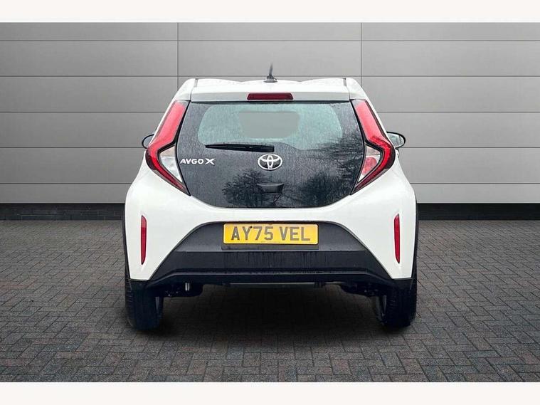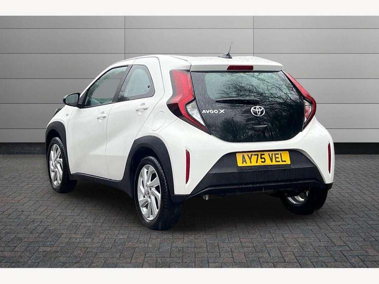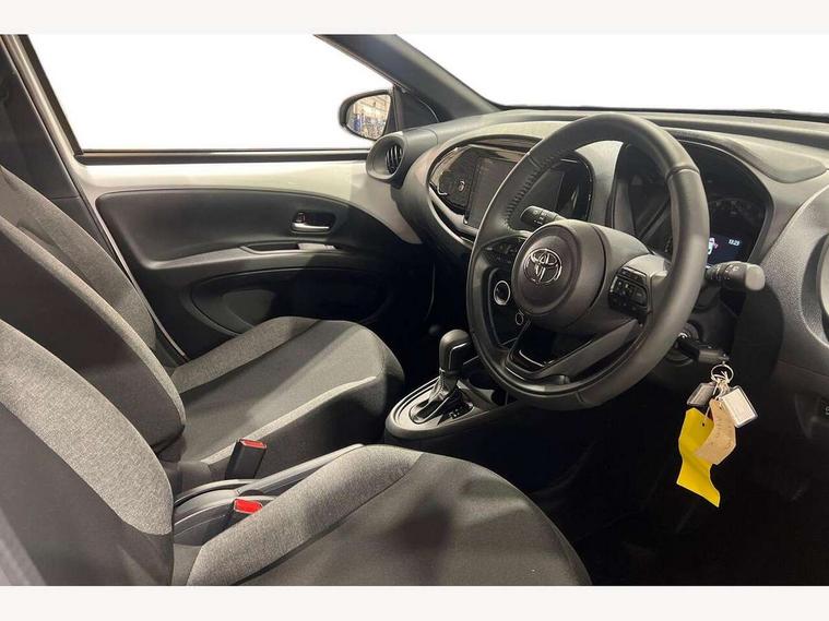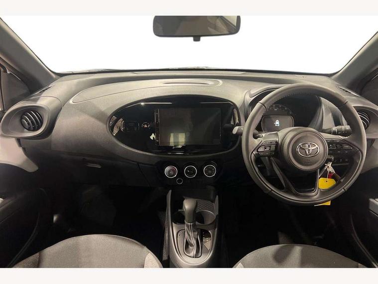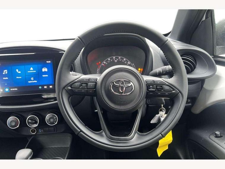 4.2" TFT colour screen, Adjustable speed limiter, Analogue speedometer, Bluetooth connectivity, Digital tachograph, Driver attention alert system, eCall emergency call system, ECO-driving indicator, Electric power steering, Intersection turn assist, Key reminder warning, Noise reduction kit, Pre collision system with emergency steering assist, Reversing camera with static guide lines, Smart phone integration with Apple car play/Android Auto, Speed limit display, Start and stop, Vehicle Stability Control (VSC), 4 speakers, 9" HD multimedia display touch screen with Toyota smart connect, DAB digital audio broadcast, USB connector, Auto headlights, Automatic headlights cut-off, Bicycle towing hook, Black lower front grille, Black rear bumper, Black side protection mouldings, Black upper front grille, Black wheel arch mouldings, Body colour door handles, Body coloured front bumper, Boot door scuff plate, Electric heated door mirrors, Follow me home headlights, Front power windows, Gloss black door mirrors, Headlight cut-off reminder, LED daytime running lights, LED front light guide, LED High mounted stop lamp, Manual day/night rear view mirror, Manual headlight levelling, Pagoda roof, Power adjustable door mirrors, Power back door, Projector halogen headlights, Rain sensor, Rear combination lights LED bulb type, Rear side wing doors, Rear windscreen defogger, Rear windscreen wiper, Short antenna, Variable intermittent windscreen wipers, 12v power outlet - front, 2 seat bench in 2nd row, 3 spoke leather steering wheel, 50/50 split folding rear seat, Adhesive roof headlining, Adjustable speed limiter switch on steering wheel, Audio and telephone switches on steering wheel, Black insert on steering wheel, Boot light, Centre room light, Chrome interior door handles, Chrome surround on air conditioning buttons, Clean air filter, Fabric upholstery, Floor mats, Front and rear cup holders, Front head rest deco art, Front head restraints, Gear shift indicator, Height adjustable driver seat, Intelligent adaptive cruise control switch on steering wheel, ISOFIX child restraint system on rear seats, Lane departure alert switch on steering wheel, Leather gearshift knob, Light grey roof lining, Manual air conditioning, Manual tilt steering wheel, Manually reclining and sliding driver seat, Manually reclining and sliding front passenger seat, Multimedia switches on steering wheel, Pollen filter, Rear door pockets, Rear head restraints, Resin console box storage, Satin silver insert on gear shift knob, Silver stitching on gear shift knob, Single compartment glovebox with lights, Single front passenger seat, Soft tonneau cover, Sun visors with mirror on driver and passenger side, Voice recognition switch on steering wheel, Toyota safety sense pack - Aygo X, Anti lock braking system + Electronic brake force distribution, Child safety door lock, Emergency brake light signal (EBS), Hill start assist control (HAC), Passenger airbag on/off switch, Seat belt reminder for front and rear seats, Supplement restraints system (SRS) - 6 airbags, Traction control, Tyre pressure warning system, Immobiliser, Remote power door locks, Black air vent surround, Black wheel centre caps, Tyre repair kit,