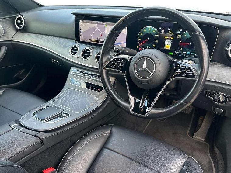 Attention assist, Brake wear warning display, Cockpit display 10.25" widescreen digital instrument cluster, Direct steer speed sensitive steering, DYNAMIC SELECT with a choice of driving modes (ECO, Comfort, Sport, Sport+ and Individual), ECO start/stop function, Emergency services call system, High resolution 10.25" multimedia colour display, MBUX voice control activated by keywords "Hey Mercedes", Mercedes connect me, Outside temperature display, Remote boot release, Service indicator (ASSYST), Smartphone integration via Android Auto/Apple CarPlay, Media Interface, USB and Bluetooth interface, Status display for rear seat belts in instrument cluster, Touchpad with controller, Traffic sign assist, Trip computer in multifunction display showing current fuel consumption, Wireless charging, 25 litre AdBlue tank, 66 litre fuel tank, 9G TRONIC 9 speed automatic transmission, Agility control sports suspension with selective damping system and lowered by 15mm, Diesel particulate filter, Incorrect fuelling protection, 2 USB ports in centre console, 2 USB ports in the rear, Burmester surround sound system with 13 speakers and a 9 channel amplifier with total output of 590 watts, MBUX multimedia system with DAB digital radio and touchpad including satellite navigation, 3rd brake light, Adaptive brake lights, Aerial integrated in rear window, AMG bodystyling front and rear aprons and side sill panels, Electric windows with one touch opening/closing and obstruction sensors, Electrically adjustable and heated door mirrors, Front apron in high gloss black, High gloss black exterior mirror housing, High gloss black rear bumper with chrome trim, Illuminated front door sill panels with Mercedes-Benz lettering, LED High Performance headlamps including integral LED daytime running lamps, LED rear lights, Panoramic electric glass sunroof, Pre-installation for roof rail systems, Privacy glass Includes rear side windows and rear windscreen, Radiator grille with integral star and 2 louvres in high gloss black, Rain sensor with automatic headlight activation, Rear boot, Rear side wing doors, Tail lights, Top surround of side windows in polished aluminium, Visible twin pipe exhaust system integrated into bumper, Waistline trim strip in high gloss black, 3 seat bench in 2nd row, 3 spoke multifunction flat bottom AMG steering wheel with chrome inserts and touch control buttons, trimmed in black nappa leather, 40:20:40 split folding rear bench seat, Artico man-made leather upper dashboard and beltlines with contrast stitching, Automatic child seat recognition sensor, Black door pins, Black roof lining, Central stowage compartment with 12 V socket in centre console, USB socket for use with Android Auto and Apple CarPlay, Courtesy lights in rear grab handles with reading light functionality, Floor mats with AMG lettering, Four way partially front electric seat adjustment, Front centre armrest with stowage compartment, Glasses compartment in overhead control panel, Glove compartment - lockable, air conditioned and illuminated, Head restraints for driver and front passenger (four-way adjustability) and in rear (two-way), Heated front seats, Interior lighting - 64 colour Ambient lighting, ISOFIX child seat attachment points two outer rear seats, Leather upholstery, Seat occupancy sensor for front passenger seat, Single front passenger seat, Sports pedals in brushed stainless steel with black rubber studs, Steering column electrically adjustable for height and reach, Steering wheel multifunction with gearshift paddles, Steering wheel touch control buttons for audio and onboard settings, Sunvisors with illuminated vanity mirrors, THERMOTRONIC automatic climate control system with 3 climate zones, Mirror pack - E Class, Parking package including 360 degree camera - E Class, Seat comfort pack - E Class, Stowage pack - E Class, 3x3 point rear seatbelts, Active bonnet pedestrian safety measure which detects an impact and raises bonnet, Adaptive brake system with HOLD function and brake drying in the wet, Airbags - sidebag for driver and front passenger with combined thorax/pelvis bag, Anti-lock braking system (ABS), Childproof locks manually operated for rear doors and electrically operated for rear power windows, Driver and adaptive front passenger airbags, Drivers knee airbag, Electronic parking brake, Electronic Stability Programme, Hill start assist, Perforated brake discs with Mercedes Benz lettering, Pre-Safe anticipatory safety system, Tyre pressure monitoring system, Warning triangle and first aid kit, Window airbags, Alarm system/interior protection/immobiliser, Central locking with interior switch, automatic locking and crash sensor with emergency opening function, Chrome surround electric key, Keyless entry go starting function, Grey open pore ash wood trim and centre console in grey open pored ash wood, 20" AMG multi spoke light alloy wheels painted in high gloss black with high sheen finsih, Summer tyres, TIREFIT with tyre inflation compressor,