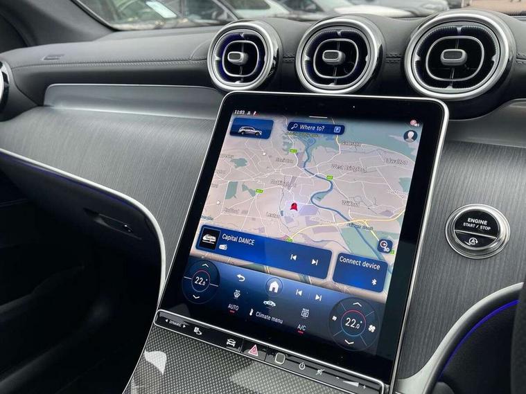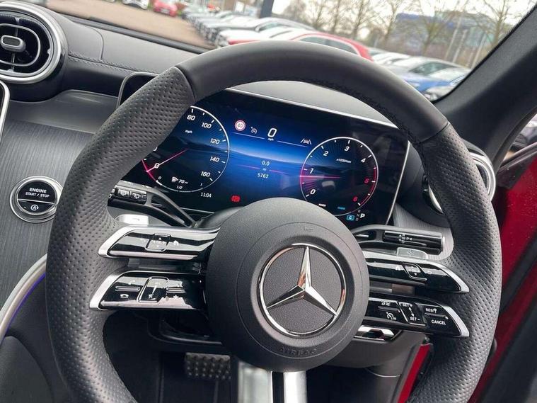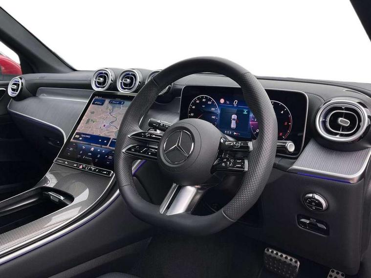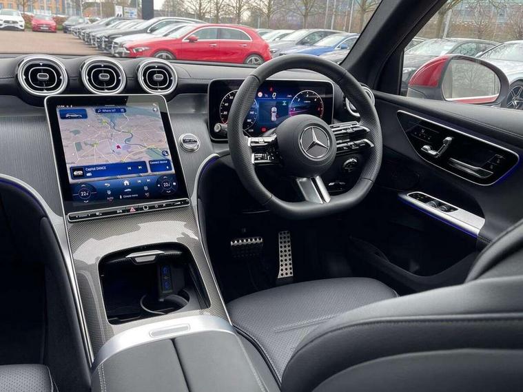 11.9" high resolution multimedia colour display, 12.3" Digital individually configurable instrument display, Acoustic presence indicator, Active lane keeping assist, Attention assist, Blind spot assist, Bluetooth interface for hands free telephone, Collision prevention assist plus, Cruise control with speedtronic variable speed limiter, Dashcam - front camera for video recording, Direct steer speed sensitive steering, DYNAMIC SELECT with a choice of driving modes (ECO, Comfort, Sport, Sport+ and Individual), eCall emergency call system, ECO start/stop function, Fingerprint scanner, Fluorescent jacket for driver, Hard disc navigation, Instrument display in miles with English lettering, MBUX augmented reality for navigation, MBUX navigation premium, MBUX voice control activated by keywords "Hey Mercedes", Mercedes me connect, Outside temperature display, Remote boot release, Remote services, Road sign recognition system, Service indicator (ASSYST), Smartphone integration, Status display for rear seat belts in instrument cluster, Traffic sign assist, Trip computer, Wireless charging, 48V Mild hybrid technology, 4MATIC permanent four wheel drive, 62 litre fuel tank, 9G TRONIC plus automatic transmission, Diesel particulate filter, Sport suspension, DAB digital radio tuner, MBUX extended functions, Mercedes benz sound system, Pre installation for Mercedes Benz Link, Adaptive brake lights, Adaptive high beam assist plus, Aluminium look running boards with rubber studs, Aluminium roof rails, AMG bodystyling front apron, rear apron and side skirts, AMG Line exterior, Auto headlights, Body colour bumpers, Body colour door mirrors, Digital light LED headlights, Electrically adjustable door mirrors, Front and rear electric windows, Headlight washers, Heat insulating dark tinted glass, Heated rear window, High level LED brake light, Integrated LED daytime running lights, LED indicator lights, LED rear fog lights, LED tail lamp, Motor way mode function and locator lighting, Noise acoustic glass, Radiator grille with Mercedes Benz pattern and integreated Mercedes star and louvre in dark grey matt with chrome inlay and black frame, Rain sensor windscreen wipers, Range adjustable headlights, Rear side wing doors, Rear wiper, Transparent Bonnet, Two chrome plated tailpipe trim elements, Variable front intermittent wipers, Welcome and follow-me home light functionality, Wider wheel arch for AMG wheels, 3 seat bench in 2nd row, 40:20:40 split folding rear seats, Ambient lighting premium, AMG line interior, Artico man-made leather upholstery, Audio and onboard settings control on multifunction steering wheel, Automatic child seat recognition sensor, Black fabric roof lining, Black floor mats with AMG lettering, Double cup holder in centre console, Easy-pack removable load compartment cover, Electrically height/reach adjustable steering column, Front centre armrest with stowage compartment, Front head restraints, Galvanised steering wheel gearshift paddles, Heated front seats, Illuminated door sill panels with Mercedes Benz lettering, Illuminated glove compartment, Instrument panel and beltlines in ARTICO manmade leather in nappa look, Multifunction sports steering wheel in nappa leather, Rear centre headrest, Rear head restraints, Rear top tether child seat ISOFIX attachment, Single front passenger seat, Sports pedals with stainless steel surfaces and rubber studs, Sports seats, Sun visors, THERMATIC 2 zone automatic climate control, Anti theft protection package - GLC, Boot comfort package - GLC, Exterior chrome package - GLC, Interior chrome package - GLC, Interior lighting pack - GLC, Keyless-Go comfort package - GLC, Memory pack - GLC, Mirror pack - GLC, Parking package with 360 degree camera - GLC, Seat comfort package - GLC, Stowage space package - GLC, USB Plus Pack - GLC, 3 rear 3 point seatbelts, Active braking assist, Anti-lock braking system (ABS), ASR traction control, Automatic front passenger airbag deactivation, Black seat belts, Brake calipers with Mercedes-Benz lettering + perforated brake discs, Braking system with larger brake discs on the front axle, Child proof door locks, Dual-stage airbags - driver and front passenger, driver knee bag and window bags for driver, front passenger and rear passengers, Electronic parking brake, Electronic stability programme (ESP) with curve dynamic assist and cross wind assist, Front and rear seatbelt reminder, Front passenger seat occupancy sensor, Front seatbelt pretensioners, Hill start assist, Tyre pressure monitoring system, Warning triangle and first aid kit, Automatic door locking, Guard 360 degree vehicle protection plus, Interior protection/immobiliser, Remote central locking, Centre console in metal structure finish, Metal structure trim, 20" AMG 5 spoke aerodynamically optimised light alloy wheels in painted black with high sheen finish, Summer tyres, TIREFIT with tyre inflation compressor,