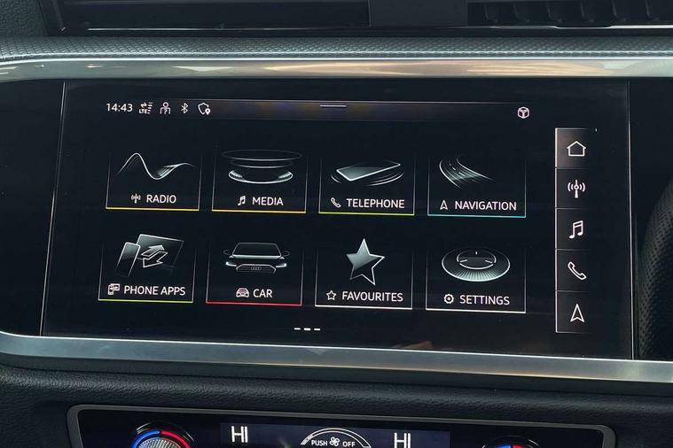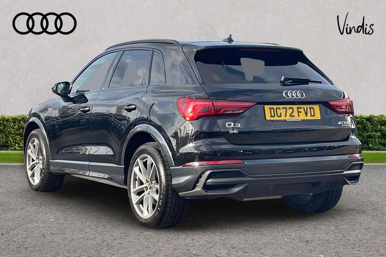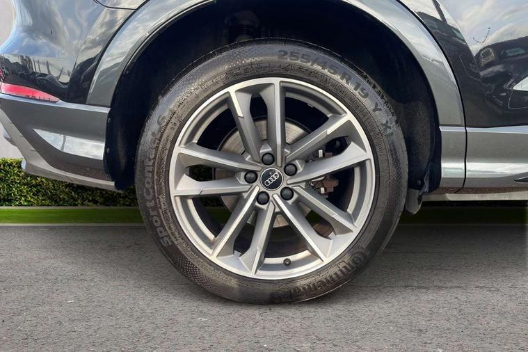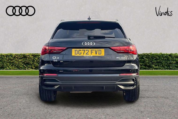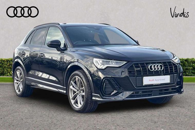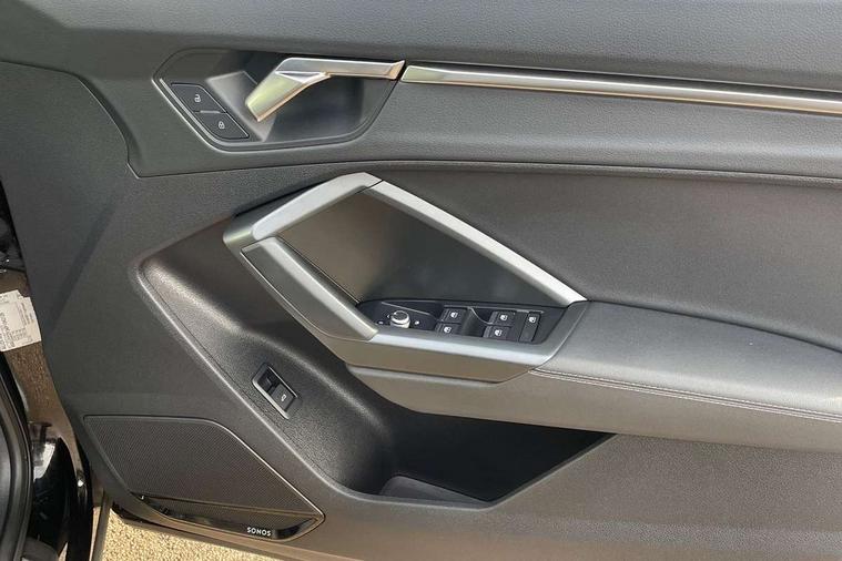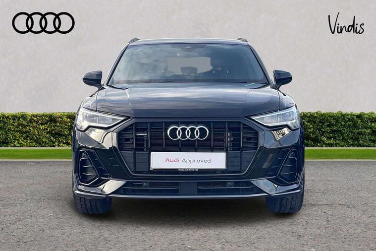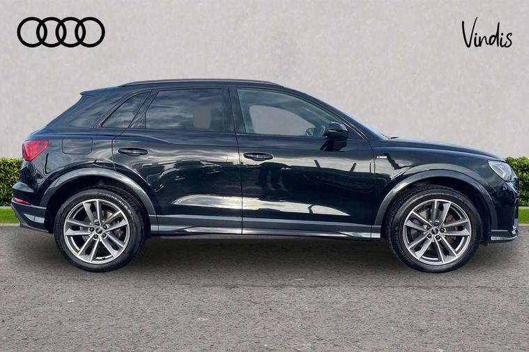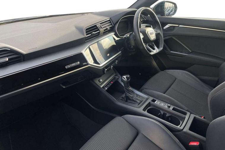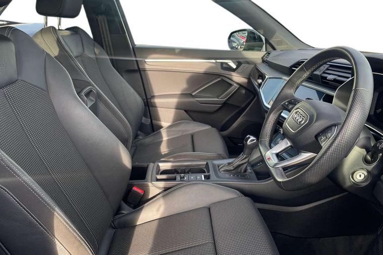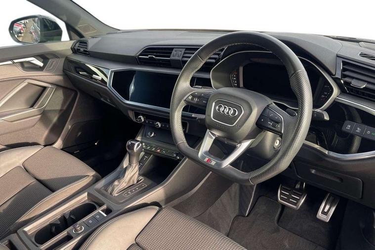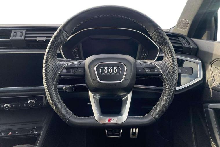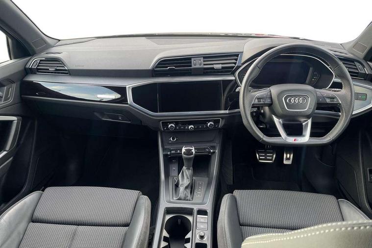 Amazon alexa Integration, Audi drive select, Audi lane departure warning, Audi smartphone interface includes wireless Apple carplay/Android Auto, Audi Virtual Cockpit - 10.25" display, Bluetooth interface, Camera based traffic sign recognition, Legal emergency call, MMI Navigation Plus with high resolution 10.1 inch touchscreen colour display, Power operated tailgate, Progressive steering, Service interval indicator, Start stop system with recuperation, Voice control system with natural language interaction, Diesel particulate filter, Sports suspension, 2 USB-C ports with charge and data functions, 6 passive loudspeakers, DAB digital radio module, Acoustic windscreen, Auto dimming frameless rear view mirror, Black roof rails, Electrically folding, adjustable and heated door mirrors with integrated LED side indicators and kerb view function for passenger side, Front and rear electric windows, Front fog lights, Grille vertical bars in aluminium silver/Matt, High gloss black finish B and C pillars, LED Dynamic rear indicators, LED headlights with LED daytime running lights, LED rear lights, LED third brake light, Privacy glass dark tinted rear and rear-side windows (from B-pillar backwards), Rain and light sensors, Rear diffuser grille in grained matt black, Rear diffuser strip in matt titanium black, Rear side wing doors, Rear wiper, S line bumpers in contrasting Manhattan grey, Variable front intermittent wipers, 12V socket in rear centre console, 3 seat bench in 2nd row, 40:20:40 folding with manual adjustment for 60:40 forwards/backwards position and backrest angle, Adjustable rear seat bench/backrest with centre armrest and cupholder, Black cloth headlining, Dual zone electronic climate control, Front and rear black floor mats with contrast stitching in rock grey, Front and rear headrests, Front and rear roof module including reading lights, Front centre armrest, Glove compartment lighting, Height and reach adjustable steering wheel, Illuminated door sill trims with S logo, ISOFIX child seat mounting for front passenger with airbag deactivation and outer rear seat including top tether attachment point for outer rear seats, Luggage compartment light, Manual front seats with height adjustment, Perforated leather gearknob, Single front passenger seat, Stainless steel luggage compartment sill finisher, Stainless steel pedals, Ambient lighting pack - Q3, Black styling pack - Q3, Non smoking pack - Q3, 3x3 point rear seatbelts, 6 airbags - Driver, front passenger, curtain and side windows, Audi pre-sense front with pedestrain and cyclist recognition, Electrically operated child locks on rear doors, Electromechanical parking brake, Electronic stabilisation control including ABS, ASR and EDL, Front seatbelt reminder, Hill descent control, Hill hold assist, Pre sense basic, Seatbelt monitoring, Tyre pressure warning, Warning triangle and first aid kit, Anti theft alarm, Anti theft wheel bolts, Immobiliser, Remote central locking, Detail dashboard around MMI touch colour display in glass look, black with surround in aluminium look, Leatherette door armrest, Piano black inlay,