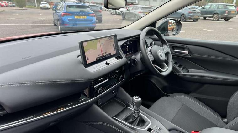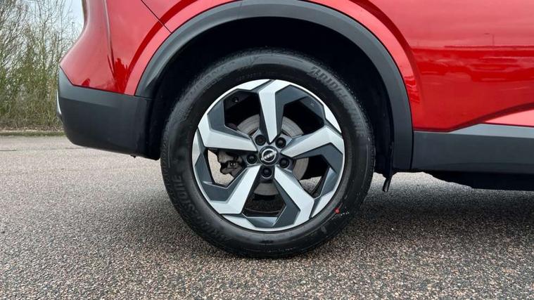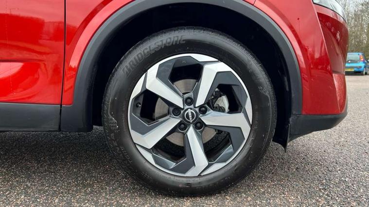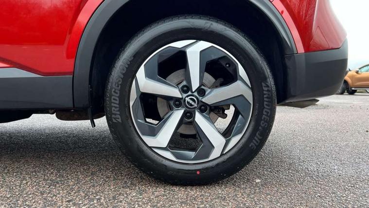 Android auto/Apple CarPlay (Wired), Blind spot warning, Drive modes (sport, normal, eco), Electric speed sensitive power steering, Emergency and breakdown call, Front and rear parking sensors, Full Digital 12.3" TFT Digital Combimeter, Google maps services - search, weather, 3D maps and Google street view, Idle stop/start system, Intelligent around view monitor, Intelligent Cruise control (ICC), Intelligent driver alert system, Intelligent forward collision warning, Intelligent lane intervention, Lane departure prevention, Lane departure warning system, Maximum speed limiter, Moving object detection, Nissan connect 12.3 inch touchscreen infotainment system, Nissan connect navigation, Push button starter, Rear cross traffic alert, Rear view camera, Remote control services - door locks, lights, horn and car locator, Telematics - notifications and connectivity services, TomTom live traffic services, Traffic sign recognition with legal speed adjustment, Trip computer, Virtual personal assistant and firmware over the air capability, Wireless apple carplay, 6 speakers, AM/FM audio system with DAB, Bluetooth audio streaming, Front USB connections (Type-A and Type-C), Rear USB charging only ports (Type-A and Type-C), Auto dimming rear view mirror, Auto rear wiper when reversing, Automatic hazard signal with emergency stop signal, Body colour mirror caps, Body coloured door handles, Bodyside mouldings, Chrome side window finisher, Door handle with button, Electric auto folding door mirrors, Electrically adjustable and heated door mirrors with LED turn indicator, Follow me home headlights, High beam assist, Intelligent auto headlights, LED daytime running lights, LED Headlights, LED rear lights, One touch front and rear electric windows with remote opening and closing, Partially body coloured bumpers, Privacy glass, Rear bumper with graphite insert, Rear reversing light (bulb lighting), Rear roof spoiler, Rear side wing doors, Rear styling plate, Shark fin antenna, Splash free rain sensing wipers, Super UV and infrared cut glass, Three blink turn signal, 12v power socket in dashboard and luggage, 2x Rear coat hooks, 3 bench rear seats in 2nd row, 3 rear headrests, 4 folding assist grip, 6 Luggage hooks - 4 on floor, 2 on side, 6-way manually adjustable driver's seat, 60/40 split folding rear seat bench, Ambient lighting around centre console, Centre console storage tray, Chrome interior door handles, Cloth monoform upholstery, Driver and front passenger sunvisors with illuminated vanity mirrors, Driver seat back pocket, Dual zone automatic climate control with pollen filter, Electrically adjustable lumbar support for driver, Front and rear door storage, Front centre console and armrest, Front cupholders x 2, Front door with bottle holders, Glovebox with light, Hard trunk cover, Height adjustable driver's seat, Height adjustable front headrests, Height adjustable passenger seat, Leather shift knob, Leather steering wheel, Luggage board system, Luggage space lighting, Manually adjustable passenger (slide recline + lifter), Multifunction steering wheel, Passenger seat back pocket, Rear armrest with 2 cupholders, Rear door bottle holders, Single front passenger seat, Soft PVC kneepad, Steering wheel switches, Sunglasses holder, Tilt/telescopic adjustable steering wheel, Two rear isofix child seat anchorage points with top tether, Welcome light and console tray ambient lighting, 3x3 point rear seatbelt pretensioners + load limiters, ABS with EBD and brake assist, Active brake limited slip, Auto hold function, Child locks on rear doors, Curtain and front side, far side airbags, Driver and passenger airbags, Driver, passenger and 2nd row rear seat belt reminder, Electronic parking brake, Front seatbelt pretensioners + load limiters, Height adjustable front seatbelts, Hill start assist, Intelligent blind spot intervention, Intelligent front emergency braking with pedestrian, cyclist recognition and junction assist, Intelligent rear automatic braking, Tyre pressure monitoring system, Vehicle dynamic control, Capless fuel filler, Engine immobiliser, Intelligent Key, Remote central door locking with deadlocking, Thatcham Cat.1 alarm, Interior instrumental panel B finisher, 18" Diamond cut alloy wheels, Tyre puncture repair kit,