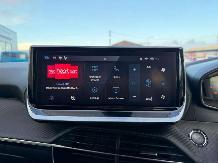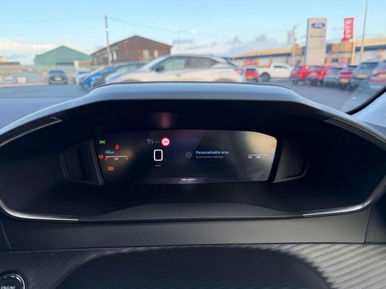 Bluetooth telephone facility, Drive mode selection(Eco/Normal), Driver attention warning, Emergency call service, Exterior temperature indicator with ice warning, Front and rear parking sensors, Multi function trip computer, PEUGEOT i-Cockpit with 10" configurable colour head up instrument panel, PEUGEOT i-Cockpit with 10" HD capacitive colour touchscreen, PEUGEOT i-Cockpit with compact steering wheel, PEUGEOT SOS and assistance, Push button start, Smart phone docking station, Speed limit recognition and recommendation, Start/stop system, Wireless mirror screen with apple carplay and android auto, 6 Speakers - 2 tweeters and 4 door speakers, DAB Digital radio, Peugeot i-connect infotainment system - 10in HD touchscreen, AM/FM/DAB digital radio, Wifi Mirroring, Bluetooth & 2 USB connection, USB-A socket (x1) and USB-C socket (x1) - rear, USB-C data and charge socket and USB-C charge socket in front, Voice recognition for radio, navigation and telephony features, 2 X Rear number plate lights, Acoustic windscreen, Antenna - Gloss Black 'fin' design, Automatic hazard light activation upon heavy brake application, Body coloured exterior door handles, Dark tinted rear side and tailgate windows, Diamond black rear spoiler (roof), Eco LED headlights with electric height adjustment, Electric heated and power folding door mirrors with courtesy floor lighting, Electrochrome rear view mirror, Gloss black B pillar, Gloss black door mirror shells, Gloss black front bumper grille with body colour accents, Gloss black rear cluster connecting strip, Headlights left on audible warning, LED 3 claw horizontal rear lighting signature with daylight function and LED brake lights, LED daytime running lights with distinctive 3 claw signature, LED Rear lighting with distinctive 3 claw horizontal signature with daylight function, LED third brake light, Model designation badges front and rear in basalt grey, One touch electric front/rear windows with pinch protection, Rear bumper with gloss black finish, Rear reversing lights, Rear side wing doors, Rear windscreen wiper triggered automatically in reverse gear, Roof spoiler, Tailgate with heated rear windscreen and wiper blade, Variable front intermittent wipers, 1/3 to 2/3 split folding rear seats, 12V socket, 3 seat bench in 2nd row, Automatic mono zone climate control air condition, Boot lighting, Driver and front passenger comfort seats, Driver and front passenger seat manual adjustment in longitudinal and back rest angle, Driver seat mechanical height adjustment, Electric power steering with reach and rake adjustable steering column, Front centre armrest with storage compartment, Front interior light with 2 reading spotlights, Gear shift indicator, High centre console with 2 cup holders, Map pockets on the backs of the front seats, Multifunction leather steering wheel, Piano keys gloss black plated toggle switches to access main functions of the vehicle, Quartz contrast stitching to front and rear door armrest, Rear centre headrest, Roof lining - light grey, Seatbelt unfastened on the move audible and visual alert for front and rear seats, Single front passenger seat, Tri material cloth/leather upholstery, Visibility pack - 208, 2x Isofix child seat fitting on outer rear seats, 3 rear 3 point seatbelts, ABS (Anti-lock Braking System) with EBD (Electronic Brakeforce Distribution) and EBA (Emergency Braking Assistance), Child locking functionality on rear doors, Driver and front passenger airbag with passenger airbag deactivation, Driver/front passenger side airbags, Electric parking brake, ESP with Hill Assist, Front and rear curtain airbags, Front and rear disc brakes, Front optimised safety headrests and 3 x rear retractable headrests with height adjustable, Front three point retractable seatbelts with force limiters, Remote plip(x2) for locking, unlocking, includes emergency key blade, Tyre pressure monitoring system, Acoustic vehicle alert system (AVAS), Alarm - Connected, volumetric , perimetric, anti lift sensor, Automatic door locking when moving off, Deadlock, Electronic code immobiliser, Remote central locking, Carbon effect Dashboard, front and rear door panel finish, 16" Noma two tone diamond cut alloy wheels, Tyre puncture repair kit,