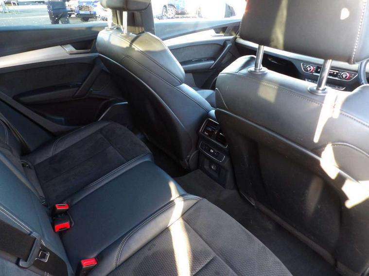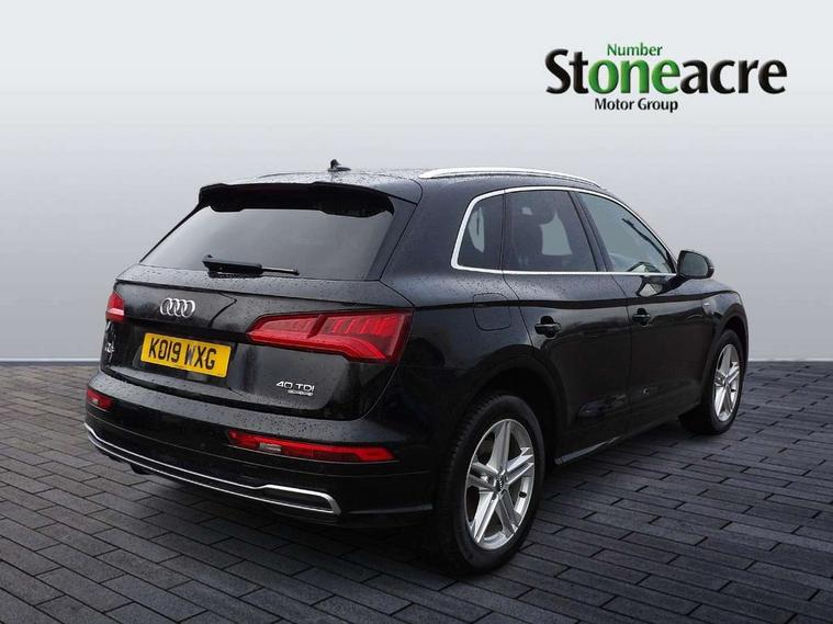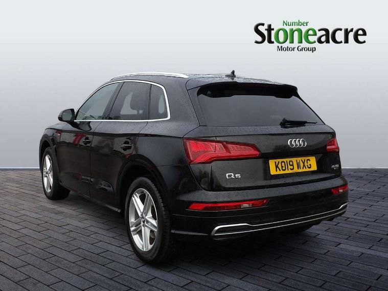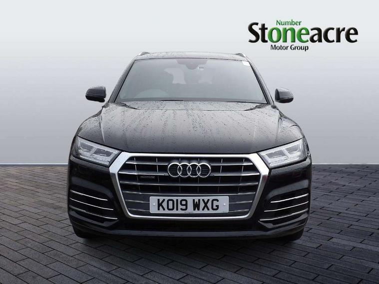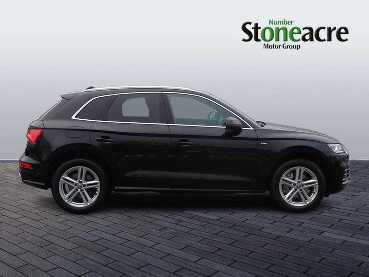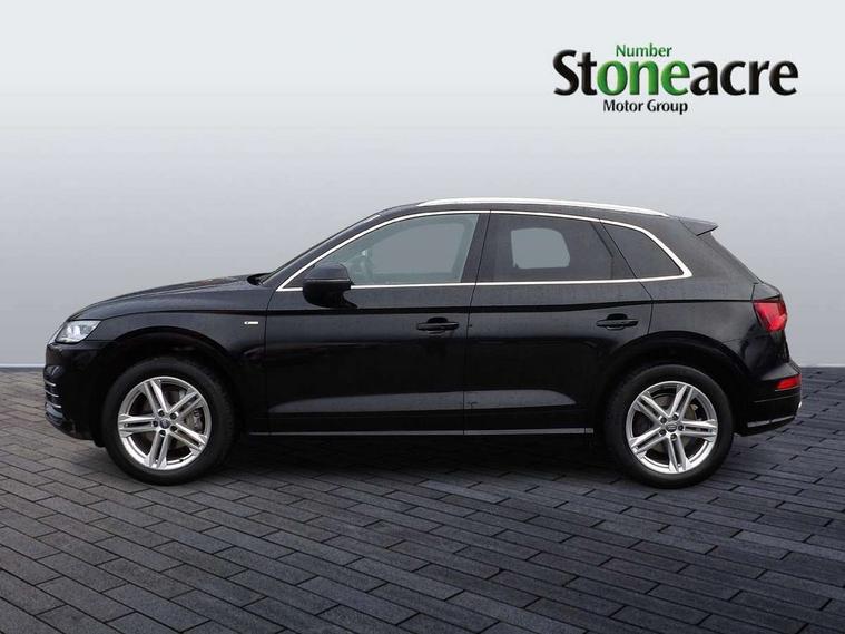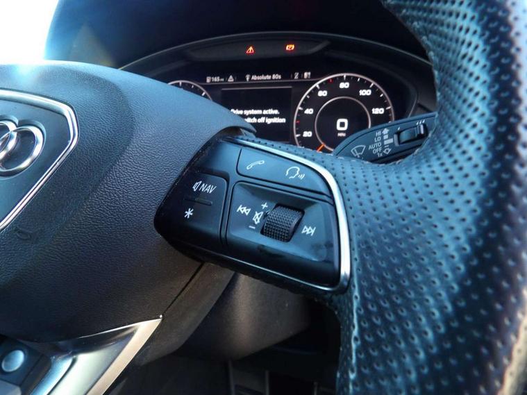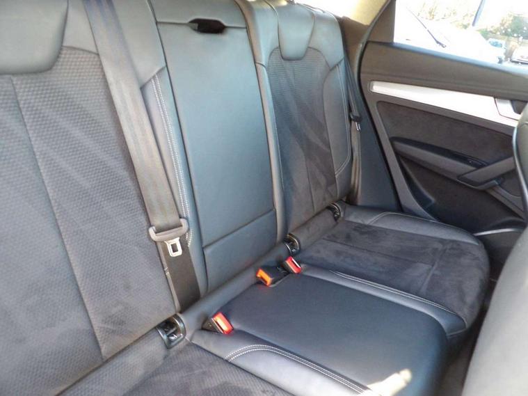 7" Colour driver information system, Audi drive select, Audi parking system plus with front and rear sensors, Audi smartphone interface, Electro - mechanical power assisted steering, MMI Navigation, Mobile telephone preparation - bluetooth interface, Power tailgate, Service interval indicator, Voice control system, Diesel particulate filter, 2 x USB charging port with aux input socket, 2x SD card slot, CD player, DAB Digital radio, MMI radio plus with 7" colour MMI screen and MMI controller, Acoustic windscreen, Air inlets in matt titanium black with blades in matt aluminium silver, Aluminium roof rails, Auto dimming rear view mirror, Automatic headlight levelling, Body colour bumpers, Body colour door mirrors, Body colour rear diffuser with matt aluminium silver surrounds, Body colour S Line side skirts, Body colour underbody protection, Chrome exhaust tailpipe, Front and rear electric windows, High beam assistant, Light and rain sensor for auto activation of lights and windscreen wipers, Loading sill protector in stainless steel, Privacy glass with front acoustic glazing, Rear wiper, S Line badges on the front wings, S Line front and rear bumpers/side air inlets and diffuser, S Line rear spoiler, Twilight grey matt radiator grille with matt aluminium horizontal chrome struts, 3 rear headrests, 3 zone climate control, 40:20:40 split folding rear seat with rear centre armrest, Black cloth headlining, Contrast stitching on seats, steering wheel and gear lever gaiter, Front centre armrest, Front sport seats with S embossed logo, Front/rear floor mats, Height adjustable front head restraints, Illuminated door sill trims with S logo, ISOFIX child seat mounting and top tether, Luggage compartment carpet, Perforated leather gearknob, Removable luggage compartment floor, Stainless steel pedals, Sunvisors with vanity mirrors, Trunk roller cover, High gloss pack - Q5, Non Smokers pack, 3 point seatbelts on all seats, 6 airbags - Driver, front passenger, curtain and side airbags, Electromechanical parking brake, Electronic stabilisation control including ABS, ASR and EDL, Front passenger airbag deactivation, Hill descent control, Hill hold assist, Multi collision brake assist, Pop-up bonnet for pedestrian protection, Pre sense city, Seat belt force limiter, Seatbelt monitoring, Tyre pressure warning, Warning triangle and first aid kit, Anti theft alarm, Anti-theft wheel bolts, Keyless Go access/ignition system, Remote central locking, Tool kit,
