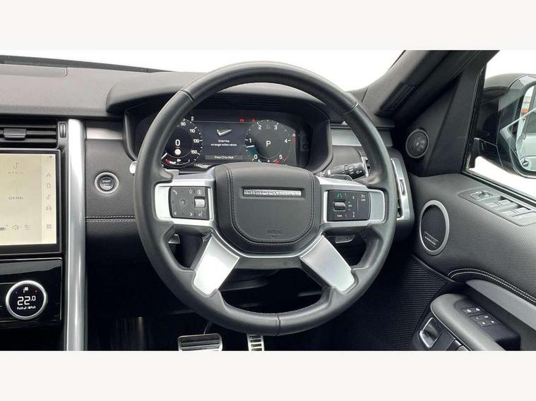 11.4" touchscreen, 3D surround camera, Adaptive cruise control, Android Auto, Apple car play, Blind spot assist, Driver condition monitor, Electric power assisted steering (EPAS), Emergency services call system, Front and rear parking aid, Interactive driver display, Lane keep assist, Power inner tailgate, Power tailgate/boot lid, Push button start, Rear collision monitor, Rear traffic monitor, Remote, Remote boot release, Service interval indicator, Speed proportional steering, Sportshift selector, Stop/start system, Traffic sign recognition with adaptive speed limiter, Trip computer, Wade Sensing, Wireless device charging, Adaptive dynamics, Dynamic stability control, Electronic air suspension, Front axle open differential, Digital Audio Broadcast radio-DAB, Dynamic volume control, Pivi pro connected, Acoustic laminated windscreen, Animated directional indicators, Auto dimming interior rear view mirror, Automatic headlight levelling, Automatic headlights, Black roof rails, Body colour bumpers, Body colour door handles, Centre high mounted stop light, Electric heated/power fold memory door mirrors with approach lights and auto dimming driver side, Electric windows with one touch open/close and anti-trap, Heated rear window, Heated windscreen, LED darkend tail lights, Matrix LED headlights with signature DRL, Privacy glass, Puddle lights, Rain sensing windscreen wipers, Rear fog lights, Rear side wing doors, Rear wash/wipe, Trailer stability assist, Variable intermittent wiper, 1 x 12V power socket in Row 1, Row 2, and loadspace, 1 x USB-C (power only), 1 x USB-A & 1 x USB-C (power & data) in Row 1, 2 seat bench in 3rd row, 2 x USB-C in Row 2 (power only), 2 x USB-C in Row 3 (power only), 3 seat bench in 2nd row, 60/40 electric heated folding rear seats with manual slide and powered recline, centre headrest and armrest, Central hinged twin lidded storage, Configurable cabin lighting, Electric adjustable steering column, First and second row door bins, Footwell lights, Front passenger seat ISOFIX, In-facia storage, Isofix child seat preparation for front passenger seat, Leather steering wheel, Loadspace cover, Loadspace Hook, Loadspace light, Lockable glovebox, Lower centre console storage, Luggage tie downs in loadspace, Multi function steering wheel, Overhead lighting console, Premium carpet mats, Rear ISOFIX, Shopping bag hook, Single front passenger seat, Storage glovebox, Sunvisors with illuminated vanity mirrors, Third row storage, Treadplates with metal inserts, Twin front cupholders with cover, USB with 12V socket in centre console, Online pack with data plan - Discovery, 3x3 point rear seatbelts, Anti-lock braking system (ABS), Brake pre-fill technology, Cornering brake control, Curtain airbags, Customer configurable autolock, Driver and passenger airbags, EBD - Electronic brakeforce distribution, Electronic traction control, Emergency brake assist, Emergency braking, ESP, Front side airbags, Gradient acceleration control, Hill descent control, Hill launch assist, Power operated child locks, Rear airbags, Roll stability control, Seat belt reminder, Torque vectoring brake, Tyre pressure monitoring system, Immobiliser, Intrusion sensor, Keyless entry, Locking wheel nuts, Remote central locking, All terrain tyres,