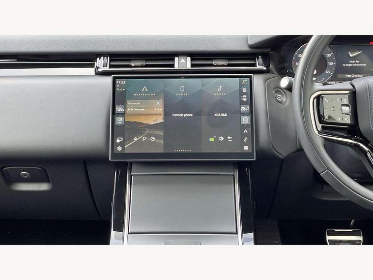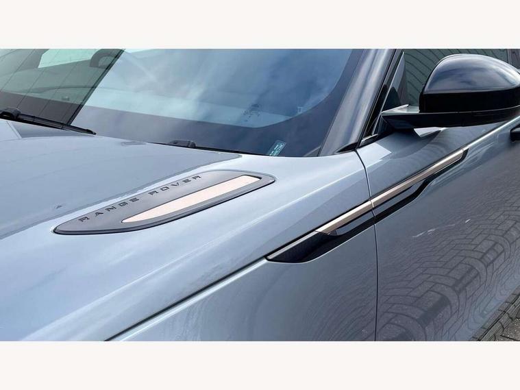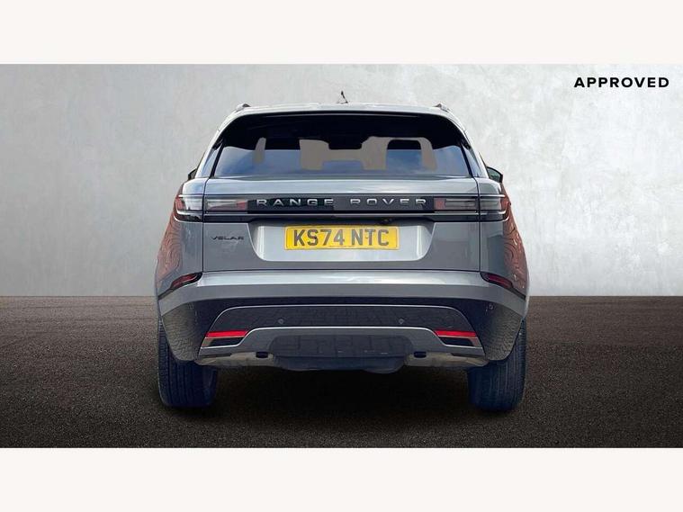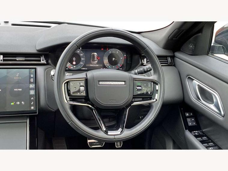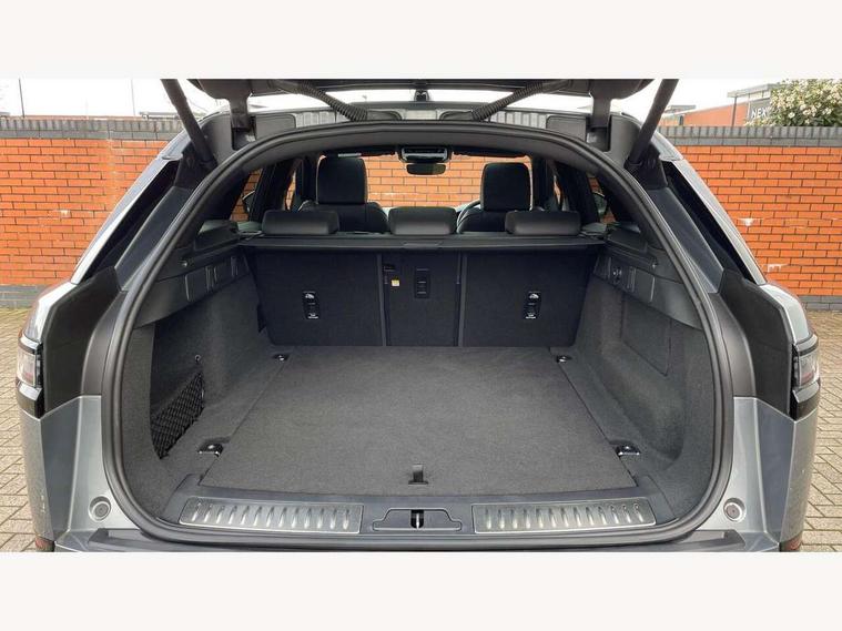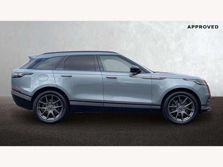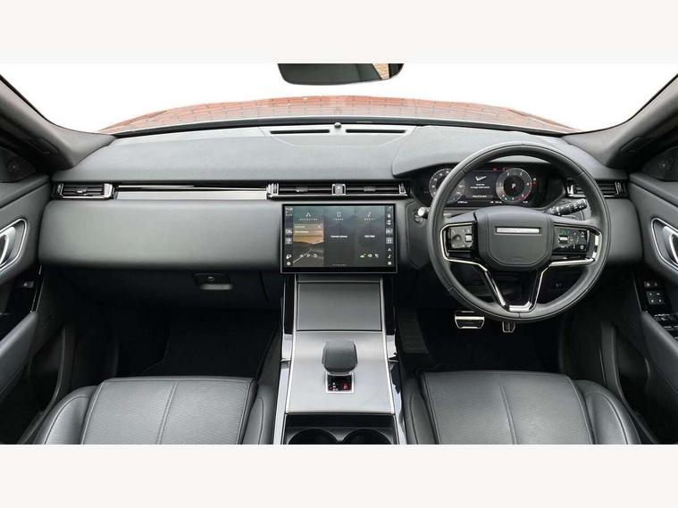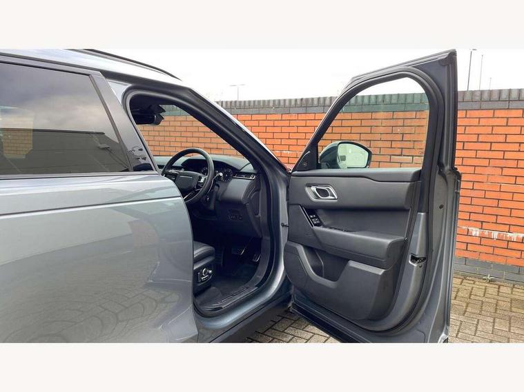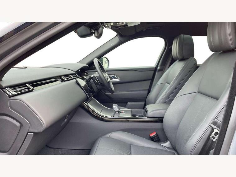 Adaptive cruise control with steering assist, Android Auto, Apple CarPlay, Blind spot assist, Bluetooth connectivity, Brake pad wear indicator warning light, Driver condition monitor, eCall emergency call system, Front and rear parking aid, InControl remote, Land Rover InControl apps, Lane keep assist, Pivi pro with connected navigation, Rear collision monitor, Rear traffic monitor, Service indicator, Speed proportional electronic power assisted steering (EPAS), Traffic sign recognition with adaptive speed limiter, Trip computer, Voice control system, Wireless device charging, 8 speed automatic transmission, Adaptive dynamics, All terrain progress control, Electronic air suspension, Open differential with torque vectoring by braking, Single speed transfer box, DAB radio, Steering wheel mounted controls, 3rd brake light, Acoustic laminated windscreen, Auto dimming interior rear view mirror, Automatic headlamp levelling, Automatic headlights, Body coloured bumpers, Boot protection plate, Electric windows with one touch open/close and anti trap, Flush deployable exterior door handles, Follow me home headlights, Heated rear window with timer, Heated washer jets, Heated windscreen, Metal front tread plates, Metal load space scuff plates, Pixel LED headlights with signature DRL, Power fold, auto-dimming, heated door mirrors with memory and approach lights, Rain sensor windscreen wipers, Rear animated directional indicators, Rear fog lights, Rear side wing doors, Rear wash/wipe, Tailgate/boot lid spoiler, Trailer stability assist, Velar badge, 3 seat bench in 2nd row, Ambient lighting, Bright metal pedals, Carpet mats, Driver/passenger sunvisors with illuminated vanity mirrors, Ebony morzine headlining, Electrically adjustable steering column, Extended leather upgrade, Heated steering wheel, Isofix system on outer rear seats, Loadspace cover, Overhead lighting console, Overhead stowage for sunglasses, Passive front headrests, Rear air vents, Rear centre headrest, Single front passenger seat, Twin front cupholders, Twin sliding front centre armrest, Online pack with data plan - Velar, Power socket pack 2 - Velar, 380mm front brakes and 325mm rear brakes, 3x3 point rear seatbelts, Anti-lock braking system (ABS), Cornering brake control, Curtain airbags, Customer configurable autolock, Door side intrusion beams, Driver airbag, DSC - Dynamic Stability Control, Electronic brake force distribution, Electronic parking brake, Electronic traction control, Emergency braking, Front and rear seatbelt reminder, Hill descent control, Hill launch assist, Low traction launch, Passenger airbag, Power operated child locks, Rear airbags, Roll stability control, Side airbags, Tyre pressure monitoring system (TPMS), Global lock and unlock switch on driver door, Immobiliser, Intrusion sensor, Keyless entry, Lock only switch on front passenger door, Locking wheel nuts, Perimetric alarm, Remote central locking, All season tyres,