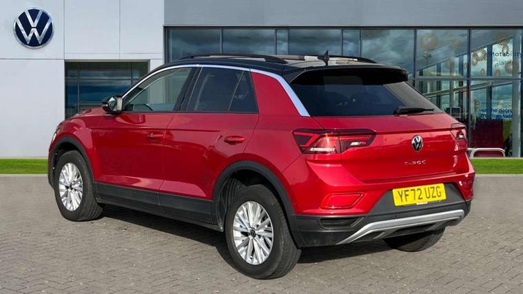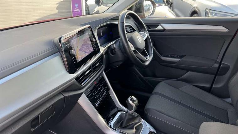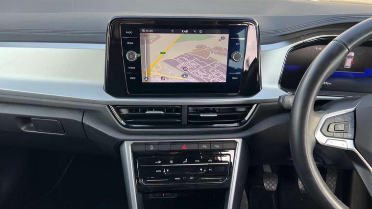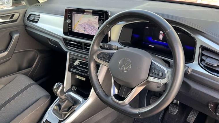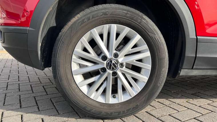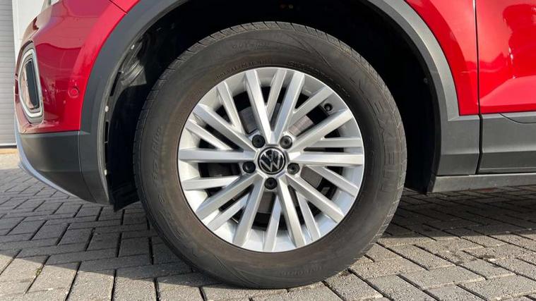 Bluetooth mobile phone interface, Driver alert system with fatigue detection, Driver tips and journey analysis, Emergency call service, Lane keeping system Lane Assist, Modified key software - reduce switch off time for key status change to Long no motion, Online services, Park assist including front and rear parking sensors, Power assisted speed sensitive steering, Service interval indicator, Tailgate/trunk lid release from outside, Think blue trainer driver tips and journey analysis, Warning sound and light for front seatbelts unfastened, Wireless app connect, Battery regeneration during braking, Front shock absorption, Rear shock absorption chassis with increased ride height, Start/stop function with battery regeneration, DAB Digital radio, Diversity antenna for FM reception, Front and rear 6 speakers, Music playback - MP3, WMA and AAC files, Premium USB cable in choice of either Apple or Android smartphone compatibility, SD card slot, Simultaneous pairing of 2 compatible mobile devices, Title and cover art display, We Connect and We Connect Plus functionality, 3rd brake light, Auto dimming interior rear view mirror, Automatic hazard lights activation under emergency braking, Automatic headlight control with LED separate daytime running lights with coming/leaving home function, Black roof rails, Body coloured bumpers and radiator grille with chrome trim and front fog lamps with chrome bezel, Body coloured exterior mirror housings and door handles, Extended roof spoiler, Exterior mirrors aspherical on driver side, convex on front passenger side, External USB type C socket and charging sockets, Front windscreen wiper with intermittent wipe and 4 position delay, Heated rear window, LED Headlights, LED rear combination lamps, LED rear number plate lights, LED tail lamp rear comination lamps, Power windows with comfort operation and circuit breaker, Rain sensor, Rear exhaust tailpipe, Rear fog light on one side and reversing lights on both sides, Rear side wing doors, Rear wash/wipe with intermittent wipe setting, Remote electrically foldable door mirrors, puddle lights and reverse activated passenger's door mirror, 12V power socket in centre console, 3 rear head restraints, 3 seat bench in 2nd row, 4 load lashing points in luggage compartment, Air care climatronic air conditoning system with active combination filter and 2-zone temperature control, Ambient lighting with mirror logo projection, Cloth upholstery, Door and side trim panel in cloth, Drawer under drivers seat, Driver/front passenger seat height adjustment, Front centre armrest, Front comfort sports seats, Front cupholders x 2, Front reading light, Instrument lighting, white adjustable panel illumination, Interior light delay, Isofix child seat preparation, Leather gearshift handle, Load-through provision with cup holder when folded down ('Unsplit rear seat bench, split folding backrest, with centre armrest), Luggage compartment lighting, Lumbar support for driver's and front passengers seat, Non-folding front passenger seat backrest, Single front passenger seat, Storage compartment in left and right luggage area, Storage compartment in rear doors, Storage compartments in driver and front passenger doors, Sunvisors with illuminated vanity mirrors, Variable boot floor, height adjustable and removable, Driver assistance pack without proactive passenger protection - T-Roc, 3 point height adj front seatbelts + pretensioners, 3 point seatbelts in outer rear with ECE label, ABS, Child locks on rear doors, Driver and front passenger airbag with front passenger airbag deactivation, Driver and front passenger safety-optimised head restraints, Drivers seatbelt reminder, Electronic parking brake, Electronic Stability Control (ESC) inc EDL (Electronic Differential Lock) and ASR (Traction Control), Front and rear passengers curtain airbag system including front side airbags, Front assist with city emergency braking and pedestrian monitoring, Front disc brakes, Front seat side impact airbags, Hill start assist, Predictive pedestrian protection, Rear disc brakes, Single tone horn, Tyre pressure loss indicator, Volkswagen roadside assistance, Alarm with interior protection, Anti-theft alarm system with interior monitoring, backup horn, and towing protection, Remote central locking with SAFELOCK, radio remote control with 2 remote control folding keys, Pewter matt decorative inserts for intrument panel, centre console and door panels at the front, Trims for alloy wheels,
