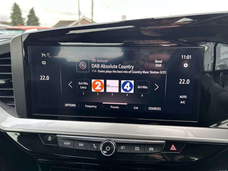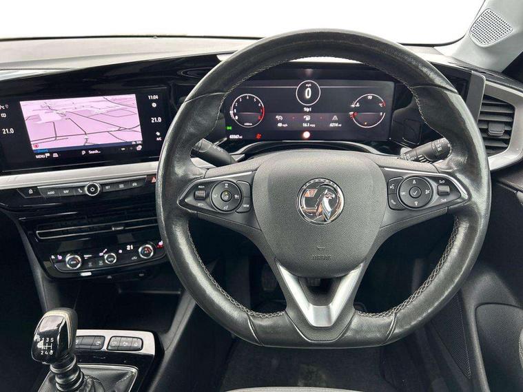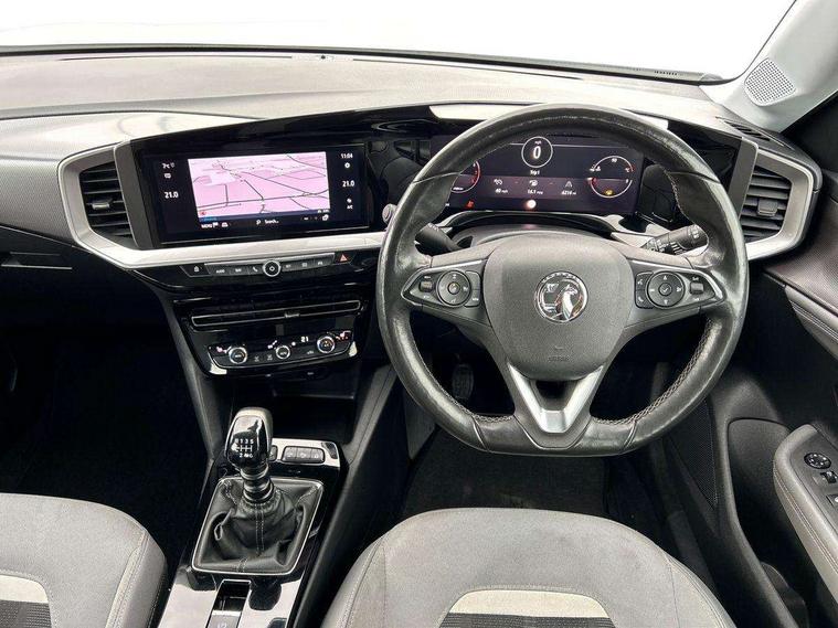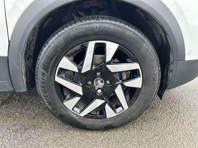 Automatic adaptive cruise control, Driver drowsiness alert system, Engine start/stop button, Front and rear parking distance sensors, Front camera system, Lane keep assist system (LAS) with Lane departure warning system (LDWS), Lights on audible warning, Multi function trip computer, Panoramic rear view camera, Power assisted speed sensitive steering, Side blind spot alert and flank guard, Smartphone integration compatible with Apple CarPlay and Android Auto, Speed sign recognition, Start/stop system, Vauxhall connect with e-Call, 6 speed manual transmission, Chassis drive line front wheel drive, Electronic fuel system, Front chassis equipment, Rear chassis equipment, Standard chassis suspension system ride handling, Bluetooth A2DP audio streaming, Flexible Roof Mounted Radio Aerial, Front USB connection, Mobile phone portal - bluetooth connect, vehicle microphone, handsfree calls, SMS read out and reply, phone book access, Multimedia Navi pro infotainment with satellite nav, 10" colour touchscreen, 6 speakers, DAB radio, 12" instrument panel, Apple carplay/Android auto, Steering wheel mounted controls, Two rear USB sockets, 3rd brake light, Adaptive brake lights, Automatic lighting control with tunnel detection, Automatically dimming anti dazzle rear view mirror, Black door mirror housings, Black rear spoiler, Body colour door handles, Body colour front and rear bumpers, Chrome effect skid plates, Chrome effect upper window moulding, Electrically adjustable, heated and folding door mirrors, Electrically operated front and rear windows with safety auto reverse and one touch up/down facility, Hazard warning lights, Heated rear window+rear wash/wipe, High beam assist, LED daytime running lights, LED front fog lamps, LED side repeat indicators, LED tail lights, Manual headlamp level control, Rear foglight, Rear side wing doors, Rear wiper, Reversing light, Solar heat absorbing windscreen and windows, Two speed rain-sensitive windscreen wipers with variable intermittent wipe, Windscreen and side window demist vents, 12V Accessory socket, 3 seat bench in 2nd row, 3 spoke flat bottomed leather steering wheel with satin chrome bezel, 4 speed fan with illuminated controls, 6 way manual adjustable driver fore/aft, up/down with reclining seatback, 6 way manual adjustable front passenger fore/aft, up/down with reclining seatback, Air recirculation system, Cabin particulate filter - removes dust, airborne particles and pollen, Centre console with two cup holders at front and one in rear, Chrome effect interior door handles, Door pockets with two litre capacity, Driver and passenger seat pocket, Driver and passenger sun visors with vanity mirror, Electronic climate control (ECC), Fabric/leather upholstery with jet black fabric side bolsters, Four adjustable facia vents, Four load restraint lashing eyes, Front centre armrest with storage, Front map reading lights, Front seat back storage pockets, Fully carpeted load area, Heated front seats, Heated steering wheel, Height adjustable front/rear head restraints, Illuminated load area, Interior courtesy light, Interior tailgate handle, Luggage compartment cover, Luggage compartment lighting, Reach + rake adjustable steering column, Single front passenger seat, Twin gas assisted tailgate struts, 2x Isofix child seat fitting on outer rear seats, 3x3 point rear seat belts, Anti-lock braking system (ABS), Automatic emergency city braking, Child proof locks on rear doors, Cornering brake control, Deactivation switch for front passenger front and side impact airbags, Drag torque control, Driver and front passenger airbags, front seat side impact airbags, full size curtain airbags, Electronic brake force distribution, Electronic Stability Programme (ESP), Emergency brake assist, Forward collision alert at all speed, Hill start assist, Inertia reel lap and diagonal seatbelts for all seats, Seatbelt unfastened audible warning and warning light, Straight line stability control, Traction control, Tyre pressure monitoring system, Electronically protected audio equipment, Freewheeling door locks, Immobiliser, Key left in ignition audible warning, Keyless entry and start, Locking wheel nuts, Remote control ultrasonic security alarm system, Visible vehicle identification number, Atlantis black trim inserts of front doors, Black facia with silver trim insert, Instrument panel bar in Light Gravel, 17" bi colour alloy wheels,