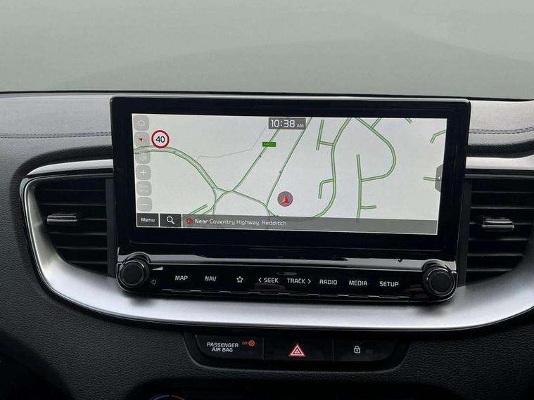 10.25" touchscreen satellite navigation, 4.2" supervision colour cluster display, Apple car play/Android Auto with voice control, Bluetooth with Voice Recognition & Music Streaming, Drive mode select (Normal and Sport), Driver attention warning + (DAW) with leading vehicle departure warning, Emergency call service, Emergency stop signalling system, Forward Collision-Avoidance Assist (FCA) - City/Pedestrian/Cyclist, Kia connect UVO, Lane Following Assist (LFA), Lane keep assist, Manual speed limit assist, Motor driven power steering, Rear parking sensor, Reversing camera system with dynamic guidelines (Integrated into centre fascia screen), Smart cruise control with stop/go functionality, Trip computer, Intelligent Stop and Go, 6 speaker audio system, DAB Radio with MP3, Illuminated USB ports, Steering wheel mounted controls, USB Fast Charger in Front Centre Console, USB type A port, All-round Electric Windows with Front Auto Up & Down Function, Auto dimming rear view mirror, Automatic defog system, Automatic headlights control, Body colour bumpers, Body colour exterior door handles, Body coloured and dark chrome rear skid plate, Body coloured side sill mouldings, Dark chrome window surround, Electric adjustable/heated/folding door mirrors with LED Indicators, Heated rear window with timer, High beam assist, High gloss black and dark chrome radiator grille, High gloss black door mirrors, High Gloss Black rear spoiler - roof, LED daytime running lights, LED front fog lights, LED Headlights, LED High-mounted Brake Light, LED honeycomb rear light, LED rear combination lights, LED rear fog light, Privacy glass (rear side windows and tailgate), Rain sensing front wipers, Rear side wing doors, Rear wash/wipe, Satin chrome dual exhaust trim, Tinted glass, Wide view drivers door mirror, Windscreen Washer Level Warning, 1 x Front 12V socket, 12V power socket in luggage compartment, 3 seat bench in 2nd row, 3 x passenger assist grips, 60/40 split folding rear seat, All-round height adjustable headrests, Aluminium pedals, Black headlining, Centre console storage box/armrest, Cloth/faux leather upholstery, Cupholders in centre console, Cupholders in rear armrest, Dash illumination dimmer switch, Door courtesy lamps, Driver & Front Passenger Sunvisors with Vanity Mirror Illumination & Ticket Holder, Driver + front passenger electric lumbar support, Driver's seat height adjuster, Dual Height Luggage Area Floor, Dual zone automatic air conditioning, Faux leather door centre trim, Front and rear door storage, Front cabin map light with sunglasses case, Front Passenger Seat Height Adjuster, Front seat back pockets, Heated front seats, Heated steering wheel, Interior door lock/unlock function, ISOFIX Child seat top tethers and anchor fixings, Leather D-Cut steering wheel, Leather handbrake, Luggage area light, Luggage area parcel shelf, Luggage hooks, Rear centre armrest, Rear coat hooks, Single front passenger seat, Tilt/telescopic adjustable steering wheel, All round 3-point seatbelts, Anti-lock braking system (ABS), Brake assist system, Dual front side airbags, Dual horn, EBD - Electronic brakeforce distribution, Electronic parking brake, Electronic stability control (ESC) and vehicle stability management (VSM), Front passenger airbag cut-off switch, Height adjustable front seatbelts, Hill start assist control (HAC), Impact sensing auto door unlocking, Rear door child safety locks, Seatbelt reminder warning, Twin curtain airbags, Twin front airbags, Tyre pressure monitoring system, Alarm system, Engine Immobiliser & Deadlocks, Locking wheel nuts, Remote central door locking with fold away key, Speed sensitive auto door locking, Satin Chrome Fascia Trim, 17" GT-Line alloy wheels, Tyre mobility kit,