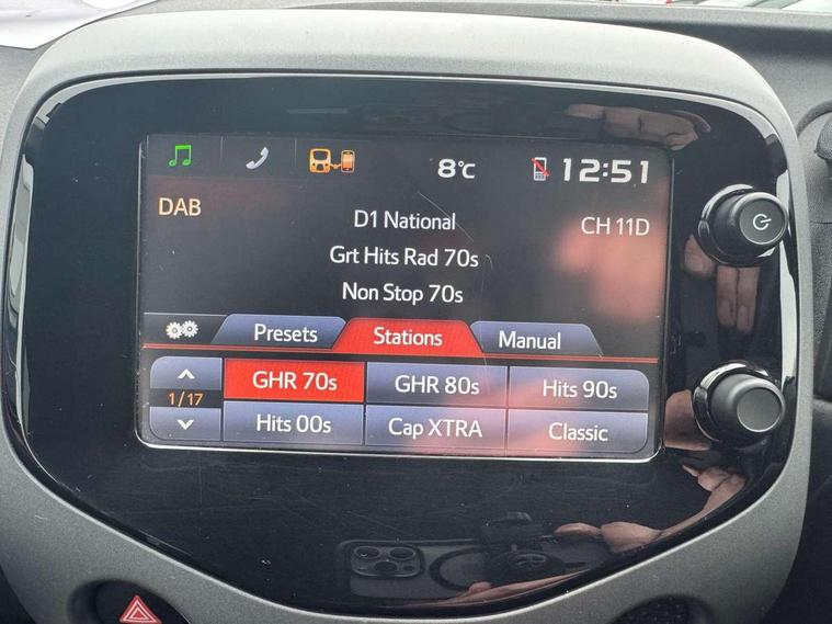 7" touch screen, Bluetooth system, Digital clock, Electric power steering, Fuel indicator with low level warning, Lights on warning, Rear view camera, Smartphone integration powered by pioneer compatible with Apple CarPlay and Android Auto, Tachometer, Vehicle Stability Control (VSC), 4 speakers, Auxiliary input socket, DAB Digital radio, iPod connection, MP3 connection, Multimedia System, Stereo radio, USB connection, 2 speed wipers/variable intermittent/mist function, Automatic headlights, Body colour bumpers, Body colour door handles, Carbon rear diffuser, Electric adjustable door mirrors, Electric front windows, Electric headlamp adjustment, Front fog lights, Green tinted glass, Heated door mirrors, Heated rear windscreen, LED daytime running lights, LED rear lights, Manually dimming rear view mirror, Projector headlamps, Rear privacy glass, Rear spoiler, Rear window demister, Rear wiper, Red roof decal, Roof mounted aerial, 12V Accessory socket, 3 spoke leather steering wheel, 50/50 split folding rear seat, Air recirculation system, Auto air conditioning, Body colour instrument panel, Centre console storage, Chrome insert to gearknob, Chrome interior door handles, Cloth upholstery, Driver and passenger sunvisors, Driver's seat height adjuster, Driver/passenger seat recline/slide adjust, Driver/passenger vanity mirrors with covers, Front and rear door pockets, Front cupholder, Front map reading lights, Glovebox, Graphite cloth upholstery, Height adjustable front head restraints, Isofix system on outer rear seats, Leather gear knob, Pollen filter, Rear cupholders, Rear headrests, Steering wheel mounted radio/phone controls, Stepless tilt adjustable steering column, Storage bins on all doors, Storage pockets in centre console, Tonneau cover, ABS, Driver and passenger airbags, Emergency brake assist, ESP, Fasten seatbelt reminder, Force limiting rear seatbelts, Front side airbags, Height adjustable front seatbelts with pre-tensioners and load limiters, Hill start assist, Passenger airbag deactivate switch, Rear child proof door locks, Side curtain airbags, Tyre pressure warning, Engine immobiliser, Lockable fuel cap, Remote central locking, Air vent surround in body colour, 15" 8 spoke alloy wheels, Space saver spare wheel,