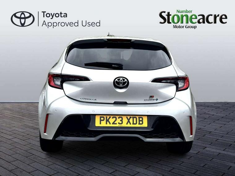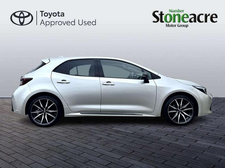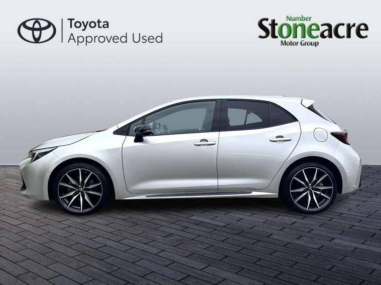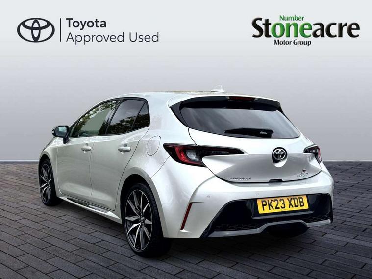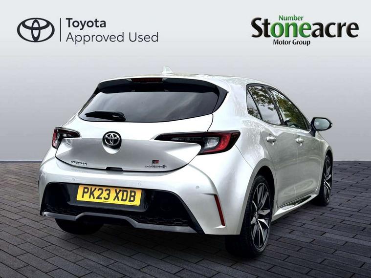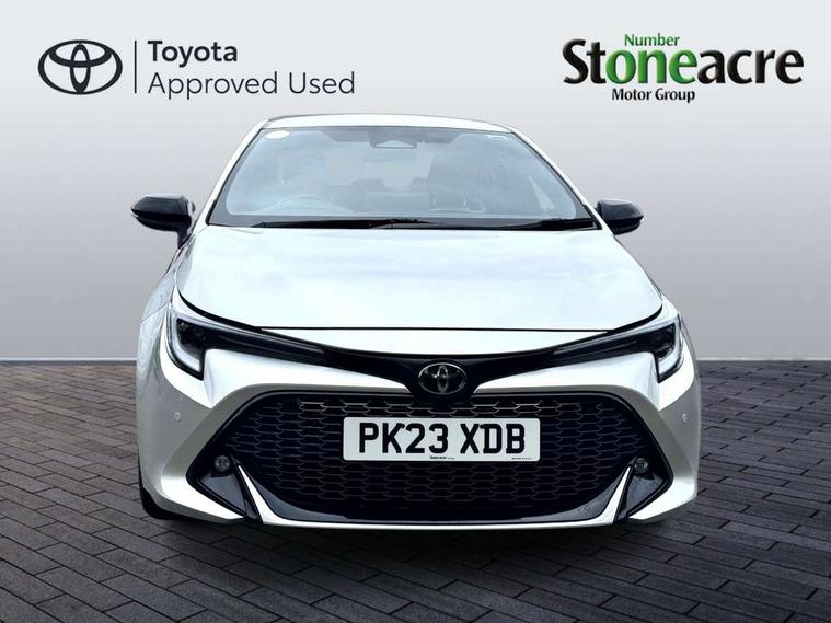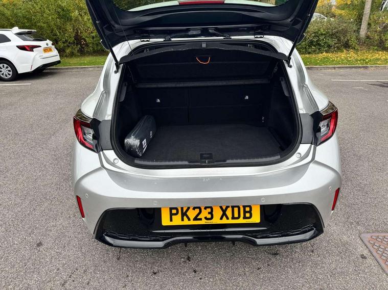 10.5" Multimedia display screen, Attention assist, Bluetooth telephone connectivity, Connected car functionality upgrade, tracker, remote status and e-care, Drive mode select (Eco, Normal), E-call, Electrically assisted power steering, EV drive indicator, Front and rear parking sensors with auto brake, Full Digital 12.3" TFT Digital Combimeter, Key reminder warning, Lane Departure Alert (LDA) switch on steering wheel, Memory on adjustable speed limiter, MyT connected services, Proactive driving assist (PDA), Reversing camera, Smart entry and push button start with GR Logo, Smartphone integration with Apple CarPlay and wired android auto, Tailgate, Toyota remote services, Toyota smart connect navigation, Wireless charger, Gasoline particulate filter, Vehicle Stability Control (VSC), 6 speakers, AM/FM radio, DAB Digital radio, Front USB-C in centre console, Front USB-C in dashboard, Smart voice assist/ Voice recognition, USB and Aux in connectors + 12V front outlet, Anti-jam protection on power windows, Auto up and down function on all power windows, Automatic folding mirrors, Automatic headlights with high beam assist, Black centre and side air vents, Black toyota logo in front, Body coloured bumpers, Body coloured door mirrors, Body coloured outside door handles, Dark chrome lower grille, Electrochromatic mirror, Follow me home headlights, GR Sport dark chrome front mesh grille and black rear grille, GR Sport exclusive under guard, GR sport scuff plates, LED daytime running lights, LED dual beam projector headlights, LED front fog lights, LED High mounted stop light, LED rear combi lights with LED lightguide, Manual headlight levelling system, New grille pattern, Noise reduction layer on windscreen, Piano black diffuser, Power adjustable heated door mirrors, Power front windows, Power rear windows, Privacy glass with UV filter, Rain sensing wipers, Rear side wing doors, Rear window defogger, Rear window wiper, Reverse tilting door mirrors, Rocker and door lower moulding, Roof spoiler, Satin chrome insert on front air vents, Satin chrome insert on front door assist grips, Satin silver front spoiler, Shark fin antenna, Tailgate release with push button, Time adjustment on intermittent wiper, Turning signal integrated indicators in door mirrors, Unique lower skirt, Unique side rocker with black insert, UV-filter on driver and passenger windows, 2 Shopping bag hooks in luggage compartment, 3 rear headrests, 3 seat bench in 2nd row, 3 spoke leather steering wheel with satin insert/red stitching + gear knob, 4 tie down hooks in luggage compartment, 60/40 split folding rear seat, Adaptive cruise control (ACC) switch on steering wheel, Adjustable speed limiter switch on steering wheel, Audio, multimedia and telephone switches on steering wheel, Black armrest on centre console box, Black gear shift console, Boot light, Boot underfloor storage, Centre room light, Driver and front passenger personal light, Driver and passenger assist grip, Driver and passenger seatback pockets, Driver and passenger sun visor with mirror and light, Dual zone automatic air conditioning with ECO mode switch, Fabric/synthetic leather upholstery, Front and rear cup and bottle holders, Front door pockets, Front head restraints, Front passenger seat, Front sliding synthetic leather armrest, GR Sports seats with partial leather bolsters, Heated seats, Illuminated entry system in room lamp, ISOFIX seat fixing (2 fixings on rear outer seats), Manual height adjustable for driver and front passenger seat, Manually tilt with sliding driver and front passenger seat, Paddle shifts, Parcel shelf, Pollen filter, Power window switches with satin chrome inserts, Rear armrest with 2 cupholders, Rear passenger coat hooks (2), Red stitching on gear shift, Remote air conditioning, Satin chrome inside door handles, Satin chrome surround on speedometer, Sliding armrest on centre console box, Slow opening glovebox with lights, Textile floor mats, Tilt/telescopic steering column, Voice recognition switch on steering wheel, Whiplash Injury Lessening (WIL) feature (active headrest) for seats, White ambient lighting on open tray and front cup holder, Toyota safety sense 3 pack - Corolla, 3x3 point rear seatbelts, Adjustable driver and front passenger seat belt extender to top anchor point, Anti lock braking system + Electronic brake force distribution, Brake assist function, Child locks on rear doors, Downhill Assist Control (DAC), Electronic parking brake, Emergency brake light signal (EBS), Front passenger airbag on/off switch, Front seatbelt reminder, HAC-Hill-start Assist Control, Rear seat belt reminder, Seatbelt pretensioners and force limiters, Supplemental restraint system (SRS) 7 airbags - dual driver, dual side curtain, side impact and driver knee airbags, Traction control, Tyre pressure warning system, Acoustic vehicle alert system (AVAS), Alarm with motion sensor and immobilizer, Power passenger window lock, Remote central locking + deadlocks, GR Sport interior and exterior styling, Satin chrome dash trim, Soft touch texture on upper dashboard, Stitching on lower dashboard, 18" black machined face 10 spoke alloy wheels, Tyre repair kit, Unique wheel finish with red wheel cap,