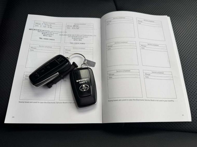 4.2" coloured TFT screen multi informational display, 8" touch screen, Adaptive cruise control, Adjustable speed limiter, Apple car play and Android auto, Blind spot monitor, Bluetooth telephone connectivity, Body angle display, Crawl control, Digital speedometer, Drive mode selector, ECO-driving indicator, Emergency services call system, Front parking sensor, Lane change assistant, Lane Departure Alert (LDA) switch on lower driver dashboard, Lane departure alert (LDA) with Brake induced steering, Memory on speed limiter, Multi terrain monitor, Off road turn assist, Panoramic view monitor, Rear cross traffic alert, Rear parking sensor, Reversing camera display, Road sign assist - RSA, Stop/start system, Tailgate/bootlid remote release from key, Touch 2 Go navigation system, Trip computer, Variable flow control (VFC) power steering, Adaptive variable suspension, Kinetic dynamic suspension, Multi terrain select, Rear limited slip differential (LSD) lock, Vehicle Stability Control (VSC), Auxiliary input socket, DAB Digital radio, JBL Premium sound system with 14 speakers, Steering wheel mounted audio/telephone controls, USB connection, Anti-jam protection on power windows, Auto up and down function on all power windows, Auto wipers, Automatic headlamp levelling, Automatic headlights cut-off, Automatic high beam - AHB, Black roof rails, Body colour door handles, Body colour rear roof spoiler, Body coloured bumpers, Body coloured door mirrors, Body coloured protection moulding on side doors, Dusk sensor, Electric heated door mirrors, Electrically retractable door mirrors, Electrochromatic auto dimming rear view mirror, Emergency brake-light signal (EBS), Follow me home headlights, Front and rear mud flaps, Front electric windows, Front intermittent wipers, Front spoiler, Indicators integrated on door mirrors, LED daytime running lights, LED front fog lights, LED Headlights, LED High mounted stop light, LED rear combination lights, LED rear lights, Power adjustable door mirrors, Puddle lamps, Rain sensor, Rear electric windows, Rear fog lights, Rear privacy glass, Rear side wing doors, Rear window defogger, Rear window wiper, Reverse tilting door mirrors, Shade band to windscreen, Silver illuminated side steps, Tinted chrome insert on boot door, Tinted chrome upper front grille, Towing hooks, Trailer sway control, Trailer wiring harness, UV-filter on rear windows, 12v power socket rear passenger 2nd row, 12V socket in front, 220v power socket in boot, 2nd row heated seats, 2nd row rear passenger personal lights, 2x Rear coat hooks, 3 adjustable rear headrests, 3rd row rear passenger room light, 4 spoke leather steering wheel, 50/50 split/folding 2 rear seat in 3rd row, 60/40 split folding 3 rear seats in 2nd row, Adaptive cruise control (ACC) switch on steering wheel, Aluminium door scuff plates, Ashtray, Assist grips front pillar, centre pillar and overhead, Boot light, Clean air filter, Cool box, Courtesy light delay, Driver and front passenger air ventilated seats, Driver and front passenger personal light, Driver and front passenger Whiplash Injury Lessening seats, Driver and passenger extended sunvisor with illuminated vanity mirrors, Driver and passenger seatback pockets, Driver's electric lumbar adjustment, Driver's seat memory, Electric height adjustable sliding and reclining driver seat, Electric height adjustable sliding and reclining front passenger seats, Electric tilt/telescopic steering wheel, Floor mats, Front and rear bottle holders, Front and rear cup holders, Front and rear door pockets, Front foot well lighting, Gear shift indicator, Heated driver and front passenger seats, Heated outer rear seats, Heated steering wheel, Height adjustable front head restraints, Illuminated entry system, ISOFIX child restraint system, Leather centre armrest, Leather door trim, Leather gearshift, Leather handbrake, Lockable glovebox with illumination, Memory function on steering wheel, Power tilting cushion on driver seat, Rear passenger adjustable ventilation system, Rear passenger air conditioning control panel, Reclining 2nd row rear seats, Reclining 3rd row rear seats, Retractable tonneau cover, Silver interior door handles, Single front passenger seat, Sliding 2nd Row rear seats, Sliding 3rd row rear seats, Sunglasses holder, Three zone automatic air conditioning, Voice recognition switch on steering wheel, JBL pack - Land cruiser, 3x3 point rear seatbelts, Anti-lock braking system (ABS), Brake assist function, Child safety door lock, Front passenger airbag detector, Front seatbelt reminder, Passenger airbag on/off switch, Seatbelt pretensioners and force limiters, Supplemental restraint system (SRS) airbags - 7 airbags including driver, front passenger, curtain, side and knee airbags, Toyota safety sense 2, Tyre pressure monitoring system, Tyre pressure warning system, Driver power door lock, Drivers Smart entry + Smart start, Glass breakage instrusion sensing, Immobiliser, Intrusion sensor and alarm, Remote central door locking, Speed detecting automatic door lock, Tilt detection sensors, Chrome insert on centre air vents, Silver centre console, Full size temporary spare wheel,
