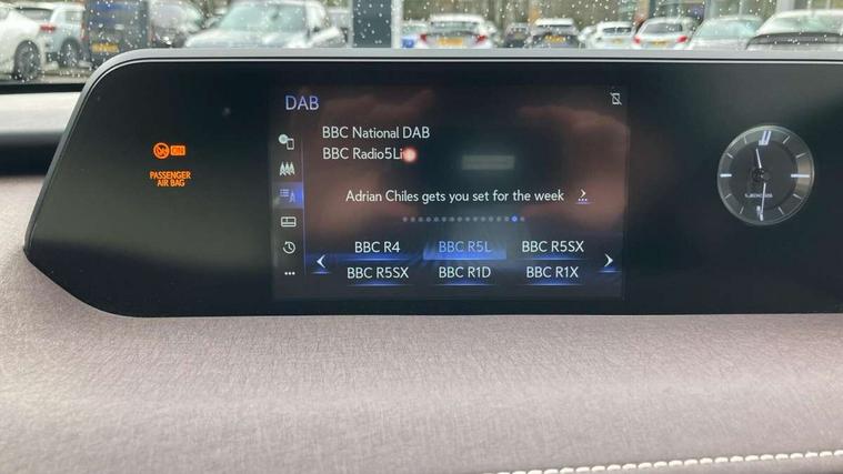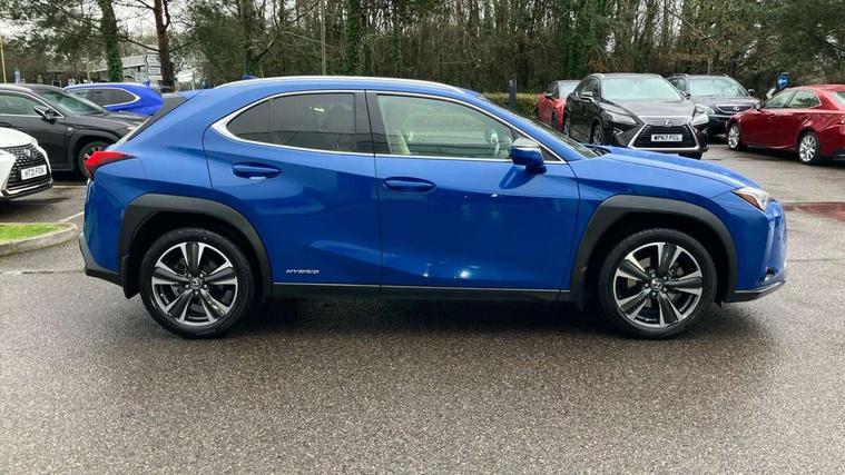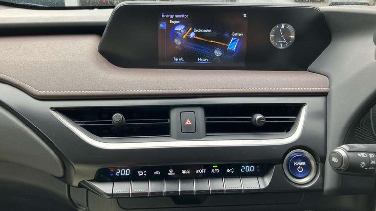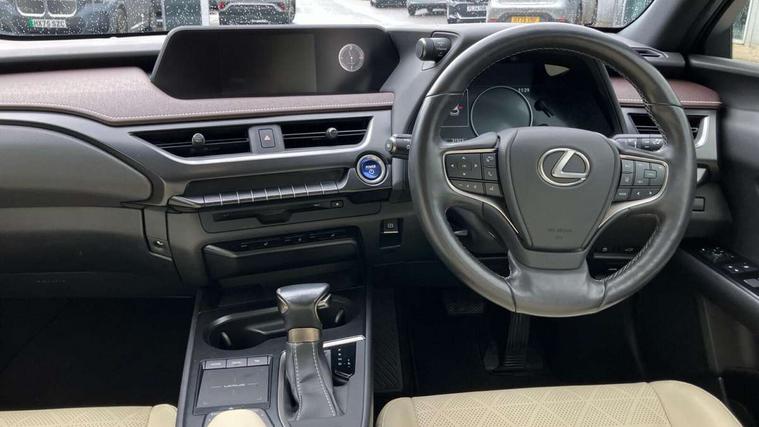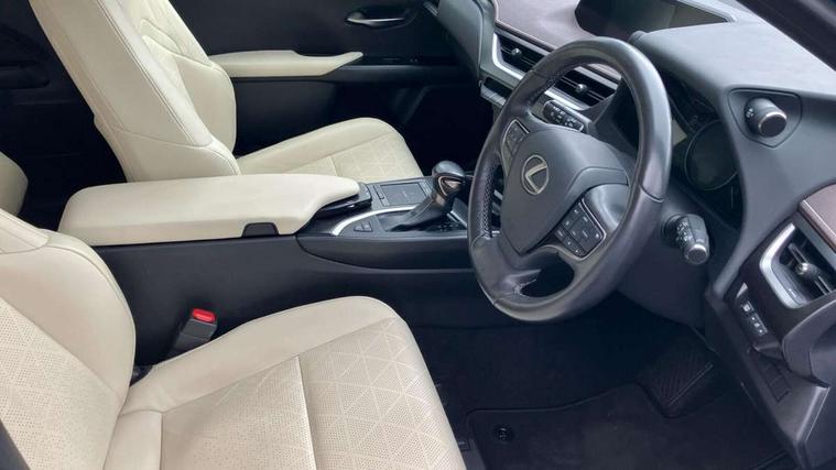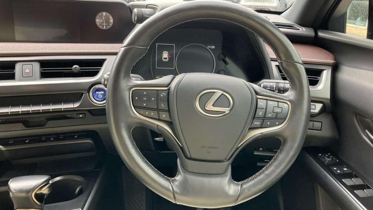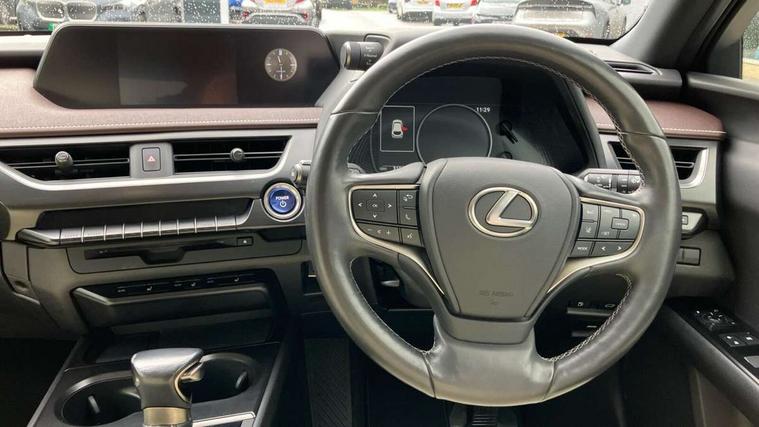 4 driving modes EV/Eco/Normal/Sport, 7" Lexus media display, 7" TFT instrument cluster, Analogue clock with GPS function, Apple car play/Android Auto, Compatible mobile phone bluetooth with audio streaming, E-call, Electric power steering (EPS) with speed sensitive features, Lane change flasher function, Lexus link connected services, Lexus safety systems + includes dynamic radar cruise control, pre collision system day and night, lane tracing assist, road sign assist, Push button start, Remote touch interface, Reversing camera with back guide lines, Trip computer, Vehicle Dynamics Integrated Management (VDIM), Vehicle Stability Control (VSC), 2 front USB and 2 rear USB charging points, 6 speakers, AM/FM and DAB radio, AUX socket with VTR compatibility, CD player, Acoustic windscreen, Aero stabilising arch mouldings, Aero stabilising rear lights, Aero ventilated wheels, Aluminium roof rails, Bi-LED (low and high beam) headlights with Auto High Beam (AHB), Body adhesive, laser screw welding and laser brazed roof structure, Electric adjustable/heated door mirrors, Front and rear one touch power windows, with anti-jam protection, Headlight cleaners, LED daytime running lights, LED front and rear fog lights, LED tail lights, Light green UV glass, Rain sensor windscreen wipers, Rear wiper, Shark fin roof aerial, Single hidden exhaust pipe, Towing preparation, 12V accessory port centre console and luggage compartment, 2 cup holders in the front and rear centre console, 2 x folding shopping bag hooks in boot, 2 x sun visors with vanity mirror and lamp, 4 x tie down hooks in the boot, 5 headrests, 6 way driver and passenger manually adjustable front seats, 60/40 split folding rear seat, Card holder installed in driver and passengers sun visors, Centre armrest with storage, Driver and passenger door pocket, Dual zone electronic climate control + Nano-E humidity sensor, Glovebox, Leather gear lever, Leather steering wheel, LED interior illumination, Map pockets in the rear of passenger's front seat, Premium fabric upholstery, Rear air vents with 2 USB chargers, Rear armrest with 2 cupholders, Storage tray under audio panel, Textile carpet mats, Tilt/reach adjustable steering column, Under deck storage, Under desk side storage, 2 x Isofix child rear seat restraints, 3x3 point rear seatbelts, Anti-lock braking system (ABS), BAS (Brake Assist System), Driver and front passenger 2 stage airbag, Driver and front passenger knee airbag, Driver/front passenger side airbags, EBD - Electronic brakeforce distribution, ECB (Electronically Controlled Brake System), Electric parking brake, Front adjustable seatbelt anchor points, Front and rear curtain shield airbags, Front outer seatbelt+pre-tensioners, force limiter+tension reduction: 3-point with active safety link to PCS, Hill start assist control (HAC), Passenger airbag cut-off device, Rear outer seatbelt+pre-tensioners, force limiter+tension reduction: 3-point with active safety link to PCS, Centre belt w/o pre tensioner+force limiter, Secondary Collision Brake (SCB), TRC (Traction Control), Tyre pressure warning, 2 x remote key fobs, Anti theft system : Alarm instruction sensor, glass breakage sensor and engine immobiliser, Locking wheel nuts, Remote central door locking, Speed sensitive auto door locking, Two motion door lock with double lock, VIN Window etching, 17" Alloy wheels, Tyre repair kit,