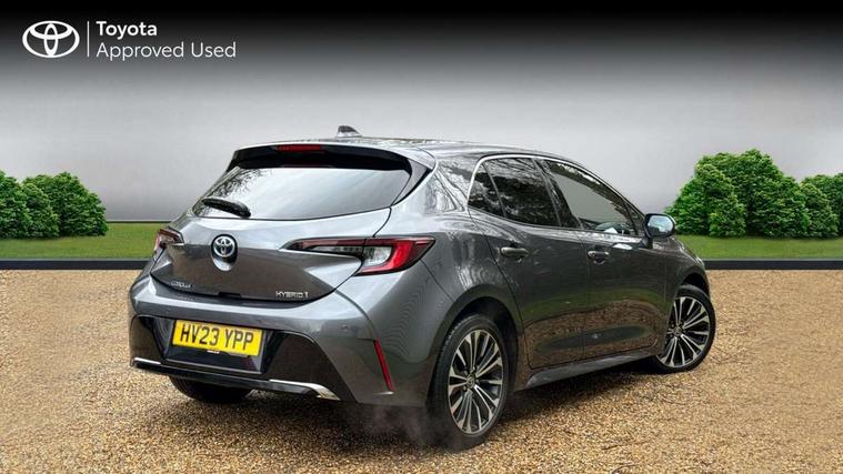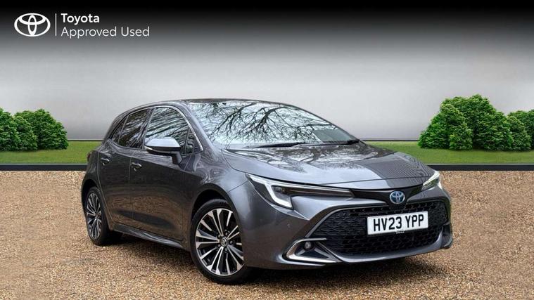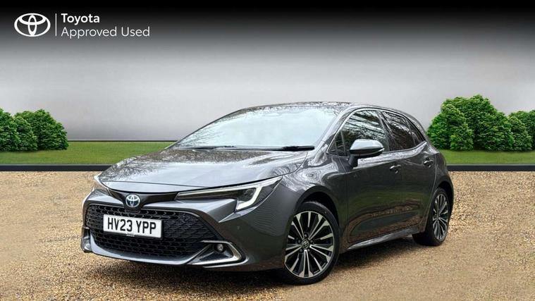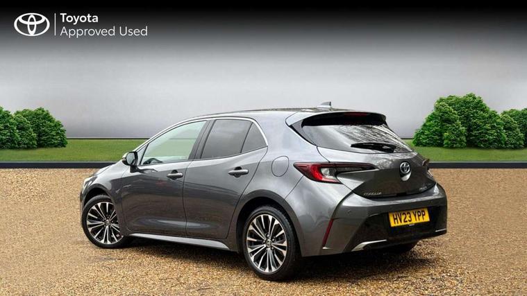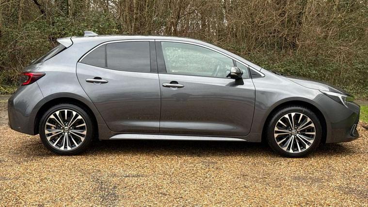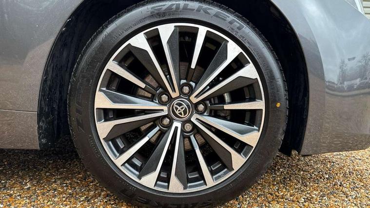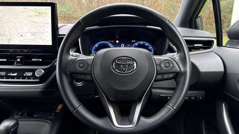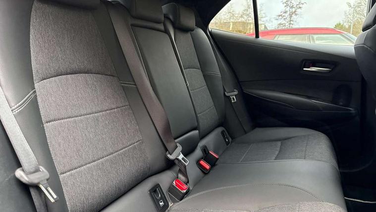 10.5" Multimedia display screen, Attention assist, Bluetooth telephone connectivity, Connected car functionality upgrade, tracker, remote status and e-care, Drive mode select (Eco, Normal), E-call, Electrically assisted power steering, EV drive indicator, Front and rear parking sensors with auto brake, Full Digital 12.3" TFT Digital Combimeter, Key reminder warning, Lane Departure Alert (LDA) switch on steering wheel, Memory on adjustable speed limiter, MyT connected services, Proactive driving assist (PDA), Reversing camera, Smartphone integration with Apple CarPlay and wired android auto, Tailgate, Toyota remote services, Toyota smart connect navigation, Wireless charger, Gasoline particulate filter, Vehicle Stability Control (VSC), 6 speakers, AM/FM radio, DAB Digital radio, Front USB-C in dashboard, Smart voice assist/ Voice recognition, USB and Aux in connectors + 12V front outlet, Anti-jam protection on power windows, Auto up and down function on all power windows, Automatic folding mirrors, Automatic headlights with high beam assist, Black centre and side air vents, Black metallic meshed front grille, Black toyota logo in front, Body coloured bumpers, Body coloured door mirrors, Body coloured front spoiler, Body coloured outside door handles, COROLLA alloy door scuff plates, Electrochromatic mirror, Follow me home headlights, LED daytime running lights, LED dual beam projector headlights, LED front fog lights, LED High mounted stop light, LED multi reflector in headlights, LED rear combi lights with LED lightguide, Manual headlight levelling system, New grille pattern, Noise reduction layer on windscreen, Piano black diffuser, Power adjustable heated door mirrors, Power front windows, Power rear windows, Privacy glass with UV filter, Rain sensing wipers, Rear bumper decoration with chrome plated inserts, Rear side wing doors, Rear under guard with chrome ornament, Rear window defogger, Rear window wiper, Reverse tilting door mirrors, Roof spoiler, Satin chrome insert on front air vents, Satin chrome insert on front door assist grips, Shark fin antenna, Tailgate release with push button, Time adjustment on intermittent wiper, Turning signal integrated indicators in door mirrors, Unique lower skirt, Unique side rocker with black insert, UV-filter on driver and passenger windows, 2 Shopping bag hooks in luggage compartment, 3 rear headrests, 3 seat bench in 2nd row, 3 spoke leather steering wheel with satin insert + gear knob, 4 tie down hooks in luggage compartment, 60/40 split folding rear seat, Adaptive cruise control (ACC) switch on steering wheel, Adjustable speed limiter switch on steering wheel, Audio, multimedia and telephone switches on steering wheel, Black armrest on centre console box, Black gear shift console, Boot light, Centre room light, Driver and front passenger personal light, Driver and passenger assist grip, Driver and passenger sun visor with mirror and light, Dual zone automatic air conditioning with ECO mode switch, Fabric/synthetic leather upholstery, Front and rear cup and bottle holders, Front door pockets, Front head restraints, Front passenger seat, Front sliding synthetic leather armrest, Heated seats, Illuminated entry system in room lamp, ISOFIX seat fixing (2 fixings on rear outer seats), Leather gear shift with satin chrome on gear shift console, Manual height adjustable for driver and front passenger seat, Manually tilt with sliding driver and front passenger seat, Parcel shelf, Passenger seat back pocket, Pollen filter, Power adjustable lumbar support on driver seat, Power window switches with satin chrome inserts, Rear armrest with 2 cupholders, Rear passenger coat hooks (2), Remote air conditioning, Satin chrome inside door handles, Satin chrome surround on heater control panel, Satin chrome surround on speedometer, Sliding armrest on centre console box, Slow opening glovebox with lights, Textile floor mats, Tilt/telescopic steering column, Voice recognition switch on steering wheel, Whiplash Injury Lessening (WIL) feature (active headrest) for seats, White ambient lighting on open tray and front cup holder, Toyota safety sense 3 pack - Corolla, 3x3 point rear seatbelts, Adjustable driver and front passenger seat belt extender to top anchor point, Anti lock braking system + Electronic brake force distribution, Brake assist function, Child locks on rear doors, Downhill Assist Control (DAC), Electronic parking brake, Emergency brake light signal (EBS), Front passenger airbag on/off switch, Front seatbelt reminder, HAC - Hill start assist control, Rear seat belt reminder, Seatbelt pretensioners and force limiters, Supplemental restraint system (SRS) 7 airbags - dual driver, dual side curtain, side impact and driver knee airbags, Traction control, Tyre pressure warning system, Acoustic vehicle alert system (AVAS), Alarm with motion sensor and immobilizer, Power passenger window lock, Remote central locking + deadlocks, Satin chrome dash trim, Soft touch texture on upper dashboard, Stitching on lower dashboard, 17" Black machined face 5 double spoke alloy wheels, Tyre repair kit, Unique wheel finish with red wheel cap,