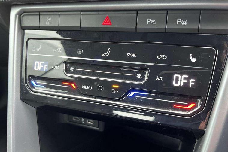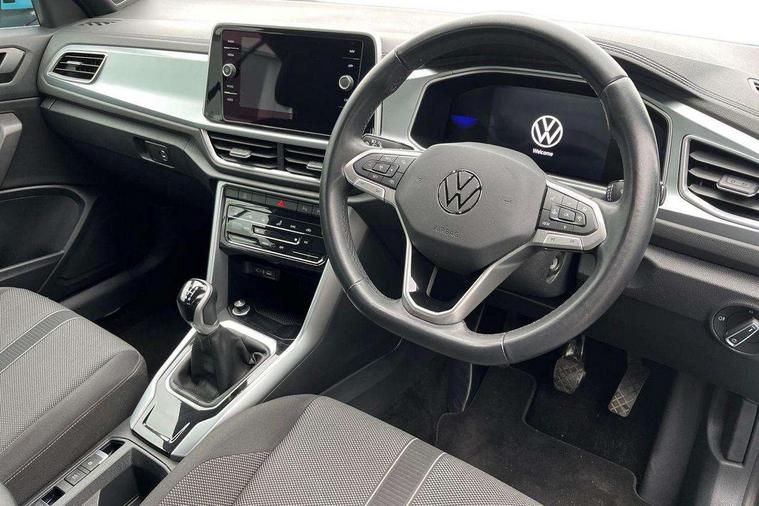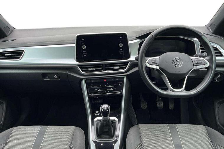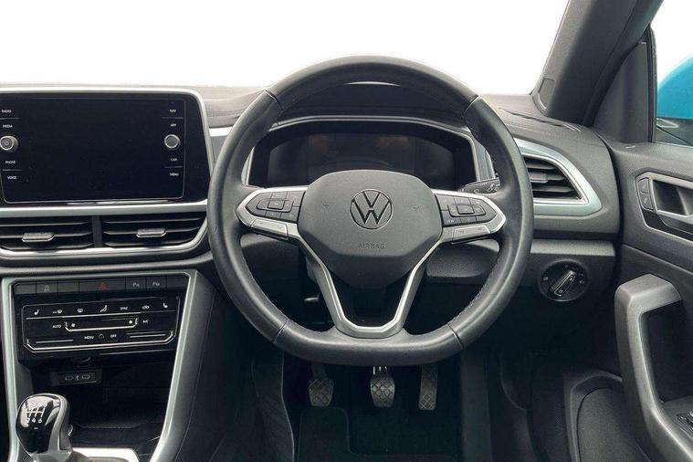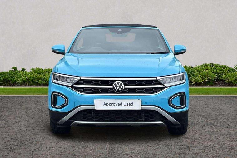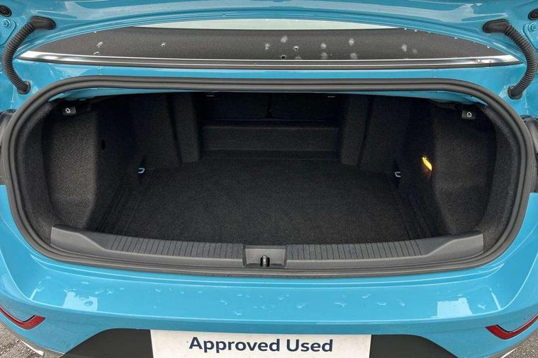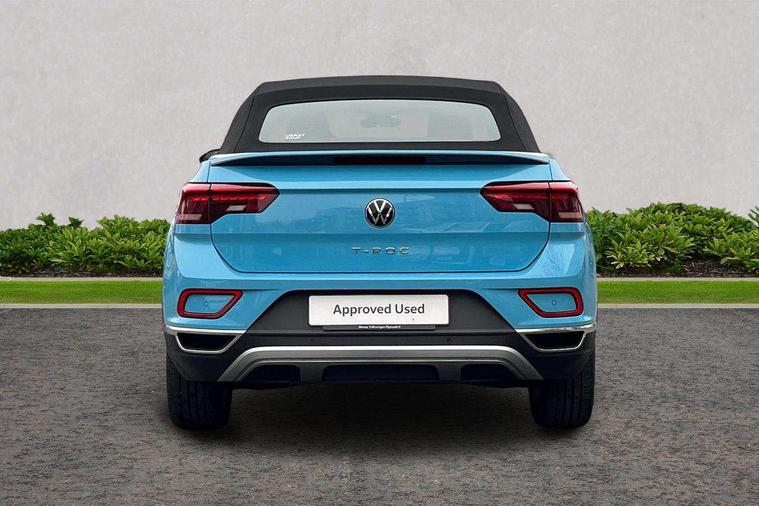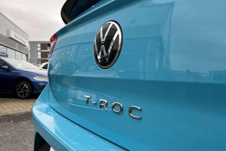 Adaptive cruise control and speed limiter, Bluetooth mobile phone interface, Brake pad wear indicator, Car information display, Driver alert system with fatigue detection, Driver tips and journey analysis, Emergency call service, Modified key software - reduce switch off time for key status change to Long no motion, Multifunction computer with visual gear change recommendation for fuel consumption, Multifunction front facing camera, Park assist including front and rear parking sensors, Speedo and rev counter, electronic odometer, trip, service interval display and exterior temperature gauge, Start/stop system with brake energy recovery, Tailgate/trunk lid release from outside, Warning sound and light for front seatbelts unfastened, Diversity antenna for FM reception, Music playback - MP3, WMA and AAC files, SMS functionality - read, compose and send SMS messages using touch-screen display, Title and cover art display, USB-C Interface and USB charging socket, We Connect and We Connect Plus functionality, Ambient lighting with logo projection, Auto dimming interior rear view mirror, Automatic hazard lights activation under emergency braking, Automatic headlight control with LED separate daytime running lights with coming/leaving home function, Black roof, Body colour door handles, Body colour rear spoiler, Body coloured bumpers and radiator grille with chrome trim and front fog lamps with chrome bezel, Chrome effect left and right trapezoid exhaust tailpipe fascia surround, Dark red rear combination lamps in LED technology, Dusk sensor, Exterior mirrors aspherical on driver side, convex on front passenger side, Headlight range control, Heat insulating glass windscreen, High level 3rd brake light, LED rear number plate lights, Power operated canvas convertible top, Power windows with comfort operation and circuit breaker, Rain sensor, Rear boot, Rear exhaust tailpipe, Rear fog light on one side and reversing lights on both sides, Remote electrically foldable door mirrors, puddle lights and reverse activated passenger door mirror, Volkswagen roundel, Windscreen wiper with intermittent wipe light, Without exterior ambient lighting, 12V socket in centre console storage area, 2 LED front reading lights, 2 seat bench in 2nd row, 50:50 Split folding rear seat backrests with fixed rear seat bench, Air care climatronic air conditoning system with active combination filter and 2-zone temperature control, Black door lower parts with chrome trim, Chrome plated surround to light, mirror and window switch, Door and side trim panel with leatherette insert, Easy entry backrest release, Front and rear carpet mats with black stitching, Front centre armrest, Front cupholders x 2, Front door pockets, Front seat back storage pockets, Heated multi function steering wheel, Height/reach adjust steering wheel, Instrument lighting, white adjustable panel illumination, Interior light delay, Interior light in footwell, Interior lighting with switch off delay and contact switches on all doors, Interior white ambient lighting and surround lighting, Isofix child seat preparation, Lockable glove compartment with light, Luggage compartment lighting, Rear head restraints, Single front passenger seat, Sun visors with illuminated vanity mirrors, Driver assistance pack without proactive passenger protection - T-Roc cabriolet, 2 x 3-point seatbelts/outer rear seats with ECE label, Driver and front passenger airbag with front passenger airbag deactivation, Driver and front passenger safety-optimised head restraints, Drivers seatbelt reminder, Electronic parking brake, Electronic Stability Control (ESC) including ABS, ASR and EDL, Front and rear disc brakes, Front assist with autonomous emergency braking, Pedestrian monitoring, Predictive pedestrian protection, Rigid safety cell with front and rear crumple zones, Side airbag/thorax airbag system, for front passengers, Single tone horn, Three point height adjust front seatbelts + pretensioners, Tyre pressure loss indicator, Volkswagen roadside assistance, Anti-theft alarm system with interior protection and central locking system with SAFELOCK, radio remote control and 2 remote control folding keys, Electronic engine immobiliser, Trims for alloy wheels,