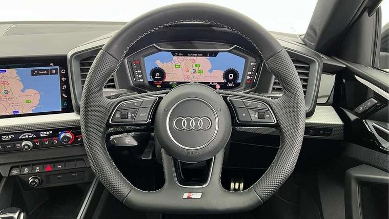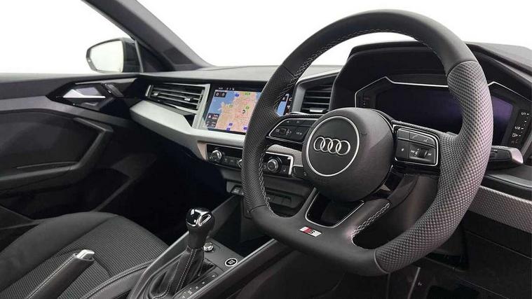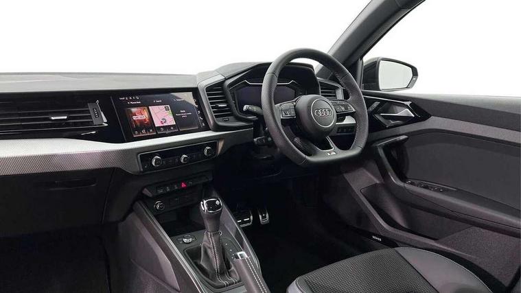 10.25" Digital instrument cluster display classis style instrument dials + speed, odometer, time, outside temperature, telephone menu + fuel level warning, Advanced driver attention and drowsiness monitor, Audi connect emergency call and service, Audi drive select, Audi remote connect and control, Bluetooth interface, Camera based traffic sign recognition, Cruise control, Driver's information system, Electromechanical power steering, Lane departure warning system, Rear parking sensor, Service interval indicator, Smartphone interface, Speed limiter, Start stop system with recuperation, Voice control system, Washer fluid level indicator, Sports suspension, 2 x USB type C connection points, 6 loudspeakers, DAB Digital radio, MMI radio plus with 10.1" colour MMI display screen and MMI touch, Auto dimming rear view mirror, Black door mirror housings, Black side skirts, Body coloured bumpers, Door sill trims with aluminium inlays and logo, Electric front and rear windows, Electrically adjustable, heated, folding door mirrors with integrated LED side indicator, Front side air inlets in grained matt black and C frame in anthracite black, Front wing badges, Headlight cleaning system, Heat insulating glass windscreen and side windows, Heated rear windscreen, High level LED brake light, LED daytime running lights, LED headlights with range control LED rear lights + dynamic rear indicators, Light and rain sensors, Privacy glass, Radiator grille and rear diffuser in matt anthracite black, Radiator protective grille frame in matt aluminium silver, Rear fog lights, Rear side wing doors, Rear wiper, Side front spoiler lips in grained matt black, 12V socket in centre console with two cup holders, 3 rear seats with headrests, 3 seat bench in 2nd row, 3 spoke flat bottomed multi-function plus leather steering wheel with S badging, grips in preforated leather, contrast stitching and paddle shift, 40:60 Split folding rear seat or fully collapsed, Black carpets, Black cloth headlining, Front and rear velour black floor mats with contrast stitching in fine silver, Front head restraints, Front passenger seat, Height and reach adjustable steering wheel, Interior lighting includes roof module, front and rear reading lights and right luggage compartment lighting, ISOFIX child seat mounting for front passenger and outer rear seats including top tether attachment point of outer rear seats, Leather gear knob with aluminium trim, Leather handbrake grip, Manual air conditioning, Manual height adjustable for driver and front passenger seat, Manually adjustable lumbar support in front seats, Stainless steel pedals, Ambient lighting package - A1, Black styling pack - A1 Sportback Black Edition, Luggage compartment pack - A1, 3x3 point rear seatbelts, Audi pre-sense front with pedestrain and cyclist recognition, Brake assist function, Driver and front passenger airbag with front side and head airbags, Electronic Stability Control including ABS, EBD, ASR and EDL, Front passenger airbag deactivation switch, Hill hold assist, Manual rear child locks, Seatbelt height adjustment for front seats, Seatbelt monitoring, Tyre pressure loss indicator, Warning triangle and first aid kit, Anti theft alarm, Anti theft wheel bolts, Immobiliser, Remote control key with safelock, Aluminium trim for control switches, air vents and digital instrument cluster, Black dashboard, Silver grey inlays polygon structure in diamond paint finish, Structured grey accent surfaces insert of air vents, interior door handle recesses and centre console in quartz paint finish,
