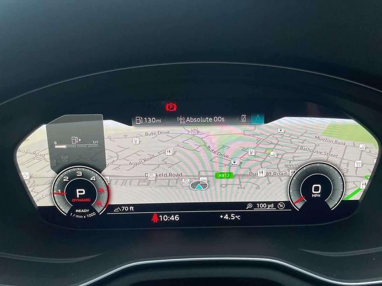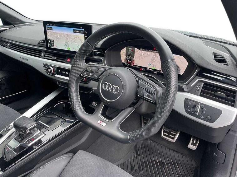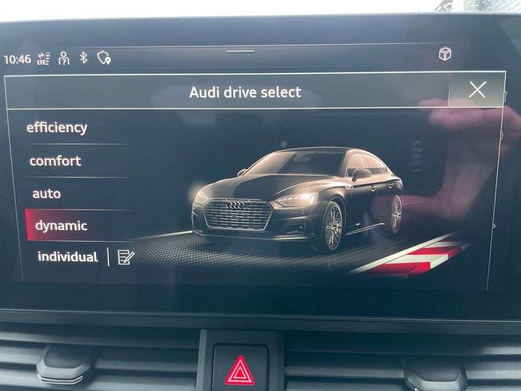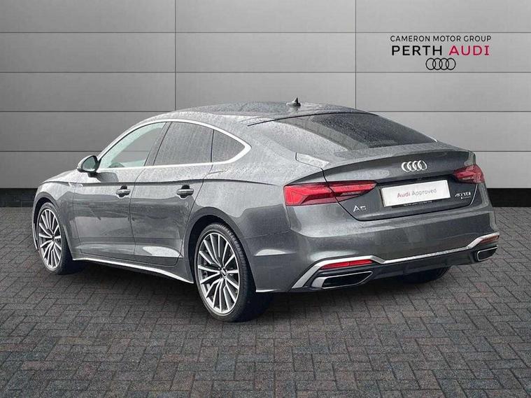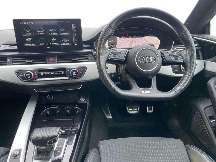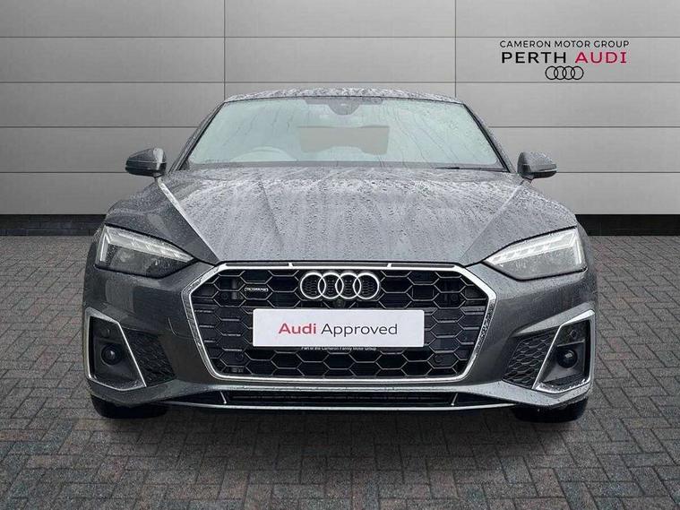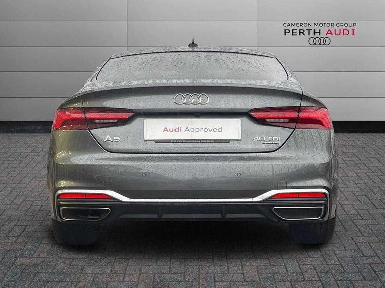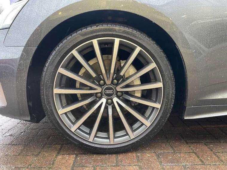 Audi connect safety and service (e-call), Audi connect with Amazon Alexa Integration, Audi drive select (Auto, Comfort, Dynamic, Efficiency and Individual), Audi parking system plus with front and rear sensors, Audi smartphone interface, Audi virtual cockpit - 12.3" full colour digital instrument cluster, vehicle/engine speed, Radio/media information+Driver assistance systems, Automatic start-stop system with coasting functionality and efficiency programme, Bluetooth interface, Electro-mechanical power steering, Email, calendar and text messages displayed via MMI, MMI nav+ with MMI touch - 10.1" high resolution MMI display, touch sensitive, 3D map, route/country info, dynamic route guide, personal route assist, Power operated tailgate, Rear view camera, Service interval indicator, Voice control system, Diesel particulate filter, Sports suspension lowered by 23mm, 8 passive loudspeakers, CD player, DAB digital radio reception, Two additional USB ports for rear passenger in rear centre console, Two SDXC card slots, Audi matrix LED headlights with LED rear lights + dynamic front and rear indicators, Auto dimming rear view mirror, Body colour bumpers, Body colour door handles, Body colour front spoiler lip, Body colour side sill trim, Body coloured door mirrors, Electric adjustable heated door mirrors, Electric folding door mirrors, Electric front windows, Front fog lights, Honeycomb structure radiator grille in grained matt black, LED daytime running lights, Matt aluminium silver tailpipe trim, Privacy glass, Rain and light sensors, S line badges on front wings, S line front and rear bumpers with side skirts, S Line rear diffuser in matt titanium black with trim strip in matt aluminium silver, Side air inlets in grained matt black with matt aluminium silver inlay, Windscreen with acoustic glazing, 4 way electric lumbar support for driver and front passenger, 40/20/40 split folding 3 seater rear bench seat, Adjustable steering column, Black cloth headlining, Black perforated leather gearknob, Contrast stitching on seats, steering wheel and gear lever gaiter, Deluxe 3 zone electronic climate control, Front centre armrest, Front head restraints, Front/rear floor mats, Heated front seats, Illuminated door sill trim with S logo, ISOFIX child seat mounting and top tether, Luggage compartment mat, Manual seat adjustment, Rear headrests, Stainless steel pedals, Sunvisors with vanity mirrors, Tool kit, LED interior light pack - A5/RS5, 3x3 point rear seatbelts, 6 airbags - Driver, front passenger, curtain and side airbags, Electromechanical parking brake, Electronic Stabilisation Control (ESC) including ABS, ASR and EDL, Front passenger airbag deactivation, Height adjustable front seatbelts, Hill hold assist, Multi collision brake assist, Pop-up bonnet for pedestrian protection, Pre sense city, Seatbelt monitoring, Tyre pressure warning, Variable restraint system, Warning triangle and first aid kit, Anti theft alarm system, Anti theft wheel bolts, Immobiliser, Keyless Go, Remote central locking, Matt brushed aluminium inlays, Tyre repair kit,