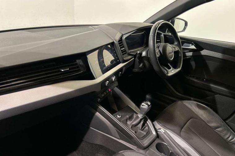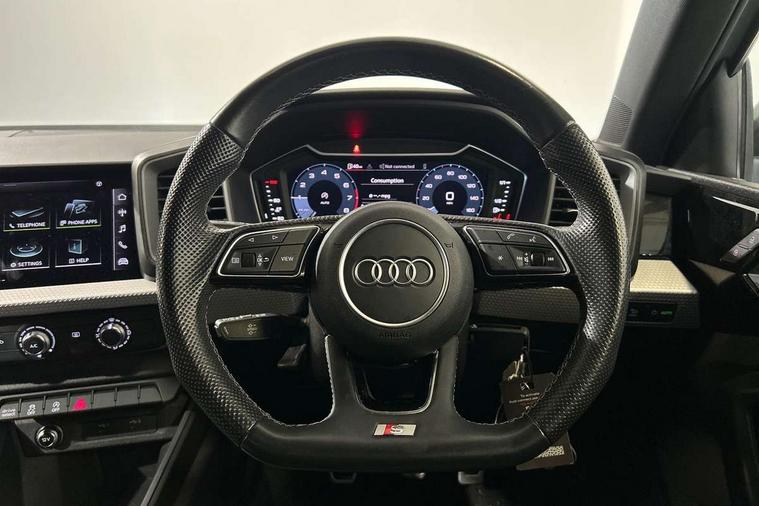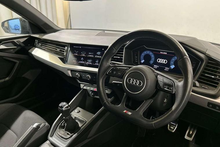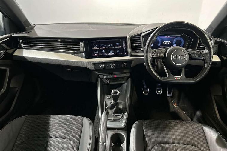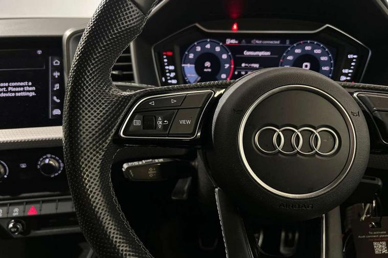 10.25" Digital instrument cluster display classis style instrument dials + speed, odometer, time, outside temperature, telephone menu + fuel level warning, Audi drive select - power steering assistance + engine, Audi smartphone interface with connect compatible smartphone via USB directly MMI display + Nav, music, third party apps controlled via MMI controller, Automatic start/stop system, Bluetooth interface, Cruise control, Driver's information system, Electromechanical power steering, Emergency e-call, Lane departure warning system, Rear parking sensor, Service interval indicator, Speed limiter, Voice control system, Washer fluid level indicator, Sports suspension, 2 x USB type C connection points, 6 passive loudspeakers, DAB Digital radio, MMI radio plus with 10.1" colour MMI display screen and MMI touch, Auto dimming rear view mirror, Black side skirts, Body coloured bumpers, Door sill trims with aluminium inlays and logo, Electric front and rear windows, Electrically adjustable, heated, folding door mirrors with integrated LED side indicator, Front side air inlets in grained matt black and C frame in anthracite black, Front wing badges, Heat insulating glass windscreen and side windows, Heated rear windscreen, High level LED brake light, LED headlights with LED rear lights + dynamic rear indicators + headlight adjustment and high beam, turning light + LED daytime running lights, Privacy glass, Rain and light sensors, Rear fog lights, Rear side wing doors, Rear wiper, Side front spoiler lips in grained matt black, 12V socket in centre console with two cup holders, 3 rear seats with headrests, 3 seat bench in 2nd row, 3 spoke flat bottomed multi-function plus leather steering wheel with S badging, grips in preforated leather and contrast stitching, 40:60 Split folding rear seat or folded fully, Black cloth headlining, Driver and passenger seat with manual height adjust with forward and backwards adjustment, Front and rear black floor mats with contrast stitching in fine silver, Front head restraints, Front passenger seat, Height and reach adjustable steering wheel, ISOFIX child seat mounting for front passenger and outer rear seats including top tether attachment point of outer rear seats, Leather gear knob with aluminium trim, Leather handbrake grip, Luggage compartment light with front and rear reading lights, Manual air conditioning, Manually adjustable lumbar support in front seats, Stainless steel pedals, Black styling pack - A1 Sportback Black Edition, LED interior lighting pack - A1, Luggage compartment pack - A1, 3x3 point rear seatbelts, Audi pre-sense front with pedestrain and cyclist recognition, Brake assist function, Driver and front passenger airbag with front side and head airbags, Electronic Stability Control including ABS, EBD, ASR and EDL, Front passenger airbag deactivation switch, Hill hold assist, Manual rear child locks, Seatbelt height adjustment for front seats, Seatbelt monitoring, Tyre pressure warning light, Warning triangle and first aid kit, Anti theft alarm, Anti theft wheel bolts and loose wheel warning, Immobiliser, Remote central locking with 2 foldaway keys, Aluminium trim for control switches, air vents and digital instrument cluster, Black dashboard, Silver grey inlays polygon structure in diamond paint finish, Structured grey accent areas including air vents, door handle recesses and centre console in quartz paint finish,