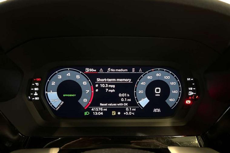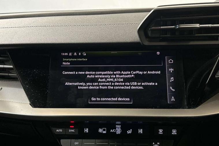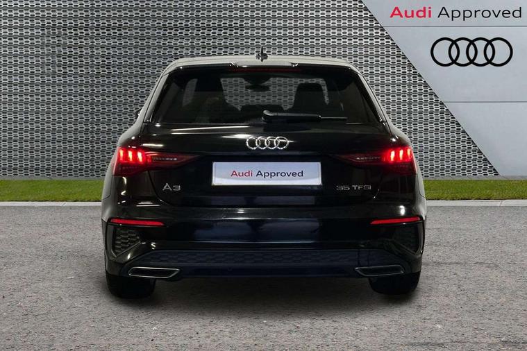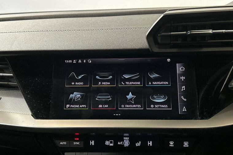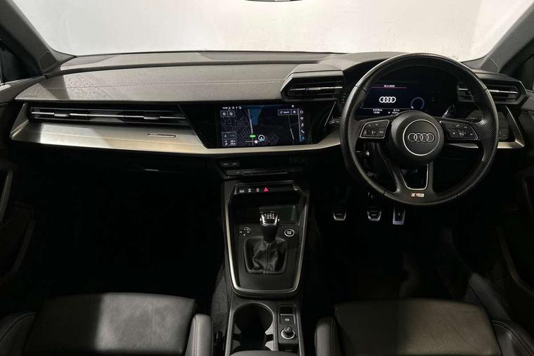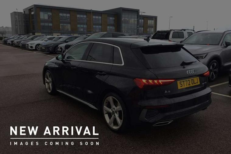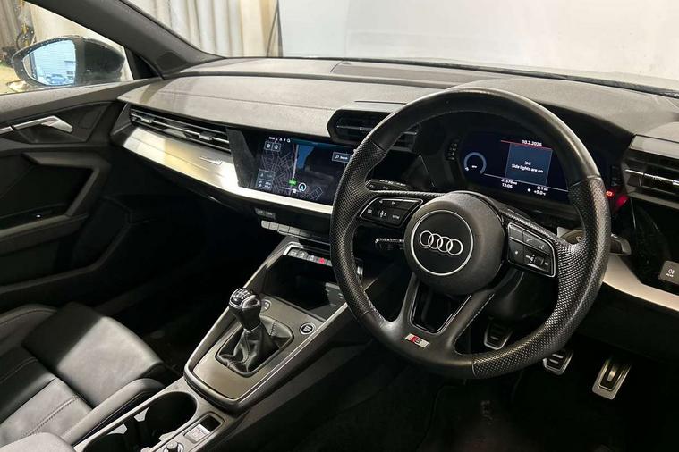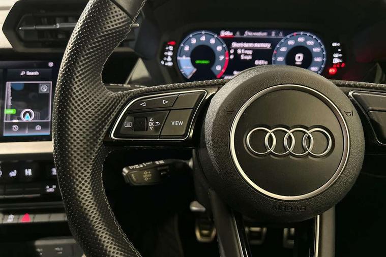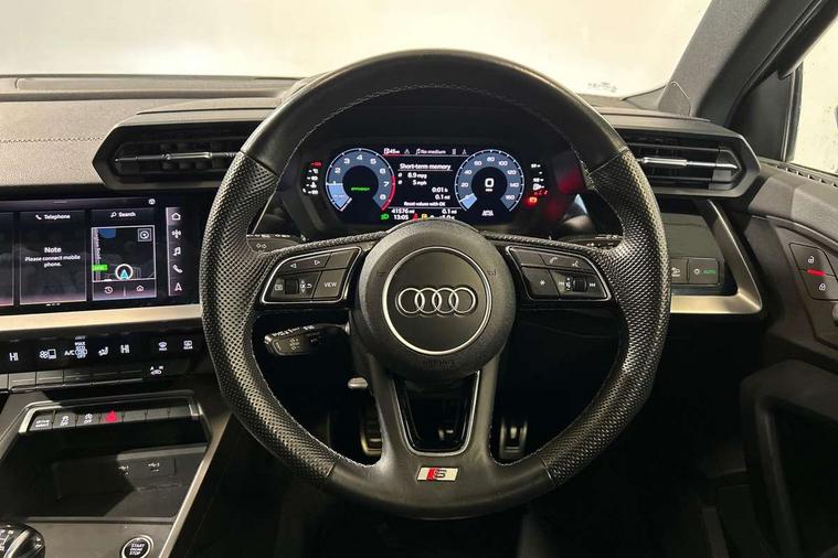 Audi drive select (Auto, Comfort, Dynamic, Efficiency and Individual), Audi smartphone interface, Audi Virtual Cockpit - 10.25" digital and colour instrument cluster, Automatic start/stop system with recuperation, Bluetooth interface, Collision avoidance assistant, Cruise control, e-Call (emergency call), Electromechanical power speed sensitive steering, Lane departure warning system, MMI Navigation Plus with high resolution 10.1" colour touch screen display, Rear parking sensors, Service indicator, Trip computer, Voice control system with natural language interaction, 2xUSB-C connection with data and charging functions, 6 passive loudspeakers, DAB Digital radio, 3rd brake light, Acoustic glass windscreen, Aluminium window trim, Auto dimming frameless rear view mirror, Electrically adjustable/heated/folding/auto dimming door mirrors with integrated LED indications + kerb view function for passenger side, Front electric windows, Illuminated aluminium inserts front door sills with S logo, LED daytime running lights, LED headlights with LED rear lights and dynamic rear indicators, Light and rain sensors, Privacy glass - dark tinted rear window, rear door and side windows, Rear electric windows, Rear side air outlets in grained matt black, Rear side wing doors, Rear wiper, S line bumpers, S roof spoiler, 12V socket and storage compartment in front centre console, 3 seat bench in 2nd row, 40/20/40 split folding rear seat bench with cupholder, Black cloth headlining, Dual zone electronic climate control, Front and rear centre armrest in leather, Front and rear headrests, Front/rear floor mats, Height and reach adjustable steering wheel, Illuminated vanity mirror, Interior lighting - glove compartment light and right hand side, Luggage compartment floor covering, Manual boot compartment lid, Manually adjustable front seats, Seat side bolsters, Single front passenger seat, Stainless steel pedals and front footrest in black, Twin leather upholstery with front sports seats S embossed logo, Aluminium interior elements pack - A3 Sportback, LED interior lighting pack - A3 Sportback, S line styling pack - A3 Sportback, 3x3 point rear seat belts, Audi pre sense front, Driver and front passenger airbag with passenger airbag deactivation, Electronic Stabilisation Control (ESC) including ABS, ASR and EDL, First aid kit with warning triangle and 2 safety vests, Front side airbags with head airbags and interaction airbag, Pre-sense front with pedestrian and cyclist detection, Seatbelt monitoring, Tyre pressure loss indicator, Anti theft alarm, Anti-theft wheel bolts, Electronically operated child lock, Immobiliser, Remote control central locking, Accent surfaces in the dashboard and centre console in platinum grey silk effect paint finish, Dark spectrum aluminium inlays,