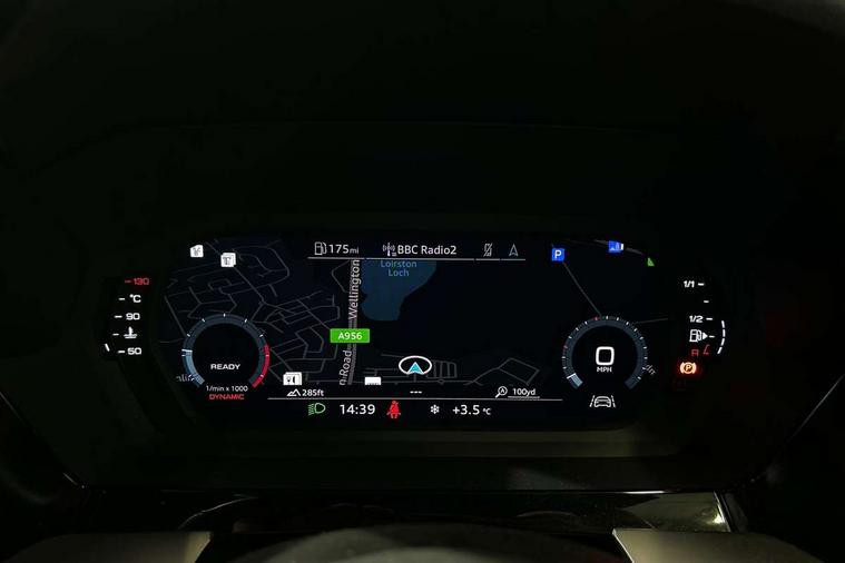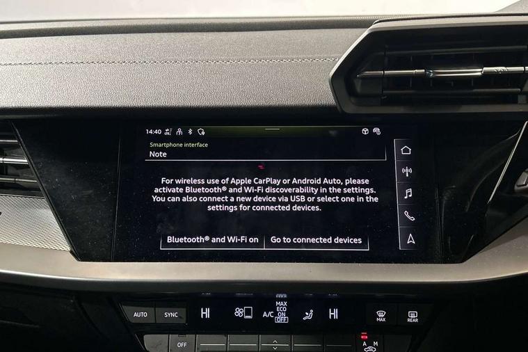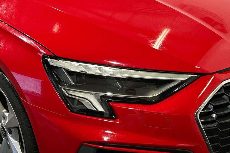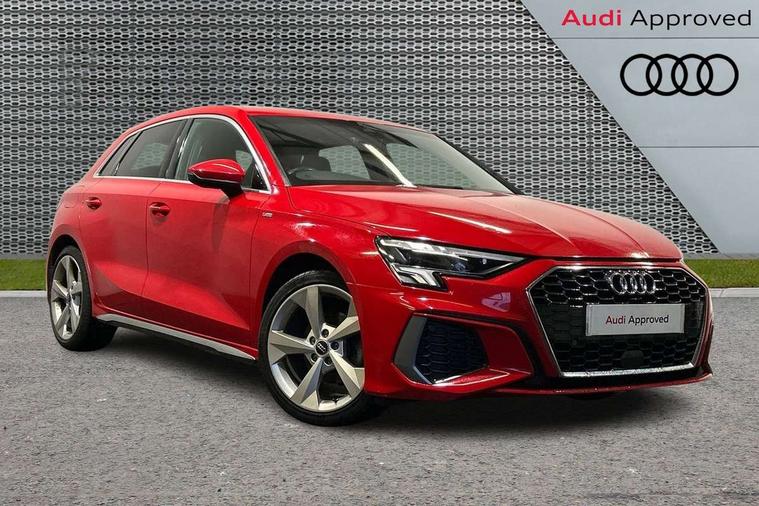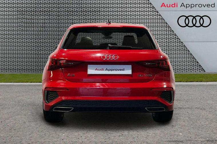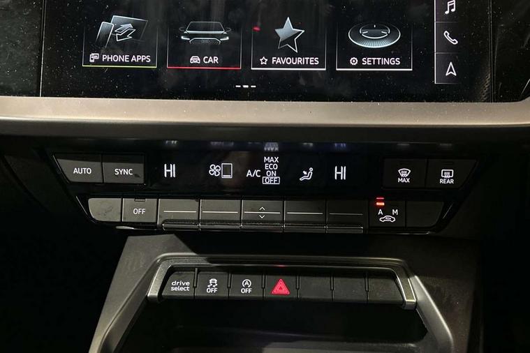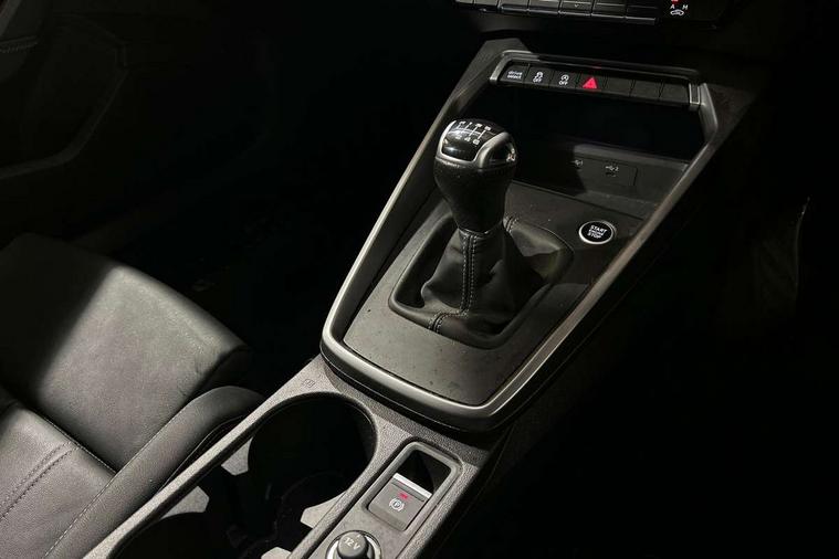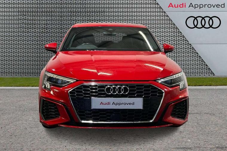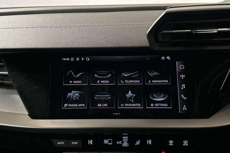 Audi drive select (Auto, Comfort, Dynamic and Individual), Audi smartphone interface, Audi Virtual Cockpit - 10.25" digital and colour instrument cluster, Automatic start/stop system with recuperation, Bluetooth interface, Camera based traffic sign recognition, Collision avoidance assistant, Cruise control, e-Call (emergency call), Electromechanical power speed sensitive steering, Lane departure warning system, MMI Navigation Plus with high resolution 10.1" colour touch screen display, Rear parking sensors, Service indicator, Trip computer, Voice control system with natural language interaction, Sports suspension, 2xUSB-C connection with data and charging functions, 6 passive loudspeakers, DAB Digital radio, 3rd brake light, Acoustic glass windscreen, Aluminium window trim, Auto dimming frameless rear view mirror, Body colour exterior mirrors, Electrically adjustable/heated/folding/auto dimming door mirrors with integrated LED indications + kerb view function for passenger side, Front electric windows, Illuminated aluminium inserts front door sills with S logo, LED daytime running lights, LED headlights with LED rear lights and dynamic rear indicators, Light and rain sensors, Privacy glass - dark tinted rear window, rear door and side windows, Rear electric windows, Rear side air outlets in grained matt black, Rear side wing doors, Rear wiper, S line bumpers, S roof spoiler, 12V socket and storage compartment in front centre console, 3 seat bench in 2nd row, 3 spoke leather multifunction steering wheel, 4 way electrically adjustable lumbar support for driver and front passenger, 60/40 split folding rear seat bench, Black cloth headlining, Dual zone electronic climate control, Front and rear centre armrest in leather, Front and rear headrests, Front/rear floor mats, Height and reach adjustable steering wheel, Interior lighting - glove compartment light and right hand side, Luggage compartment floor covering, Manual boot compartment lid, Manually adjustable front seats, Seat side bolsters, Single front passenger seat, Stainless steel pedals and front footrest in black, Twin leather upholstery with front sports seats S embossed logo, Aluminium interior elements pack - A3 Sportback, LED interior lighting pack - A3 Sportback, S line styling pack - A3 Sportback, 3x3 point rear seat belts, Driver and front passenger airbag with passenger airbag deactivation, Electronic Stabilisation Control (ESC) including ABS, ASR and EDL, First aid kit with warning triangle and 2 safety vests, Front side airbags with head airbags and interaction airbag, Pre-sense front with pedestrian and cyclist detection, Seatbelt monitoring, Tyre pressure loss indicator, Anti theft alarm, Anti-theft wheel bolts, Electronically operated child lock, Immobiliser, Remote control central locking, Dark spectrum aluminium inlays, accent surfaces in the dashboard and centre console in platinum grey silk effect paint finish,
