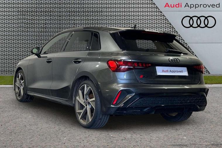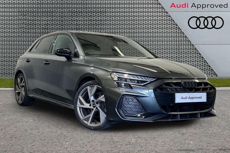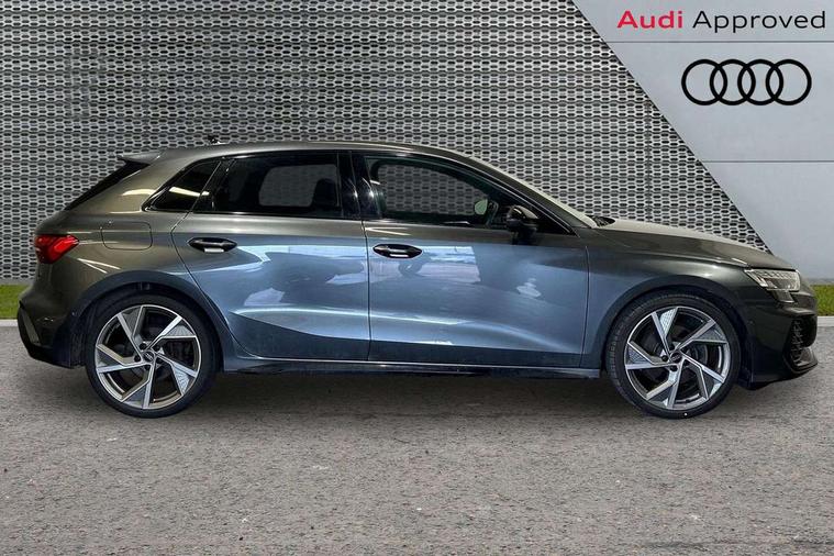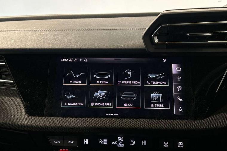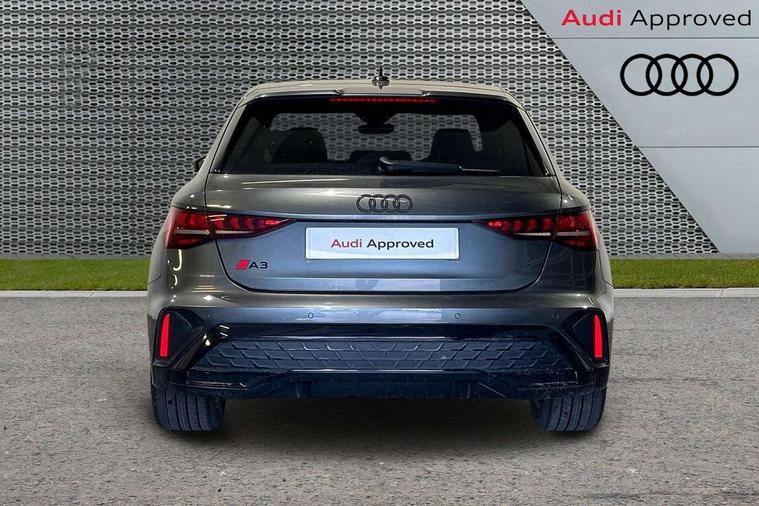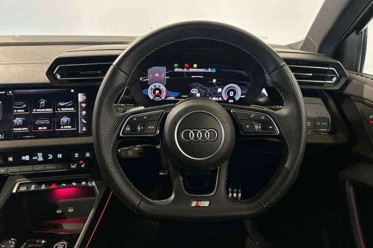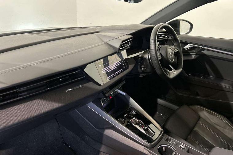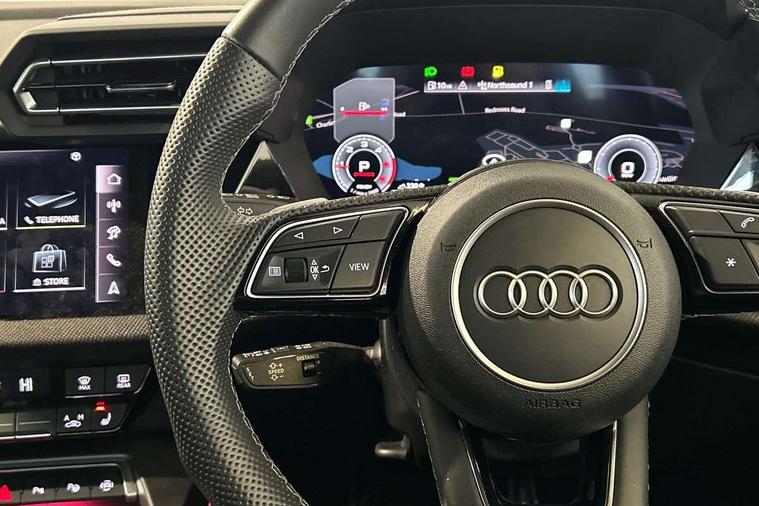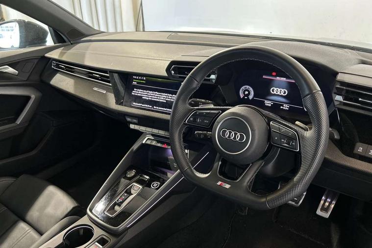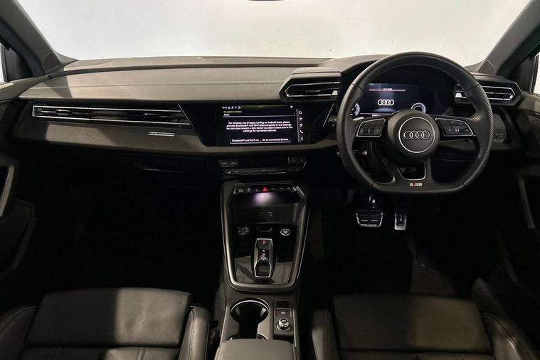 Adjustable speed limiter, Audi drive select, Audi smartphone interface with app store includes wireless Apple carplay, Android auto and Amazon alexa integration, Audi virtual cockpit plus - 12.3" full HD resolution dynamic digital instrument cluster, Automatic start/stop system with recuperation, Bluetooth interface, Camera based traffic sign recognition, Collision avoidance assistant, Cruise control, Distraction and Fatigue warning, e-Call (emergency call), Electromechanical power speed sensitive steering, Lane departure warning system, MMI Navigation Plus with high resolution 10.1" colour touch screen display, Park Assist with parking system Plus, Service indicator, Tailgate, Trip computer, Voice control system with natural language interaction, Diesel particulate filter, Sports suspension, Audi Phonebox light with wireless charging, Audi sound system - 10 loudspeakers including centre loudspeaker and subwoofer, DAB Digital radio, USB ports with charging function in the rear, Acoustic glass windscreen, Anthracite grey Audi rings (front and rear), Audi beam uses LEDs to project the Audi logo onto the ground as you exit your A3, Auto dimming frameless rear view mirror, Black accents front and rear bumpers, Black accents in the area of the Audi single frame grille, Black accents window trims strips, Electrically adjustable/heated/folding/auto dimming door mirrors with integrated LED indications + kerb view function for passenger side, Exterior model badging, Front electric windows, Heat insulating glass windscreen, Illuminated door sills with aluminium inserts at the front with S logo, LED 3rd brake light, LED daytime running lights, LED headlights with LED rear lights and dynamic rear indicators, Light and rain sensors, Privacy glass - dark tinted rear window, rear door and side windows, Rear electric windows, Rear side wing doors, Rear wiper, S roof spoiler, 12V socket and storage compartment in front centre console, 3 seat bench in 2nd row, 3 spoke flat bottomed leather multifunction sport steering wheel with gear shift paddles, 3-zone deluxe automatic air conditioning, 4 way electrically adjustable lumbar support for driver and front passenger, 40/20/40 split folding rear seat bench, Black cloth headlining, Front and rear centre armrest in artificial leather, Front and rear headrests, Front/rear floor mats, Heated front seats, Height and reach adjustable steering wheel, Manual boot compartment lid, Manually adjustable front seats, Rear cup holders, S badging on the steering wheel, Seat side bolsters, Single front passenger seat, Stainless steel pedals and front footrest in black, Twin leather upholstery with front sports seats S embossed logo, Aluminium interior elements pack - A3 Sportback, Multi-coloured LED interior lighting package - A3 Black Edition, 3x3 point rear seat belts, Driver and front passenger airbag with passenger airbag deactivation, Electronic Stabilisation Control (ESC) including ABS, ASR and EDL, First aid kit with warning triangle and 2 safety vests, Front side airbags with head airbags and interaction airbag, Hill hold assist, Pre-sense front with pedestrian and cyclist detection, Seatbelt monitoring, Tyre pressure loss indicator, Anti theft alarm, Anti-theft wheel bolts, Electronically operated child locks, Immobiliser, Remote central locking with safelock, Inlays in black Impressum woven textile,