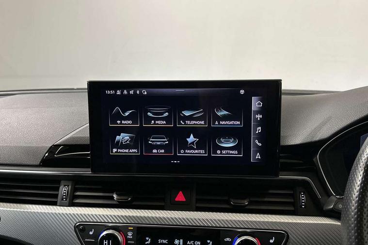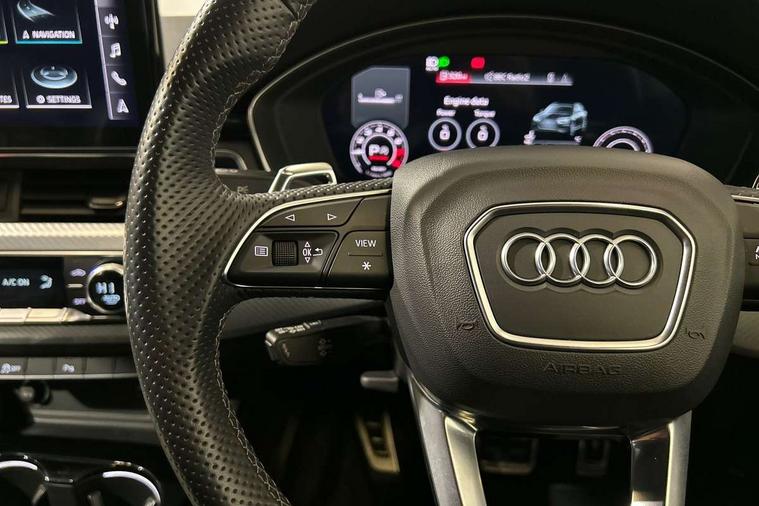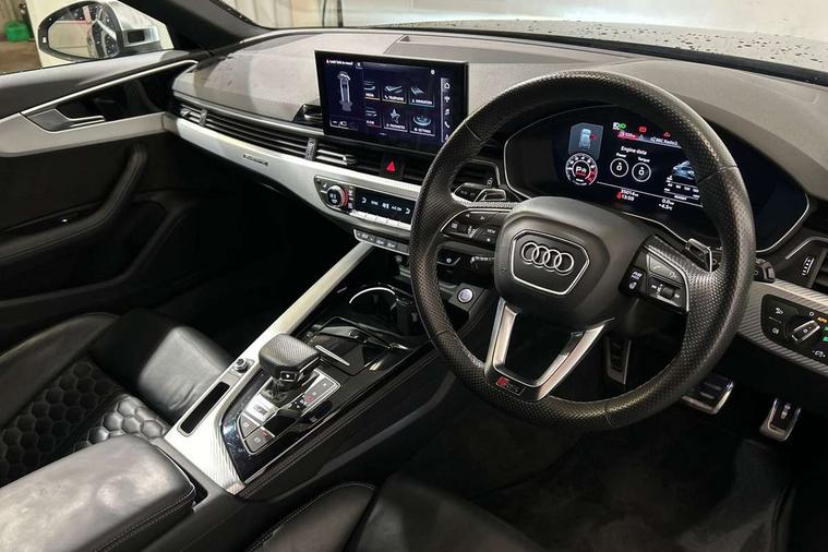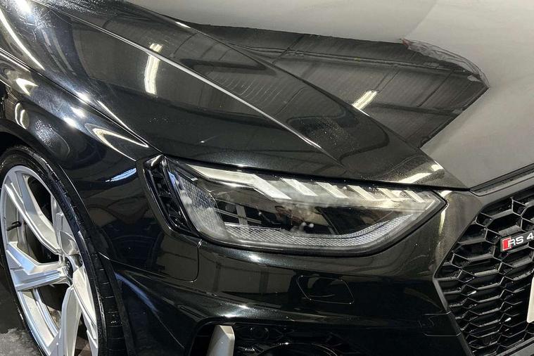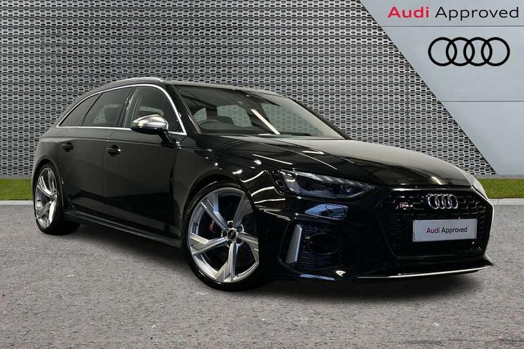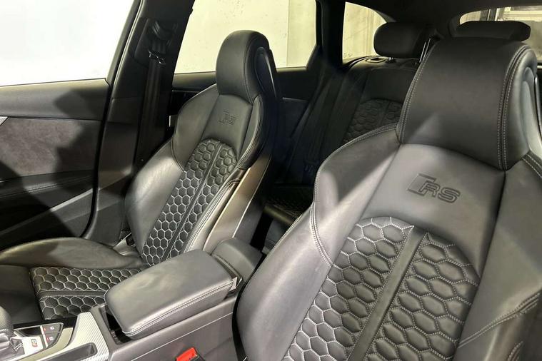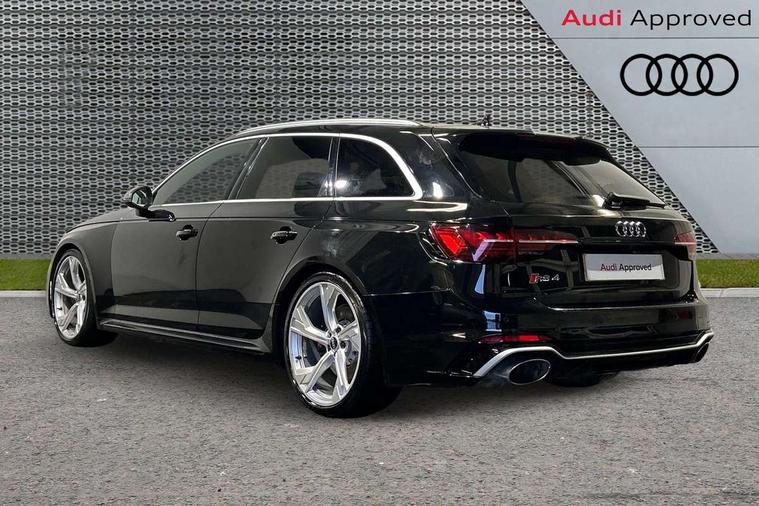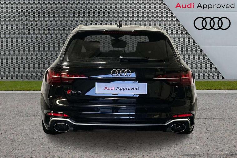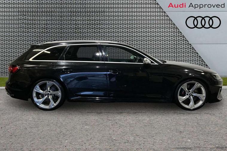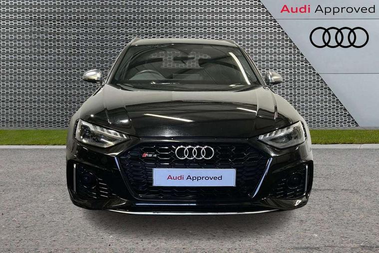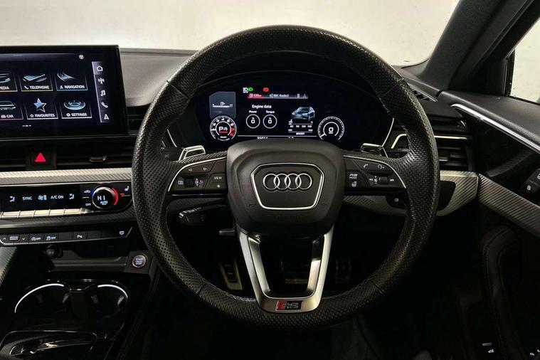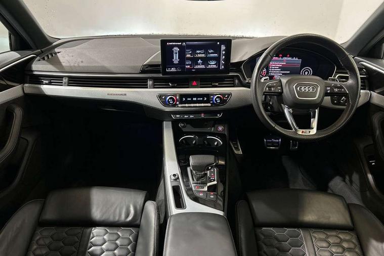 7" Colour driver information system, Audi connect safety and service (e-call), Audi drive select, Audi parking system plus with front and rear sensors, Audi phone box with wireless charging, Audi side assist, Audi smartphone interface, Audi virtual cockpit with RS specific display, Automatic start-stop system with coasting functionality and efficiency programme, Bluetooth interface, Electromechanical power steering, Email, calendar and text messages displayed via MMI, MMI Navigation plus with MMI touch includes 10.1" high resolution colour MMI display, 3D map, Power opening/closing tailgate, Rear view camera, Service interval indicator, Voice control system, 58 Litre fuel tank, Quattro sports differential, 2 USB charging ports, Audi sound system, DAB digital radio module, Acoustic windscreen, Audi Beam uses LEDs to project the Audi Sport logo, Audi matrix LED headlights with LED rear lights + dynamic front and rear indicators, Auto dimming rear view mirror, Automatic headlights + automatic windscreen wipers, Blue tinted glass, Body colour door handles, Electric front windows, Electric rear windows, Electrically folding auto dimming/adjustable/heated door mirrors with memory function, LED side indicators and kerb view function for passenger side, Flared front and rear wheel arches, Front bumper with enlarged air inlets, Front spoiler in matt aluminium look finish, Headlight range control, High beam assistant, High gloss black triangular aperture at rear door, Honeycomb design grille with quattro logo, Lateral air inlets next to front headlights, LED daytime running lights, LED indicators in door mirrors, Matt aluminium door mirrors, Privacy glass with rear acoustic glazing, Rain and light sensors, Rear wiper, Roof rails in aluminium matt look finish, Roof spoiler, RS 4 badges on grille, the front wing panels and rear, RS4 dual branch chrome tailpipes with left and right oval pipes, Side sill extensions in body colour with high gloss black inserts, 3 spoke flat bottomed high multi-function leather sport steering wheel with RS badging, 40/20/40 split folding rear seats with rear centre armrest, Black cloth headlining, Deluxe 3 zone electronic climate control, Electric load area cover, Electrically adjustable front seats, Fine nappa leather with contrast honey comb stitching + super sports seats with pneumatic massage function, Front centre armrest, Front headrests, Front/rear floor mats, Heated front seats, Height and reach adjustable steering wheel with full size airbag, Illuminated door sill trims with RS4 logo, ISOFIX child seat mounting and top tether, Leather door armrests and knee pad, Luggage compartment carpet, Rear headrests, Retractable load area cover, RS Specific perforated leather gear lever knob with contrast stitching, Stainless steel pedals, Sunvisors with vanity mirrors, LED Interior light pack - RS4, Non Smokers pack, 3 point seatbelts on all rear seats, Adaptive driver and front passenger airbags, Electromechanical parking brake, Electronic stabilisation control including ABS, ASR and EDL, Enhanced braking system, Front head airbags, Front seatbelt pretensioners + load limiters, Front side airbags, Hill hold assist, Multi-Collision braking, Pop-up bonnet for pedestrian protection, Pre sense city, Rear side airbags, Seatbelt monitoring, Traction control, Tyre pressure warning, Variable restraint system, Warning triangle and first aid kit, Anti theft alarm, Anti-theft wheel bolts, Immobiliser, Keyless Go, Remote central locking, Remote control key with RS emblem, Aluminium race inlays, Tool kit, Tyre repair kit,