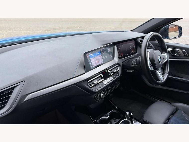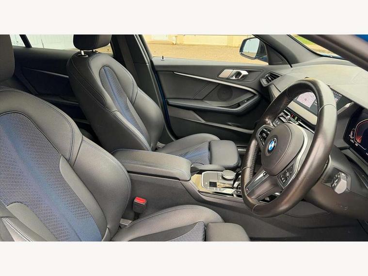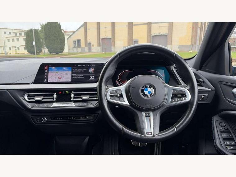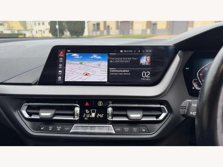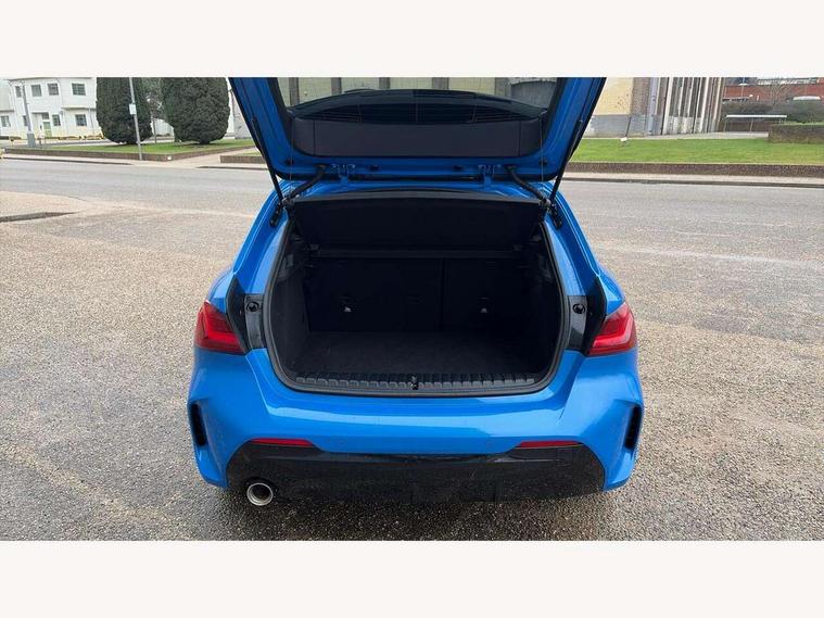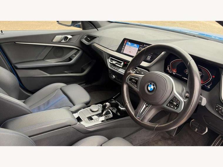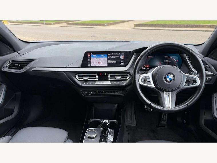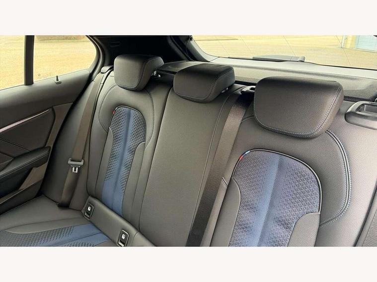 Active guard plus, Attentiveness assist, BMW Online services, BMW Teleservices, Check Control warning system for monitoring of lights and door/luggage compartment open warning, Connected eDrive Services, Eco pro mode, Integrated owners handbook, Oil sensor for level and grade, On board computer, Optimum shift indicator, Personal Profile, Pull away assistant, Speed limiter, Aluminium lightweight construction, Anti roll bar front and rear, Balancer shaft, Double VANOS, Drive Performance Control, Electronic differential lock, High precision injection, M sport suspension, Petrol Particulate Filter, VALVETRONIC engine management, Bluetooth audio streaming, DAB Digital radio, Auto dimming rear view mirror, Automatic headlight beam throw control, Automatic windscreen wipers and automatic headlight, Body colour door handles, Body colour mirror caps, Chrome 'M' logo side designation, Chrome exhaust tailpipe in single, round (Exhaust tailpipe, stainless steel - single, round), Chrome kidney grille frame with Satin Aluminium struts, Direction indicator side lights in exterior mirrors, Electric folding and anti dazzle exterior mirrors, Fading support, Follow me home headlights, Front and rear bumper system with replaceable deformation elements, Front and rear electric windows with open and close fingertip control, anti trap facility and comfort closing, Front door sill finishers in black plastic with M designation in metallic look, Green tinted heat protection glazing, Heated, electrically adjustable exterior mirror aspheric on driver side, convex on passenger side, High gloss shadowline window frame, Recess cover mirror frames and B/C pillar embelisher trim, High level third brake light, LED daytime running lights, LED eyebrow turn indicators, LED front fog lights, Lightweight engineering, Matt black air guide grilles, Model designation on right side of tailgate, Nearside reverse light in rear light cluster, Preparation for high beam assistant, Rain sensor including auto headlights activation, Rear fog lights, Rear window wiper, Shark fin antenna, Visible VIN plate, Welcome lighting, 12V power socket in centre console, 3 rear seat head restraints, 3 spoke M sports design leather steering wheel finished in nappa leather with specific M badge, Anthracite headlining, Anthracite Velour floor mats, Child seat ISOFIX attachment for two outer rear seats and front passenger seat with anchorage points, Conditioned based service, Dakota leather upholstery with perforation and contrast stitching, Driver and front passenger seat heating, Folding rear clothes hook, Four grab handles integrated in roof lining, Front and rear door pockets, Front and rear door pockets with bottle holders, Front and rear side armrest integrated into door trim, Front armrest foldable with integrated storage compartment, Front sports seats with electric side bolster adjustment, Glove compartment, Height adjustable front head restraints, Manual adjust steering wheel, Multi-function controls for steering wheel, Storage compartment in centre console, Sun visors with vanity mirrors and insert tab, Two zone automatic air conditioning, Additional interior lighting pack - 1 Series, Connected pack professional - 1 Series, Extended storage pack - 1 Series, Interior lights pack - 1 Series, Luggage compartment pack - 1 Series, M Sport exterior styling aerodynamics pack - 1 Series, 2 tone horn, 3 point seatbelts on all seats, front pyrotechnic belt tensioners, stopper and belt force limiters, rear coded belt buckles, Airbags - front driver/passenger, front & rear curtain, front side, Anti lock braking system (ABS) with brake assist, BMW emergency call, Brake drying, Braking readiness, Crash sensor activating central locking release, hazard warning lights, fuel cut off, interior lighting + activation of safety battery terminal clamp, Driver and front passenger seat belt security check, Dynamic stability control + (DSC+), Dynamic Traction Control - DTC, Electrically operated hand brake, Front and rear disc brakes, Front passenger manual airbag deactivation, Seatbelt warning, Side impact protection, Tyre pressure monitoring system, Warning triangle and first aid kit, Automatic drive away locking facility, Central locking switch for all doors, fuel filler cap and luggage compartment, Deadlocking function system to all doors, Locking wheel bolts, Remote control with integrated key with High-gloss Black inlay and M designation and 1 button for open/ close lock, window, open luggage compartment, Start/stop button with comfort go keyless engine start and auto start stop deactivation button, Thatcham Cat.1 alarm and immobiliser, Contrast stitching on instrument panel, Reduced rolling resistance tyres,