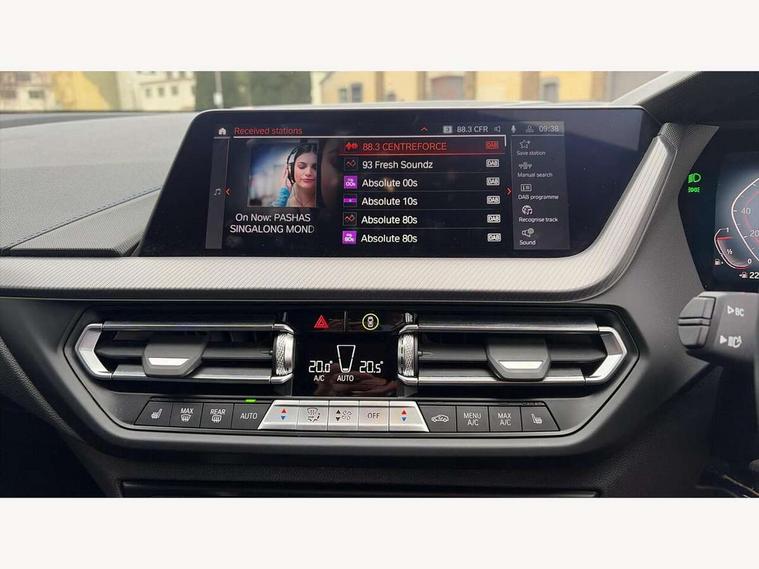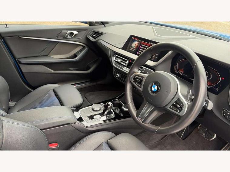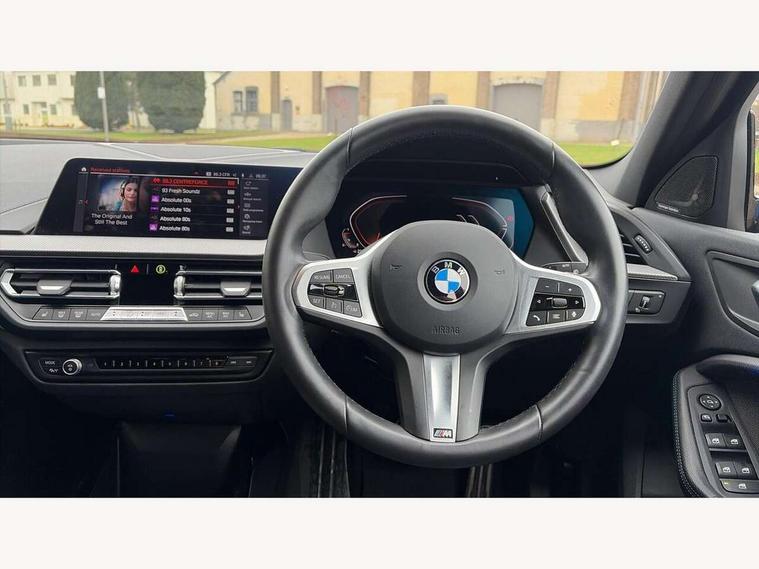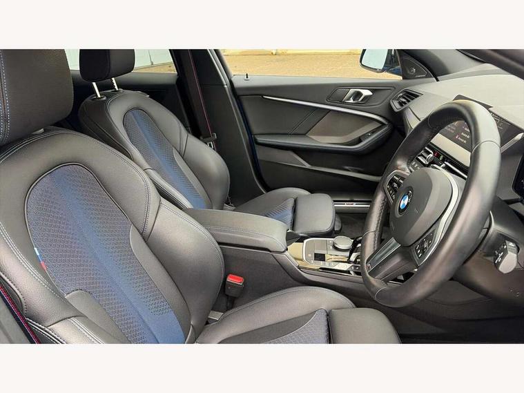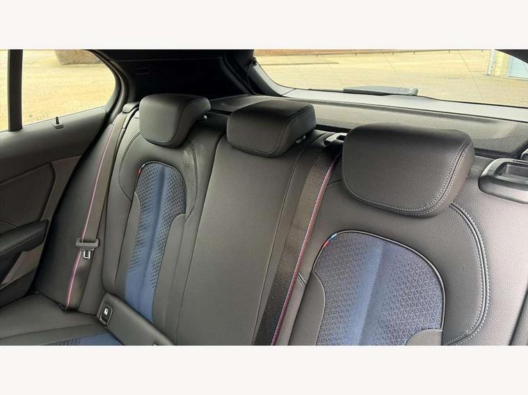 Active guard plus, Attentiveness assist, BMW ConnectedDrive online services, BMW Teleservices, Check Control warning system for monitoring of lights and door/luggage compartment open warning, Cruise control with speed limiter, Eco pro mode, Front axle single joint with specific axle kinematics to minimise drive influences on steering + provide increased rigidity agile driving behaviour, Integrated owners handbook, Lane departure warning system, Oil sensor for level and grade, On board computer, Optimum shift indicator, Personal Profile, Pull away assistant, Rigidly mounted rear subframe - Multi link construction with separate spring / damper configuration and excellent driving characteristics, Speed limit Info including no-overtaking indicator, Aluminium lightweight construction, Anti roll bar front and rear, Balancer shaft, Double VANOS twin scroll turbocharging system, Drive Performance Control, Electronic differential lock, High precision injection, M sport suspension, Petrol Particulate Filter, Twin tube gas filled shock absorbers with degressive characteristic curve, VALVETRONIC engine management, DAB Digital radio, Auto dimming rear view mirror, Automatic headlight beam throw control, Automatic windscreen wipers and automatic headlight, Body colour door handles, Body colour mirror caps, Body colour roof trims, Chrome 'M' logo side designation, Chrome exhaust twin tailpipes round 90mm in left, Chrome kidney grille frame with Satin Aluminium struts, Direction indicator side lights in exterior mirrors, Electrically adjustable exterior mirror with mirror adjustment switch on drivers armrest and aspheric on driver side, convex on passenger side, Fading support, Folding side mirrors with auto dimming/folding wing mirrors with auto dimming, Follow me home headlights, Front and rear bumper system with replaceable deformation elements, Front and rear electric windows with open and close fingertip control, anti trap facility and comfort closing, Front door sill finishers in black plastic with M designation in metallic look, Green tinted heat protection glazing, High gloss shadowline window frame, Recess cover mirror frames and B/C pillar embelisher trim, High level third brake light, Integrated front windscreen with washer jets, LED daytime running lights, LED eyebrow turn indicators, LED front fog lights, Lightweight engineering, Matt black air guide grilles, Matt black wheel arch trim, Model designation on electric bootlid, Nearside reverse light in rear light cluster, Preparation for high beam assistant, Rear fog lights, Rear side wing doors, Rear window wiper, Shark fin antenna, Trailer stabilisation logic, Visible VIN plate, Welcome lighting, 12V power socket in front centre console with blanking plug, 3 rear seat head restraints, 3 seat bench in 2nd row, 3 spoke sports leather steering wheel with black leather and stitching, pearl chrome decorative finish, specific M Badge, Anthracite headlining, Black boot net with lashing eyes, Cargo function on 2nd seat row, Child seat ISOFIX attachment for two outer rear seats and front passenger seat with anchorage points, Conditioned based service, Driver and front passenger backrest net on rear, Driver and front passenger seat heating, Driver side folding compartment in instrument panel, Folding rear clothes hook, Four grab handles integrated in roof lining, Front and rear door pockets with bottle holders, Front and rear side armrest integrated into door trim, Front armrest, Front sports seats, Glove compartment, Height adjustable front head restraints, Luggage compartment for bag hooks on left and right, foldable luggage compartment liner and four lashing eyelets, Manual adjust steering wheel, Multi-function controls for steering wheel, Single front passenger seat, Storage compartment in centre console, Storage compartment in luggage compartment, Stowage of the parcel shelf in luggage compartment trim, Sun visors with vanity mirrors and insert tab, Two front centre console cupholders, Two zone automatic air conditioning, Type C two USB ports in rear centre console, Velour floor mats, Additional interior lighting pack - 1 Series, BMW live cockpit professional pack- 1 Series, Connected pack professional - 1 Series, Interior lights pack - 1 Series, M Sport exterior styling aerodynamics pack - 1 Series, 2 tone horn, 3 point seatbelts on all seats, front pyrotechnic belt tensioners, stopper and belt force limiters, rear coded belt buckles, Airbags - Front driver/passenger, front and rear curtain head protection, front side, manual deactivation of front passenger airbag, Anti lock braking system (ABS) with brake assist, BMW emergency call, Brake drying, Braking readiness, Child proof locking system in rear door, City braking function, Comfort modes, Cornering brake control, Crash sensor activating of airbags, Unlocking doors, hazard warning lights, fuel cut off, interior lighting+activation of safety battery terminal clamp, Driver and front passenger seat belt security check, Dynamic stability control + (DSC+), Dynamic Traction Control - DTC, Electrically operated hand brake including automatic hold function, Front and rear disc brakes, Seatbelt warning, Side impact protection, Tyre pressure monitoring system, Warning triangle and first aid kit, Central locking switch for all doors, fuel filler cap and luggage compartment, Deadlocking function system to all doors, Drive away locking system on all doors and luggage compartment with de-activated in iDrive settings, Locking wheel bolts, Remote control with integrated key with High-gloss Black inlay and M designation and 1 button for open/ close lock, window, open luggage compartment, Start/stop button illuminated in centre console with keyless engine start and auto start stop deactivation button, Thatcham Cat.1 alarm and immobiliser, Wheel slip limitation close to the actuator (ARB), Contrast stitching on instrument panel, 18" Burnished M double spoke bi-colour alloy wheels finished in orbit grey - styl
