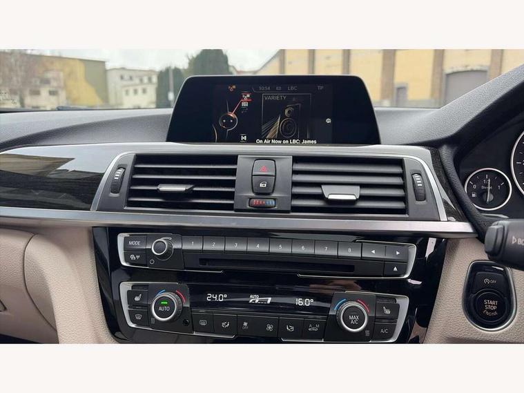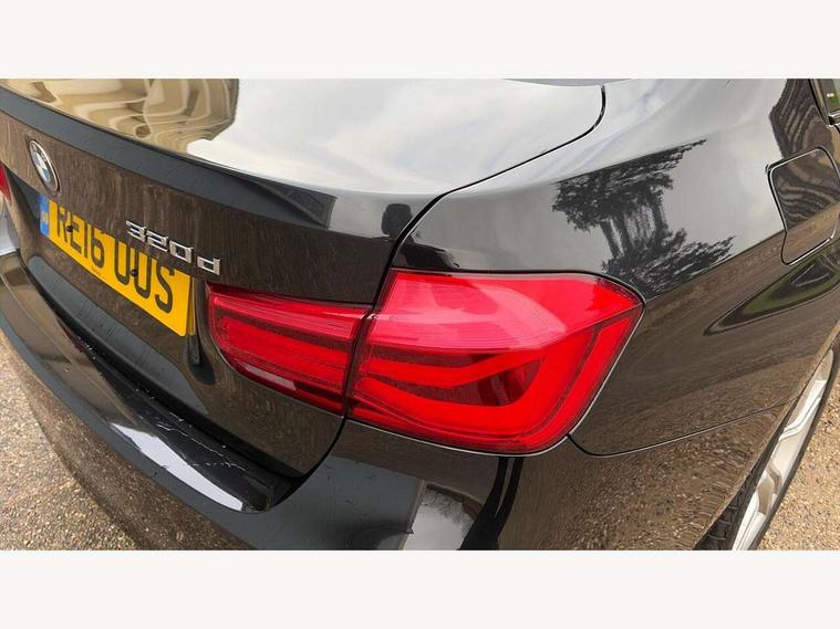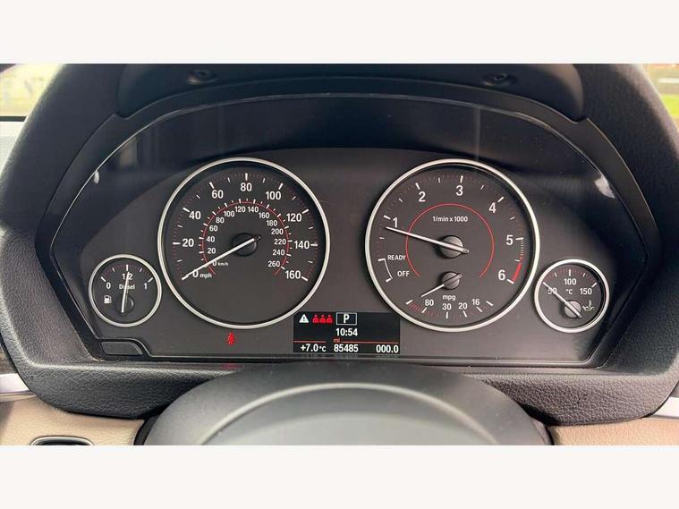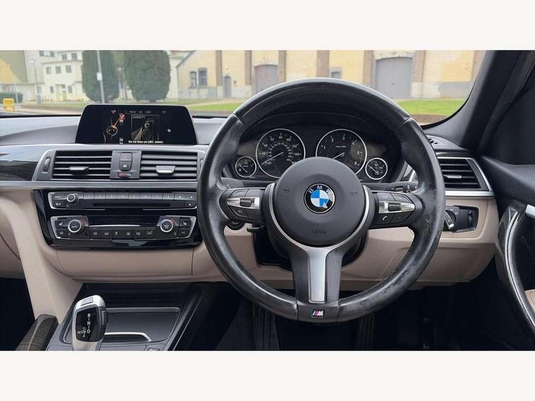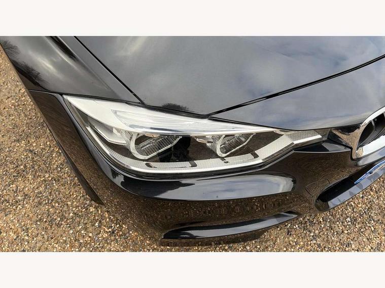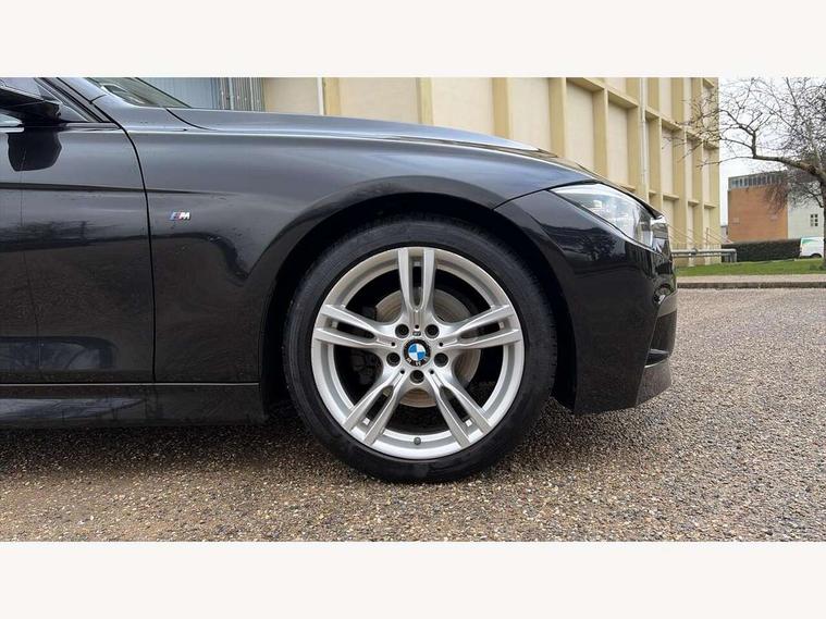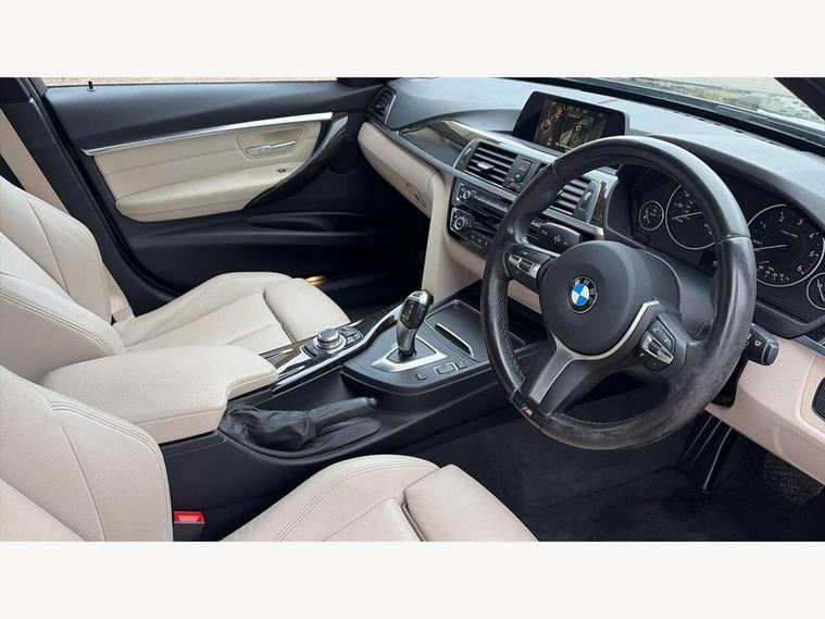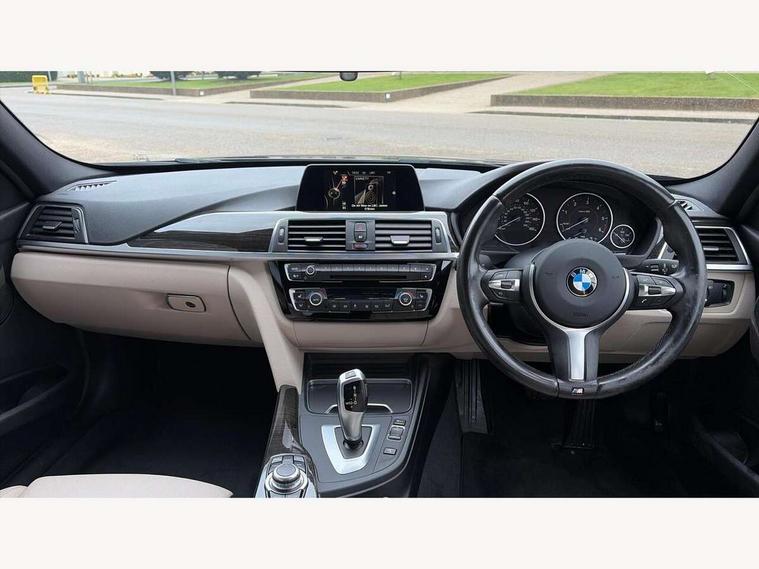 BMW Online services, BMW Teleservices, Brake force display, Brake pad wear indicator warning light, Check control system, Digital clock, Door/boot open warning light, Lights on warning, Oil temperature gauge, On board computer, On board diagnostics, Operation warning of all exterior lights, Outside temperature display, Push button starter, Run flat tyre indicator, Service interval indicator, Traffic message channel (TMC), Diesel particulate filter, Drive Performance Control, Electronic differential lock, Auxiliary point for auxiliary devices, BMW professional radio/CD/MP3, CD Changer preparation, DAB Digital radio, 'Guide me home' headlamps, 2 speed adjustable intermittent wipers with wash/wipe function, Auto dimming rear view mirror, Automatic headlight beam throw control, Body colour bumpers, Body colour door handles, Body colour electric adjustable door mirrors, Body colour roof mouldings, Chrome exhaust tailpipe, Clear indicator lenses, Door sill finishers, Dynamic brake lights, Electric front and rear windows with one touch/convenient open/close function, Front ornamental grille with chrome plated kidney bars and chrome bezel, Green tinted heat insulating glass, Heated rear window with automatic switch off, Heated windscreen washer jets, High gloss shadow line, LED daytime running lights, LED fog lights, Rain sensor + automatic driving lights control, Shark fin roof aerial, 12V sockets in front centre console and passenger footwell, 2 x folding cupholders in instrument panel above glovebox, 3 rear seat head restraints, 4 foldable grab handles - rear with clothes hook, 4 lashing points to secure luggage, Automatic interior light soft on/soft off system, Driver and passenger sunvisors with vanity mirrors + slide cover, Dual zone automatic air conditioning, Folding front centre armrest + storage, Front and rear door armrests, Front and rear velour floor mats, Front door storage bins with bottle holder, Front sports seats with electric side bolster adjustment, Glovebox light, Height adjustable front headrests, Indirect front interior illumination - soft-light function, Individual anthracite headlining, Isofix system on outer rear seats, Leather gear knob, Leather gear selector lever handle, Leather handbrake grip, Lockable glovebox, Luggage compartment lighting, M sports leather steering wheel, Multi-function controls for steering wheel, Reach + rake adjustable steering column, Rear centre armrest with 2 cupholders, Rear storage compartment in multifunction centre console with sliding cover, Storage compartment in rear doors, Toolkit located in luggage compartment, Extended lighting package - 3 Series, 3 point inertia reel seatbelts + pre-tensioners on outer rear seats, ABS, Automatic Stability Control (ASC), BMW emergency call, Cornering brake control (CBC), Crash sensor, Driver and passenger airbags, DSC+, Dynamic brake control, Dynamic Traction Control - DTC, Front and rear head airbags, Front passenger airbag deactivation, Front seat side impact airbags, Front seatbelt pretensioners + load limiters, Hill start assist, Rear child proof door locks, Seatbelt warning, Three 3 point rear seatbelts, Twin horns, Tyre pressure monitor, Warning triangle and first aid kit, Automatic drive away locking facility, Central locking fuel filler cap, Centre lock switch, Electronic immobiliser, Key integrated remote control central locking, Remote control alarm, Low rolling resistance tyres, Run-flat tyres,