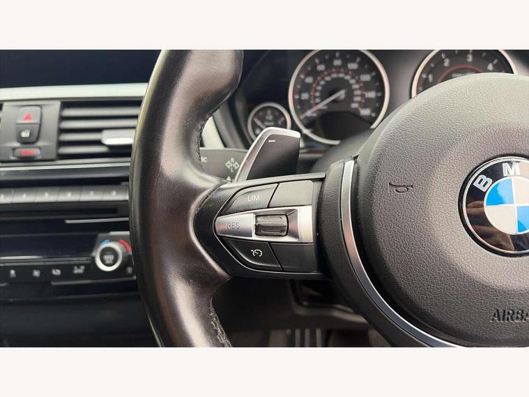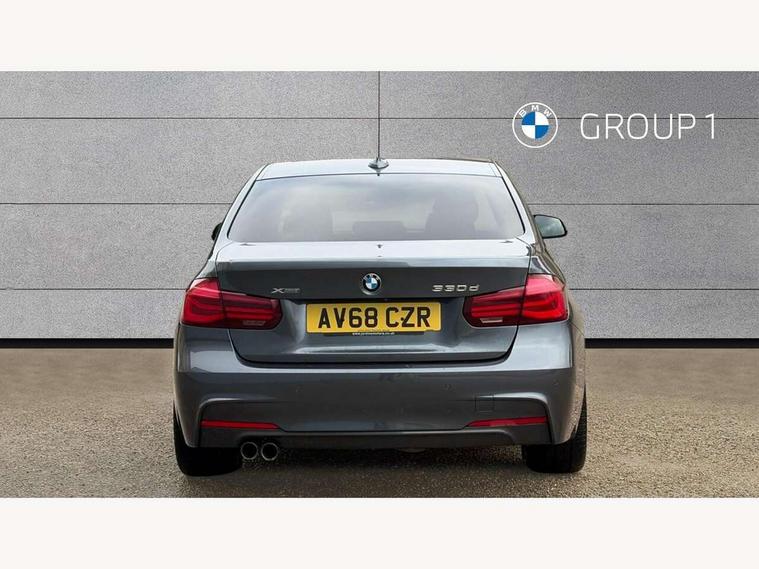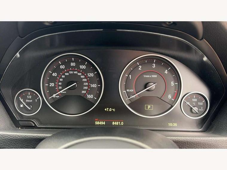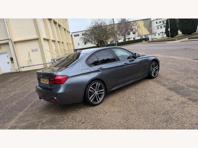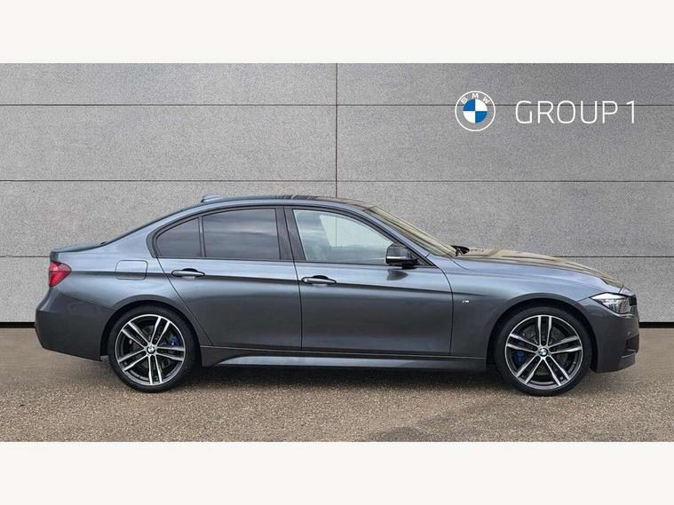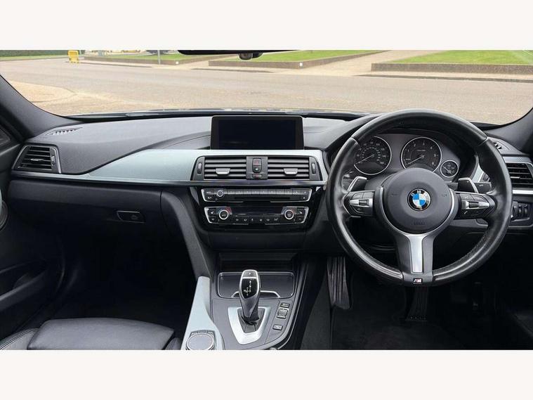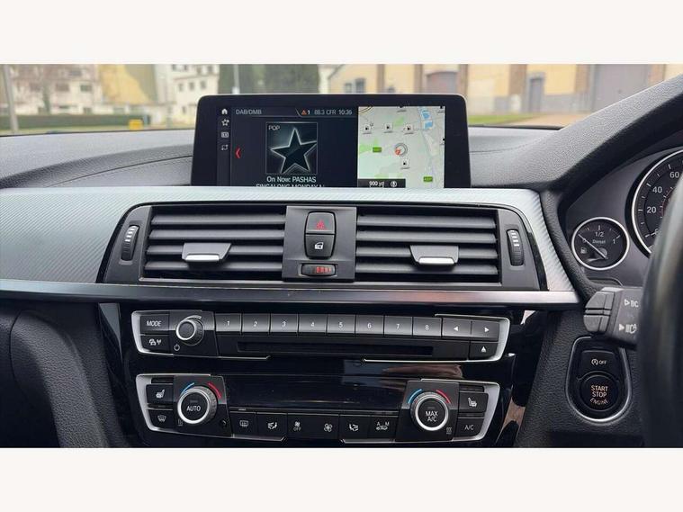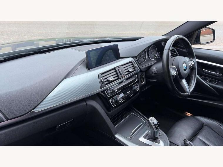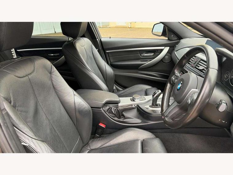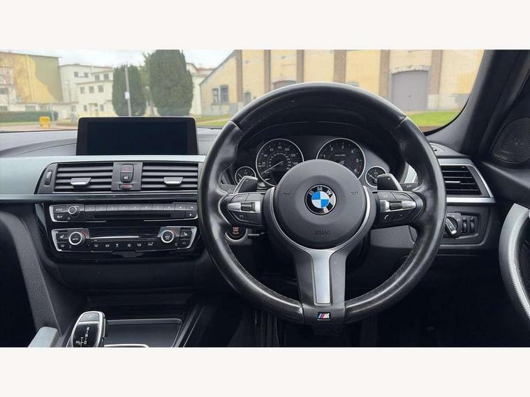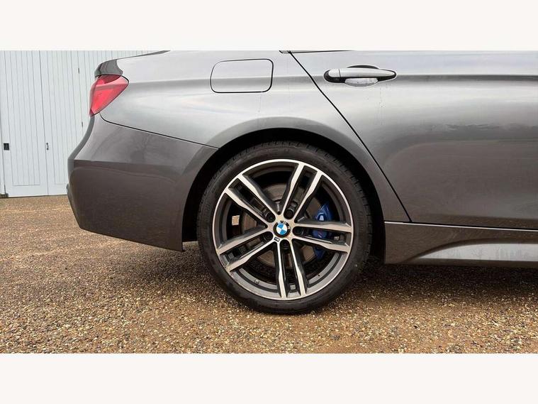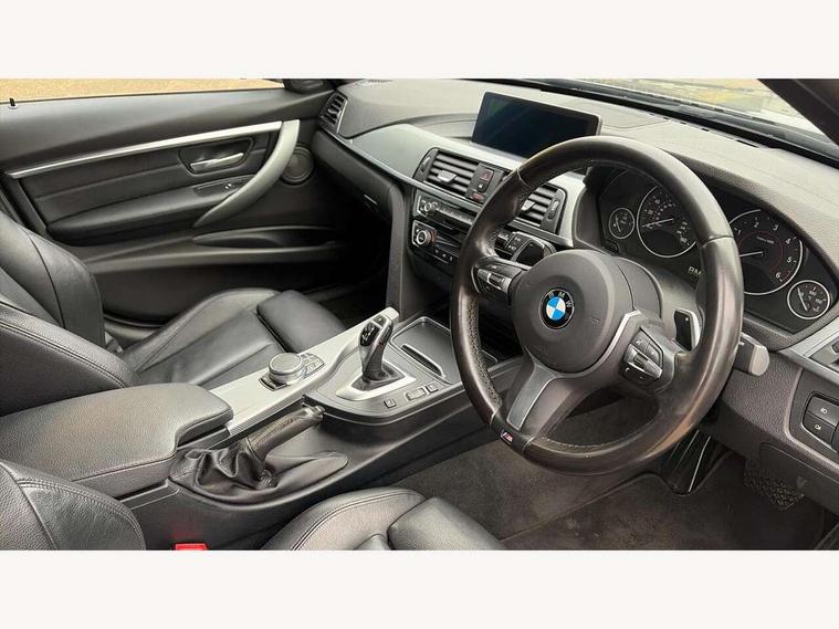 Automatic start/stop system, Average speed gauge, BMW iDrive controller on centre console, BMW Online services, BMW remote services, BMW Teleservices, Brake force display, Brake pad wear indicator in front and rear, Check Control warning system for monitoring of lights and door/luggage compartment open warning, Controller and Control Display+6.5" monitor, Digital clock, Door/boot open warning light, Front/rear park distance control, Instrument cluster with speedometer with mph readout, tachometer, fuel gauge and oil temperature gauge, Lights on warning, M Sport instrument cluster, Odometer, Oil sensor for level and grade, On board computer, On board diagnostics, Operation warning of all exterior lights, Optimum shift indicator, Outside temperature display, Pesonal profile, Predictive gearshift using navigation data and automatic transmission, Real time traffic information, Run flat tyre indicator, Service interval indicator, Trip computer, Battery cut-out switch, Diesel particulate filter, Drive Performance Control, Electronic differential lock, Incorrect fuelling protection, Multi-link rear suspension, Sport automatic transmission with steering-wheel mounted gearshift paddles and launch control, BMW professional radio/CD/MP3, CD player, DAB Digital radio, Harman/Kardon loud speaker system, 2 speed adjustable intermittent wipers with wash/wipe function, Active air flap radiator grille, Auto dimming rear view mirror, Automatic headlight beam throw control, Body colour bumpers, Body colour door handles, Body colour roof mouldings, Clear indicator lenses, Dark chrome exhaust tailpipe, Dark headlamp surround, Darkened rear light clusters, Direction indicator, side repeaters, integrated in exterior mirrors, Door sill finisher with M designation, Dynamic brake lights, Electric front and rear windows with one touch/convenient open/close function, Front and rear bumper system with replaceable deformation elements, Green tinted heat insulating glass, Heated rear window with automatic switch off, Heated windscreen washer jets, High beam assistant, High gloss black air inlets, High gloss black finish B pillar, High gloss black rear bumper insert, High gloss shadow line, High level third brake light, LED fog lights, LED rear lights, LED welcome home lights, M aerodynamic body styling, Matt black exterior trim, Rain sensor + automatic driving lights control, Shark fin roof aerial, Sun protection glass, Visible VIN plate, 12V sockets in front centre console and passenger footwell, 3 rear seat head restraints, 4 foldable grab handles - rear with clothes hook, 4 lashing points on luggage floor, 40:20:40 split folding rear bench seat, Anthracite headlining, Automatic interior light soft on/soft off system, Dual zone automatic air conditioning, Folding front centre armrest + storage, Front and rear door armrests, Front and rear velour floor mats, Front door storage bins with bottle holder, Front sports seats with electric side bolster adjustment, Glovebox light, Glovebox opener with chrome spider, Height adjustable front headrests, Indirect front interior illumination - soft-light function, Leather gear knob, Leather gear selector lever handle, Leather handbrake lever, Luggage compartment lighting, Reach + rake adjustable steering column, Rear centre armrest with 2 cupholders, Rear child seat isofix attachment with passenger airbag deactivation, Storage compartment in rear centre console, front and rear door trims and under luggage compartment, Sunvisors with illuminated vanity mirrors and ticket pocket, Toolkit located in luggage compartment, Two front cup holders with a sliding lid, Extended lighting package - 3 Series, Extended storage pack - 3 Series Saloon, High gloss shadow line pack - 3 Series, 3 point seatbelts on all seats (2 front, 3 rear), front pyrotechnic belt tensioners and belt force limiters, rear coded belt buckles, ABS, Automatic Stability Control (ASC), BMW emergency call, Brake drying, Brake energy regeneration, Braking pre-tensioning, Cornering brake control (CBC), Crash sensor, Driver and front passenger front and side airbags with passenger deactivation and ITS front and rear head airbags, DSC+, Dynamic brake control, Dynamic Traction Control - DTC, Hill start assist, M Sport braking system, Rear child proof door locks, Seatbelt security check for driver seat, Side impact protection, Twin horns, Tyre pressure monitor, Ventilated front and rear disc brakes, Warning triangle and first aid kit, Alarm system (Thatcham 1) with remote control and electronic engine immobiliser, Automatic drive away locking facility, Central locking switch for all doors, fuel filler cap and luggage compartment, Remote control including integrated key with blue insert, Start/stop button with Comfort Go keyless engine start and auto Start/stop deactivation button, Air-conditioning and radio control panel with Chrome highlight, 19" M double spoke alloy wheels style in bicolour orbit grey - style 704M, Low rolling resistance tyres, Run-flat tyres,