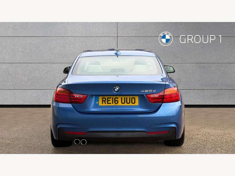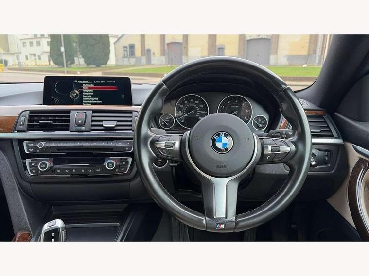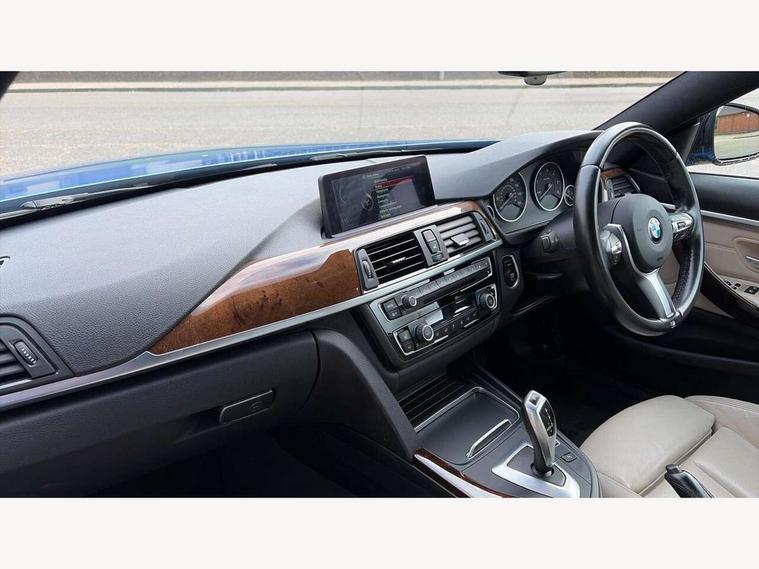 BMW Online services, BMW Teleservices, Brake pad wear indicator warning light, Check control system, Door/boot open warning, Front/rear Parking distance control, Lights on warning, Oil temperature gauge, On board computer, Outside temperature display, Run flat indicator, Service interval indicator, Stop/start button, Diesel particulate filter, Drive Performance Control, Auxiliary point for auxiliary devices, Bluetooth audio streaming, BMW professional radio/CD/MP3, DAB Digital radio, 2 speed adjustable intermittent wipers with wash/wipe function, Auto dimming rear view mirror, Body colour bumpers, Body colour door handles, Body colour door mirrors, Body colour roof mouldings, Chrome exhaust tailpipe, Chrome kidney grille with chrome vertical slats, Daytime running lights, Door sill finishers, Electric adjustable heated door mirrors, Electric front windows/one touch facility, Follow me home headlights, Front fog lights, Headlight washers, Heat insulating tinted glass, Heated windscreen washer jets, High gloss shadow line, M aerodynamic bodystyling, Rain sensor including auto headlights activation, Windscreen with grey shadeband, 12V sockets in front centre console and passenger footwell, 3 spoke leather M sport multifunction sports steering wheel, 4 grab handles, Anthracite headlining, Anthracite Velour floor mats, Dual zone climate control, Folding storage compartment with glasses holder + coin tray, Front centre armrest with storage compartment, Front cupholders x 2, Front head restraints, Front sports seats with electric side bolster adjustment, Front/rear armrests within door panels, Full black panel display, Glovebox with lid, Heated front seats, Integrated rear head restraints, ISOFIX child seat preparation+airbag deactivation, Lashing eyelets in boot, Leather gearknob, Leather handbrake grip, Reach + rake adjustable steering column, Rear centre armrest, Storage compartment in rear centre console, Sunvisors with vanity mirrors, Toolkit located in luggage compartment, Extended lights package - 4 Series, Media pack - Professional - 4 Series, 3 point seatbelts on all seats, ABS/EBD, Automatic Stability Control (ASC), BMW emergency call, Cornering brake control (CBC), Crash Sensor - activates hazard/interior lighting + unlocks doors, Driver seatbelt warning indicator, Driver/Front Passenger airbags, DSC+, Dynamic brake control, Dynamic Traction Control - DTC, Front seatbelt force limiters, Front seatbelt pretensioner, Front side airbags, Hill start assist, ITS head airbags for front/rear, Tyre pressure monitor, Warning triangle and first aid kit, Drive away door locking, Electronic immobiliser, Remote central locking, Remote control Thatcham category 1 alarm,