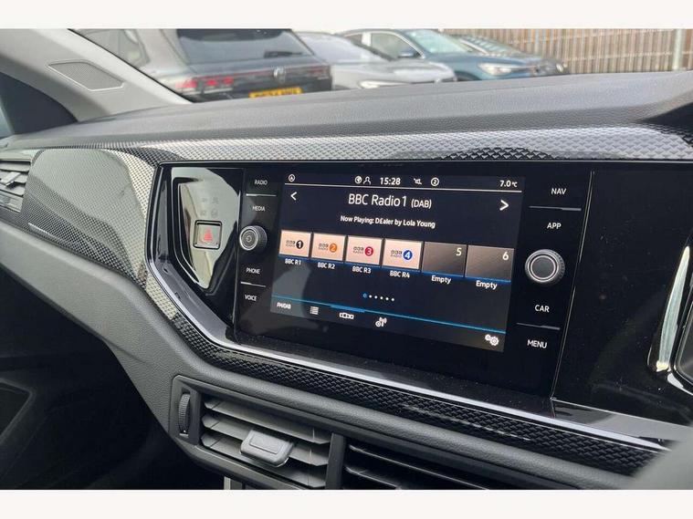Advanced driver attention and drowsiness monitor, Bluetooth mobile phone interface, Dynamic road sign display, Emergency call service, Mobile phone preparation with inductive charging function, Multifunction front facing camera for distance control, Power assisted speed sensitive steering, Predictive adaptive cruise control without follow-to-stop and speed limiter, Preparation for navigation system with media and internet package, Preparation for We connect and We connect plus, Rear view camera, Speedo and rev counter, electronic odometer, trip, service interval display and exterior temperature gauge, Standard rear axle, Travel Assist - Lane keeping system and traffic jam assist, Travel assist including emergency assist, Trip computer, Warning signal and warning light for front and rear seatbelts not fastened, Washer fluid level indicator, Wireless app connect, Front wheel drive, Rear shock absorpion, Start-stop system with battery regeneration (recuperation - energy recovery during braking), DAB Digital radio, Diversity antenna for FM reception, Automatic dimming interior rear view mirror, Automatic headlight control with LED separate daytime running lights with coming/leaving home function, Body colour bumpers with chrome inserts, Body colour door handles, Body colour door mirrors, Electric front windows, Engine badge deletion, Headlight range adjustment, Heat insulating and laminated safety glass windshield, LED Headlights, LED rear combination lamps, Power folding adjustable/heated exterior mirrors and front passenger exterior mirror lowering function, Rain sensor, Rear electric windows, Rear fog light, Rear side wing doors, Rear tinted glass from B-pillar backwards approx 65% tinted, Rear windscreen washer and wiper with interval delay, Third brake light, 12V power socket in centre console, 2 front and 2 rear reading lights with switch off delay and dimmer, 2 USB-C ports in the front, 2 USB-C charging sockets on the center console in the rear, 3 rear head restraints, 60/40 split folding rear seat and rear seat bench not split, Carpet mats, front and rear, Ceramique roof lining, Chrome plated radiator grille inserts, air vent surrounds and light switch surrounds, Door and side trim panel, Driver and front passenger seat height adjustment, Driver/passenger sunvisors with illuminated vanity mirrors, Front centre armrest, Front seat backrest storage pockets, Front standard seats, Handbrake lever handle in leather, Hartley/Thomas cloth upholstery, Headliner in recycled material, Isofix child seat preparation easy-fit (for two outer rear seats, and front passenger seat) compatible with I-size, Leather trimmed gear knob, Luggage compartment cover, Luggage compartment lighting, Removable luggage compartment floor, Single front passenger seat, Standard climatic zones, Standard pedal cluster, Three spoke leather wrapped multifunction steering wheel with shifting paddles, Light and vision pack - Polo, 3 point height adj front seatbelts + pretensioners, 3 point seat belt for centre rear seat, 3 point seatbelts, outer rear with ECE lable, ABS, Driver and front passenger airbag with front passenger airbag deactivation, Drivers and front passengers safety optimised head restraints, ESC (Electronic stability control) + EDL (Electronic Differntial lock) and ASR (Traction control), Extended and predictive pedestrian/ cyclist protection, Front assist with autonomous emergency braking (for Adaptive Cruise Control ACC up to 130 mph), Front curtain and side airbags with center airbag, Front disc brakes, Hill hold control, Manual child lock in rear doors, Rear drum brakes, Single tone horn, Tyre pressure loss indicator, Alarm with interior protection, Anti-theft alarm system with interior monitoring, backup horn, and towing protection, Anti-theft wheel bolts, Electronic engine immobiliser, Lava stone black gloss/matt decorative inserts in dash and front door panels, 16" Torsby alloy wheels, Low rolling resistance tyres,