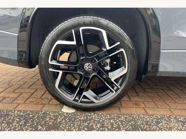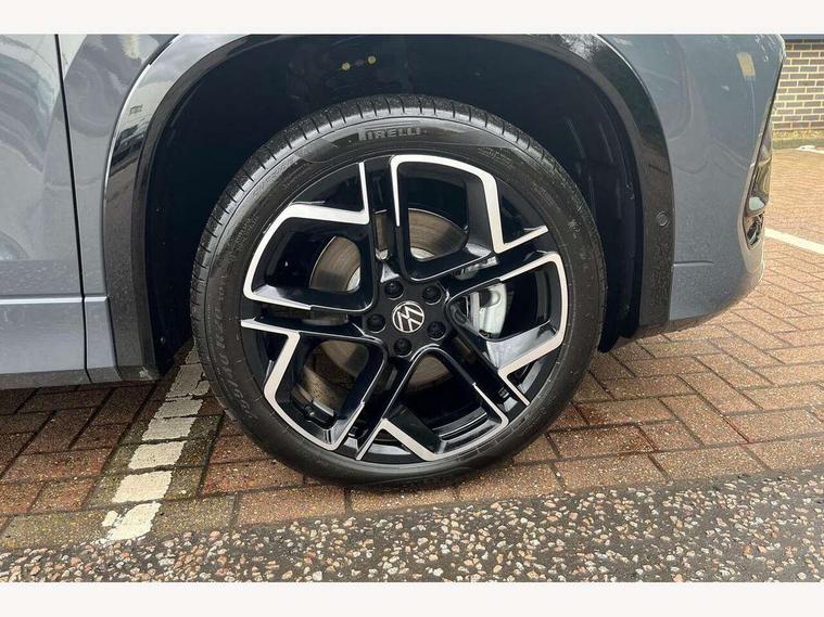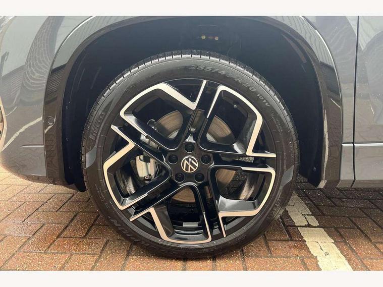 Adaptive cruise control (ACC), Digital Cockpit Pro - 10.25" high resolution dash display screen with customisable menus and information, Driver alert system, Driver attention monitoring system, Driving profile selection, Dynamic road sign display, E-Sim card for online connectivity, Easy Open and Close Electric tailgate with virtual pedal activation, eCall emergency call system, IDA voice assistance with ChatGPT, Lane change system, Side assist, Rear traffic alert and Exit warning system, Lane keeping system, Multifunction front facing camera, Navigation system, Oncoming vehicle braking when turning including swerve support, Park assist plus with park distance control, Power assisted steering with speed sensitive, Sports steering system, Start/stop system with regenerative braking, Voice activation spoken voice commands for telephone and navigation system, Warning signal and warning light for front and rear seatbelts not fastened, Wireless App-Connect, Front shock absorption G01, Front wheel drive, 12.9" infotainment display, Digital radio reception (DAB), Diversity antenna for FM reception, Air intake with Chrome trim, Auto dimming interior rear view mirror, Automatic headlight control system, Body colour door handles, Chrome moldings on the side windows, Coming/leaving home lighting function, Cornering light and poor weather light, Dynamic headlight range control with dynamic cornering light, Exterior mirrors convex on the left and aspherical on the right, Heat insulating glass in side and rear windows, High Beam Assist, automatic sensing for switching between dipped and main beam, Illuminated Volkswagen logo in front and rear, Laminated safety glass windshield, heat insulating, LED 3rd brake light, LED headlamps, LED separate signature day time running light, Puddle lights, Rain sensor windscreen wipers, Rear combination lamps with special signal pattern, Rear fog light on one side, reversing light on both sides, Rear side wing doors, Rear wiper, Reverse activated passenger's door mirror, Sound insulating laminated safety glass from B-pillar backwards 90% tinted, Surround lighting with welcome light, Volkswagen logo in front, illuminated lighting animation with wake up/goodbye scenario and illuminated door handles, 12V outlet in center console rear and in luggage compartment, 12V socket in centre console, 2 USB-C ports in the front, 2 USB-C charging sockets on the centre console in rear, charging capacity up to 45 W, 230V socket in luggage compartment, 3 rear headrests, 3 rear seat bench in 2nd row, backrest split folding with centre armrest and 2 seats in 3rd row of seats, 3 zone air care climatronic with rear air conditioning control panel, 30 colours options interior ambient lighting, Art velours cloth upholstery, Black roof lining, Brushed stainless steel pedals, Carpet mats, front and rear, Centre console with illuminated storage compartment with sliding cover and two drinks holders, Chrome elements on the mirror switch and power window switches and door pulls, Door and side trim panel insert in Art velour, Drivers seat with manual adjustment of seat travel and height and backrest angle with thigh support longitudinally sliding, Flat luggage compartment floor, Front centre armrest, Front massage seats, Front scuff plates in aluminium, Inductive smartphone charging, ISOFIX anchors for child seats on outer rear seats and front passenger seat compatible with i-Size, Leather wrapped multifunction heated steering wheel with paddle shift, Manual height adjustable front passenger seat, Mechanical rear seat release, Power adjustable lumbar support in front, Safety optimised front integrated head restraints, Single front passenger seat, Sports comfort seats in front, Sun visors with illuminated vanity mirrors, Touch control steering wheel, 3 Point seat belts in front with pretensioners, 3 point seatbelts in outer rear with ECE label, Autonomous emergency braking front assist with pedestrian and cyclist monitoring, Driver and front passenger airbag with front passenger airbag deactivation, Electronic parking brake with auto hold, First aid kit with warning triangle and safety vest, Front and rear curtain airbags, Front and rear side airbags, Front centre airbag, Hill start assist, Manual rear child locks, Proactive passenger protection system, Two tone horn, Tyre pressure monitoring system, Alarm with interior protection, Central locking system keyless entry, Decorative material set R-Line, Interior door handle in matte chrome,