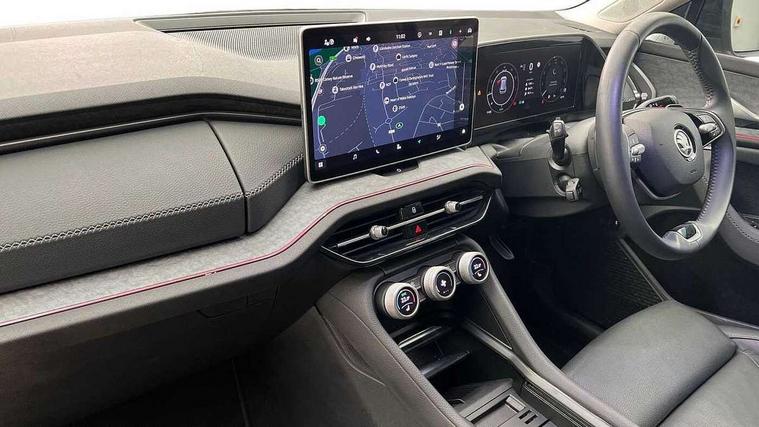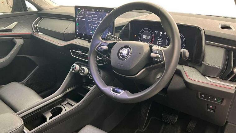 13" satellite navigation touchscreen display, Blind spot detection with door exit warning, Bluetooth system, ChatGPT functionality, Drive mode selector, Driver alert with fatigue sensor, Driver drowsiness alert system, Dry display cleaner, e call+, Front cross traffic assist, Lane assist, PAS, Rear traffic assist, Tailgate unlocking from outside, Traffic sign recognition, USB C Port x 2 in front centre console, Virtual Cockpit - 10.25" digital display, Voice control system, Wireless charging for two smartphones (15W) with cooling function, Wireless SmartLink for Apple CarPlay and Android Auto, Stop/start function, 2x USB-C in the rear, DAB Digital radio, Aero front windscreen wipers with intermittent function, Auto dimming rear view mirror, AWL (all weather lighting) and all weather light with cornering function, Black wheel arch surrounds, Body colour bumpers, Body colour door mirrors and handles, Cornering light and poor weather light, Electric folding /adjustable/separted heated/folding door mirrors, auto dimming with boarding sports and memory function, Electric front and rear windows, Exterior black decorative trims, Heat insulating glass in windshield, Heated rear window, Ice scraper in fuel tank cap, Invisible tailpipe, LED daytime running lights, LED rear fog light, LED third brake light in rear spoiler, Light assistant with automatic headlight control and coming home feature, Logo projection in door mirrors, Privacy glass, Rear side wing doors, Rear spoiler, Rear window wiper, Red decorative strip between rear LED lights, Safety reflectors on front and rear doors, Window control switches with black trim, Windscreen wipers with rain sensor, Without engine designation, 1.5l bottle holder points in all door, 12V socket in boot, 1x centre rear reading light, 2 seat bench in 3rd row, 3 configurable smart dials with 32mm coloured display, 3 seat bench in 2nd row, 4 foldable roof handles with rear coat hooks, Ambient interior lighting - Dashboard, front-door stowage compartments, front and rear door panels and footwell lighting, Automatic gear selector on steering wheel, Chrome interior door handles, Driver/front passenger reading lights, Fabric headlining, Fixed bench 40:60:40 split folding backrests, Front and rear floor mats, Front centre armrest with jumbo box storage compartment, cup holder and 12V socket, Front courtesy lights, Height adjustable front headrests, Isofix child seat fittings in outer middle row rear seats and front passenger with top tether, Manually adjustable steering column, Pollen filter, Rear centre armrest with cupholders, Rear seat boot backrest release, Retractable luggage compartment cover, Single front passenger seat, Sliding trunk cover, Small Bags on the inner sides of the front backrests, Storage pocket including mobile phone pockets on the backs of the front seats, Sunvisors with illuminated vanity mirrors, Three rear height adjustable headrests, Ticket holder on A Pillar, Tri zone climate control, Umbrella in door panel x1 made from sustainable materials, Upper and lower glovebox with card holder and coin compartment, USB C port by rear view mirror for charging only (15W), Exterior styling pack - Kodiaq, Auto door release and activation of warning lights in the event of an accident, Driver and front passenger airbag with knee airbag and front passenger airbag deactivation, Electric child locks, Electronic parking brake, ESC (incl. ABS+EMD+MSR+ASR+EDL+HBA+DSR+RBS+ESBS+MCB+TSA+XDS), Front assist with braking reaction to vehicles, pedestrians and cyclists, Front disc brakes, Fuel cut off safety device, Height adjustable front 3 point seatbelts + pretensioners, Hill hold control, Junction assist with automatic emergency braking, Rear disc brakes, Safety vest holder in door, Seat belt reminder for all seats, Three point rear seat belts, Two tone horn, Tyre pressure monitor, Anti-theft wheel bolts, Immobiliser, Remote central locking with 2 keys, Breakdown kit,