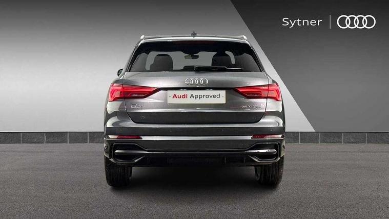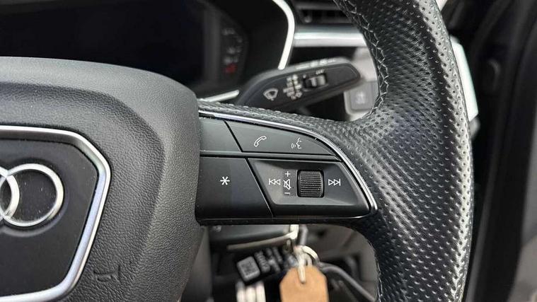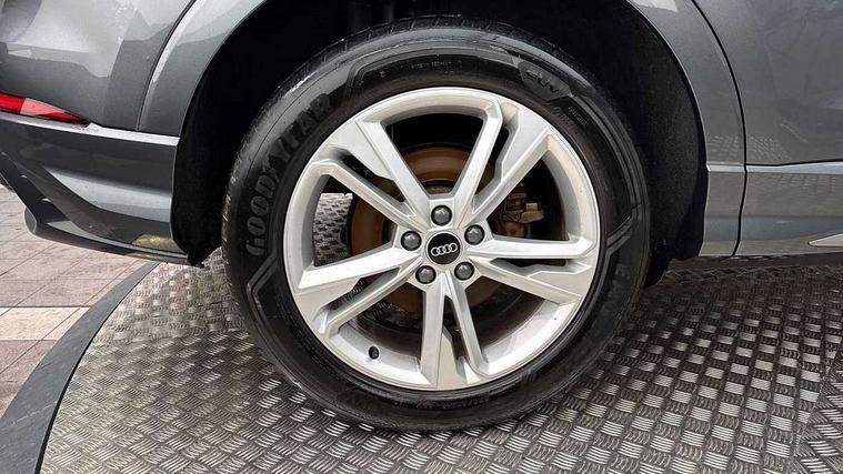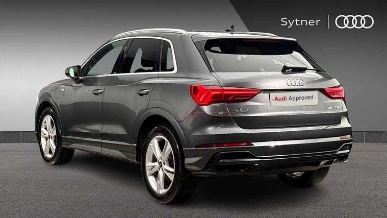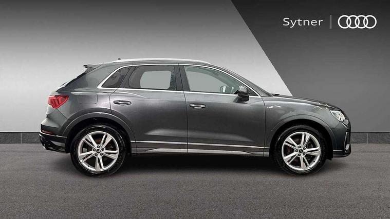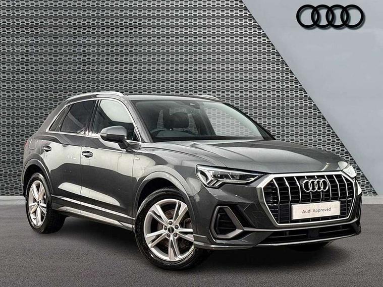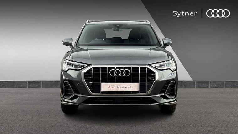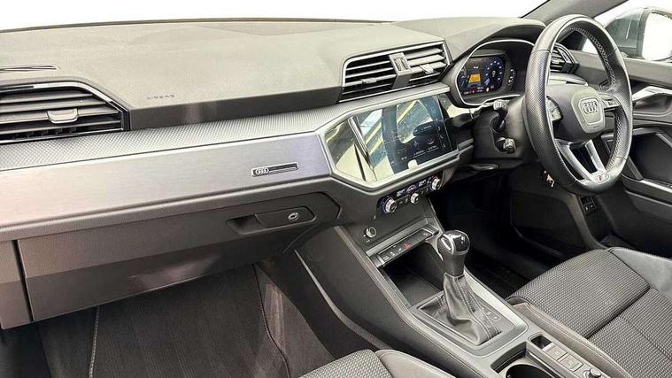Amazon alexa Integration, Audi connect safety and service, Audi drive select, Audi lane departure warning, Audi Virtual Cockpit - 10.25" display, Bluetooth interface, Camera based traffic sign recognition, Legal emergency call, MMI Navigation Plus with high resolution 10.1 inch touchscreen colour display, Phonebox light with wireless charging, Power operated tailgate, Progressive steering, Reversing camera, Service interval indicator, Smartphone interface includes wireless Apple carplay/Android Auto, Start stop system with recuperation, Voice control system with natural language interaction, 3 pin 10 amp domestic charging cable, 3.6 kw On-board charger, Standard suspension, Type 2 mode 3 32 amp charging cable, Type 2 socket for AC charging, 2 USB-C ports with charge and data functions, DAB digital radio module, SONOS premium sound system, Acoustic windscreen, Aluminium roof rails, Aluminium window trim, Anthracite black radiator grille, Auto dimming door mirrors, Auto dimming frameless rear view mirror, Body colour front spoiler blade, Electrically folding, adjustable and heated door mirrors with integrated LED side indicators and kerb view function for passenger side, Front and rear electric windows, Front fog lights, Front side air inlets in matt platinum grey, Grille vertical bars in aluminium silver/Matt, High gloss black finish B and C pillars, LED Dynamic rear indicators, LED headlights with LED daytime running lights, LED rear lights, LED third brake light, Privacy glass dark tinted rear and rear-side windows (from B-pillar backwards), Rain and light sensors, Rear diffuser grille in grained matt black, Rear diffuser strip in matt anthracite black, Rear side wing doors, Rear wiper, S line badges on front wings, S line front and rear bumpers and side skirts in contrasting Manhattan grey paint finish, Side skirt insert in matt Platinium grey, Variable front intermittent wipers, 12V socket in rear centre console, 3 seat bench in 2nd row, 3 spoke leather multifunction steering wheel features S badging and grips in perforated leather with contrast stitching, 40:20:40 folding with manual adjustment for 60:40 forwards/backwards position and backrest angle, Adjustable rear seat bench/backrest with centre armrest and cupholder, Black cloth headlining, Dual zone electronic climate control, Electric lumbar support, Front and rear black floor mats with contrast stitching in rock grey, Front and rear headrests, Front centre armrest, Heated front seats, Height and reach adjustable steering wheel, Illuminated door sill trims with S logo, ISOFIX child seat mounting for front passenger with airbag deactivation and outer rear seat including top tether attachment point for outer rear seats, Manual front seats with height adjustment, Perforated leather gearknob, Single front passenger seat, Stainless steel luggage compartment sill finisher, Stainless steel pedals, Twin leather upholstery with front sport seats + S embossing, Non smoking pack - Q3, 3x3 point rear seatbelts, 6 airbags - Driver, front passenger, curtain and side windows, Audi pre-sense front with pedestrain and cyclist recognition, Electrically operated child locks on rear doors, Electromechanical parking brake, Electronic stabilisation control including ABS, ASR and EDL, Front seatbelt reminder, Hill descent control, Hill hold assist, Pre sense basic, Seatbelt monitoring, Tyre pressure warning, Warning triangle and first aid kit, Anti theft alarm, Anti theft wheel bolts, Immobiliser, Remote central locking, Aluminium look interior elements, Dark matt brushed aluminium inlay, Detail dashboard around MMI touch colour display in glass look, black with surround in aluminium look, Leatherette door armrest, Tool kit, Tyre repair kit,