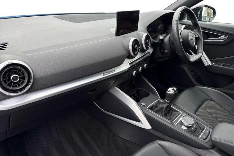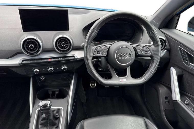Audi connect navigation and infotainment includes innovative services, Audi connect remote and control connects your vehicle to your smartphone, Audi drive select, Audi smartphone interface, Audi virtual cockpit, Automatic start/stop system with recuperation, Bluetooth interface includes bluetooth audio streaming, Cruise control, E-call, MMI navigation plus with MMI touch, Power operated tailgate, Progressive steering, Rear parking sensors, 2 x SDXC card reader, 6 passive loudspeakers, DAB Digital radio, Auto dimming rear view mirror, Black window trims, Bumper in full body colour paint finish, Electrically adjustable, folding, auto dimming and heated door mirrors with integrated LED side indicators, Front windscreen with grey tinted sunband, LED daytime running lights, LED headlights with LED rear lights, LED third brake light, Privacy glass - dark tinted rear and rear side windows from B-pillar backwards, Rear side wing doors, Rear wiper, Variable front intermittent wipers, Wheel arch trims in manhattan grey, 12V socket in front, 3 seat bench in 2nd row, 3 spoke flat bottomed multi-function leather sport steering wheel, 4-way electric lumbar support for front seats including seat height adjustment for both front seat, 60/40 split folding rear seat bench, Black cloth headlining, Front and rear head restraints, Front centre armrest, Front/rear floor mats, Height/reach adjust steering wheel, Illuminated door sill trims with S logo, ISOFIX child seat mounting in front passenger and rear outer seats, Manual air conditioning, Single front passenger seat, Stainless steel pedals, Black styling pack - Q2, 3x3 point rear seatbelts, 6 airbags - Front, curtain and front side airbags, Electromechanical parking brake, Electronic stabilisation control including ABS, ASR and EDL, Front passenger airbag deactivation, Hill hold assist, Pre-sense front with pedestrian recognition, Seatbelt monitoring, Tyre pressure warning light, Warning triangle and first aid kit, Anti theft alarm, Anti theft wheel bolts, Electronically operated child locks, Remote central door locking, Aluminium interior element, Matt brushed aluminium trim inlays, Tool kit,