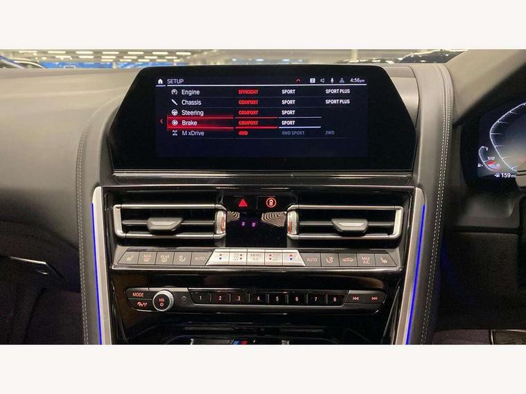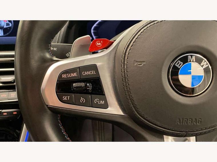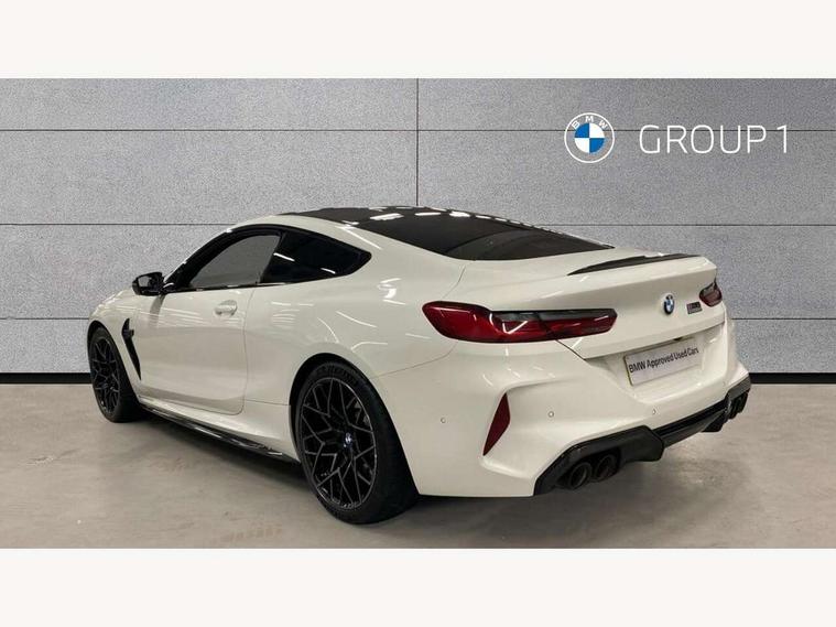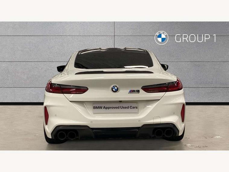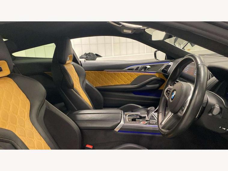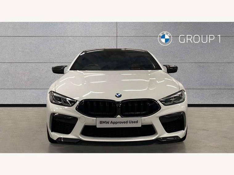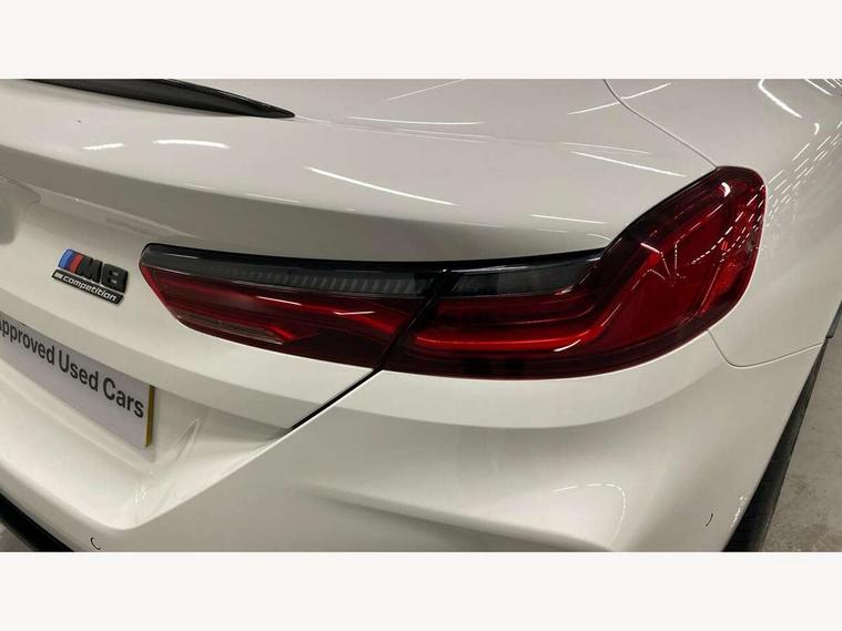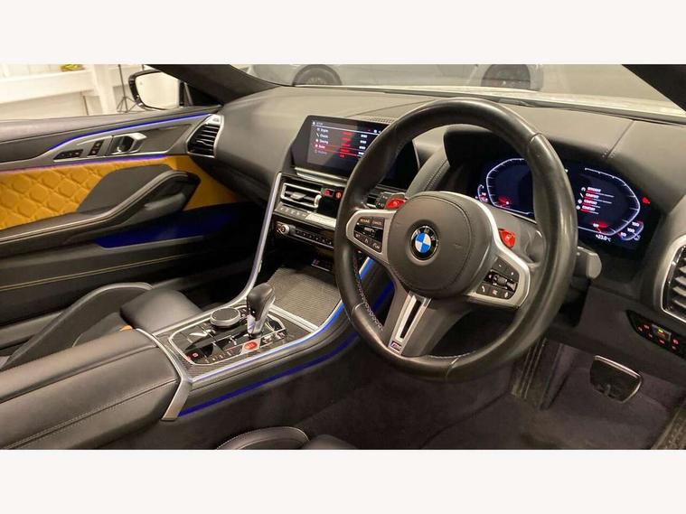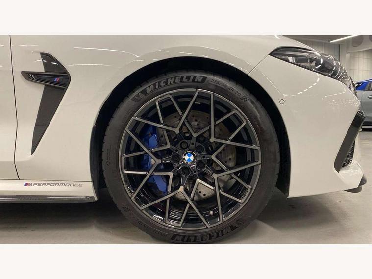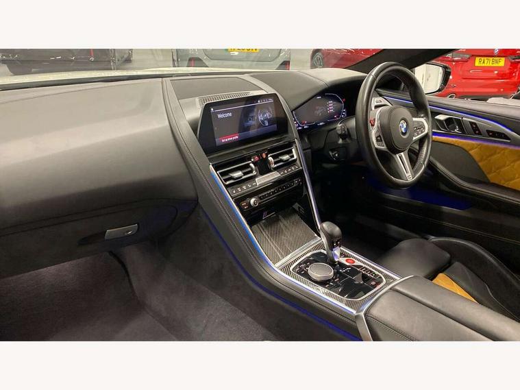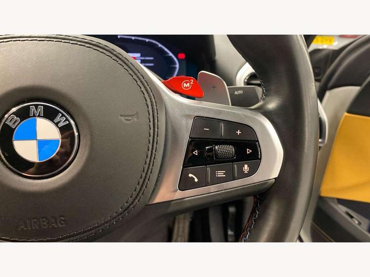 Bluetooth Hands free facility with USB audio interface and Voice Control, BMW ConnectedDrive Professional, BMW Display key + standard integrated key, BMW Drive recorder, BMW legal emergency call, BMW Live Cockpit Professional sat nav system with intelligent personal assistant, BMW Teleservices, Brake pad wear indicator warning light, Condition based service, Cruise control with brake assist, Drive experience control with Sport, Comfort, Eco Pro and Adaptive modes, Electric boot lid - electrically opening/closing rear tailgate, Enhanced bluetooth telephony with wireless charging, Front/rear park distance control (PDC), Head up M display, iDrive touch controller with shortcut buttons, Instrument and upper door panel in trimmed leather, Integrated owner's handbook, M servotronic, Oil sensor for level and grade, Parking assistant plus with 360 degree surround view camera system and remote 3D view, PAS, Rear view camera, Run flat indicator, Service interval indicator, Speed limiting function, Start/stop button in red, Wifi hotspot preparation, Adaptive M suspension, Double wishbone front axle, Dynamic Damper Control, M Sport differential, M Twin power turbo 8 cylinder, Petrol Particulate Filter, Steptronic sport transmission with eight speed automatic and gearshift paddle switches on the steering wheel, Valve controlled exhaust system, xDrive (permanent all-wheel drive, variable torque distribution, including DSC to control traction interventions), DAB Tuner enables digital radio reception, Favourite buttons, Black chrome exhaust tailpipes, BMW Individual high-gloss shadow line with extended contents includes kidney frame, clasp and air breather in black chrome, BMW Individual high-gloss shadow line with window frame and mirror base in black high gloss, Body colour bumpers, Carbon core - innovative lightweight construction with highly rigid and light carbon elements, Door handle illumination, Dynamic brake lights, Electric adjustable/heated/folding door mirrors, Electric front windows, Follow me home headlight function, Frameless interior mirror, Front and rear bumper system with replaceable deformation elements, Heated windscreen washer jets, High beam assistant, High gloss black exterior trim, High gloss black kidney grille, LED rear lights, M carbon roof, M designation in kidney, in side strakes, on right of tailgate and on door sill finisher, M Sport exhaust system, Model logo on right tailgate, Rain sensor with automatic headlight activation, Soft close automatic (SCA) for doors, Thermally insulated windscreen, Third LED technology brake light in rear window, Welcome lights in interior and door handle area, 2 X front 12v power sockets, 4 way electrically adjustable lumbar support for driver and front passenger seats, Automatic air conditioning with 2-zone control, Dynamic ambient interior lighting, Electric front seat adjustment with driver memory, Entry lights on doors, Front armrest integrated in door trim with centre console includes storage compartment, Front cupholders x 2, Front reading lights, Lockable glove compartment with light, M door sill finishers with illuminated BMW M8 designation, M leather steering wheel, M Pedals, M Sport seats, Multi function controls for M leather steering wheel, Multifunctional sport seats for driver and front passenger, Rear headrests, Split folding rear seat with 50:50 configuration, Steering column with adjustable height and length and activation via control on the steering column, Sunvisors with front ticket pocket and illuminated mirrors, Velour floormats, Connected package professional - M8, 2 x 3-point rear seatbelts, ABS/EBD, Active front seat headrests, Active protection, Child seat ISOFIX attachment rear outer seats, Compound structure brake discs, Crash sensor activating central locking release, hazard warning lights, fuel cut off, interior lighting, safety battery terminal clamp and airbags, Driver and front passenger knee airbag, Driver/Front Passenger airbags, Driver/front passenger side airbags, Driver/passenger seat occupancy sensor, DSC - Dynamic Stability Control, Dynamic Traction Control - DTC, Electromechanical parking brake with automatic drive away release and auto hold function, Front three point with pyrotechnical belt latch tensioner seat belts, belt force limiter and belt stopper, Head airbags for first and second row seats, Integrated brake system with two selectable brake pedal characteristics, M Seatbelts with black seat belts with fine M stripes for all seats, Manual passenger airbag deactivation function, Side impact protection, Two tone horn, Tyre pressure indicator, Warning triangle and first aid kit, Centre lock switch, Closing system with central locking, Comfort access system, Keyless engine start, Locking wheel bolts, Thatcham 1 alarm system with remote control and engine immobiliser, Vehicle key with exclusive M designation, Tyre repair kit,