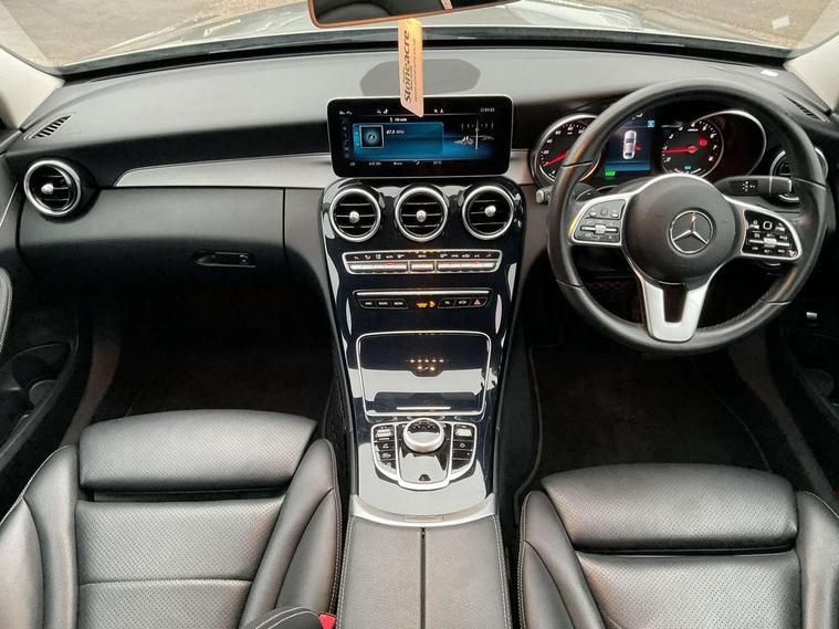10.25" display screen, Active park assist with parktronic system, Attention assist, Bluetooth system, Collision prevention assist plus, Cruise control with speedtronic variable speed limiter, DYNAMIC SELECT with a choice of driving modes (ECO, Comfort, Sport, Sport+ and Individual), Instrument cluster with display, Multi function trip computer, Multifunction colour display, Navigation system, Outside temperature gauge, Pre-wiring for SD navigation system, Remote boot release, Reversing camera, Service indicator (ASSYST PLUS), Speed sensitive steering, Petrol Particulate Filter, 2 USB ports in centre console, DAB Digital radio, Frontbass loudspeakers, Mercedes Audio 20 radio/single CD + telephone keypad, SD card slot, Steering wheel mounted audio controls, Adaptive brake lights, Aerial in rear window, Body coloured bumpers, Body coloured door mirrors, Electric windows one touch open/close, Electrically adjustable and heated door mirrors, Green tinted glass, Heated windscreen washers, LED daytime running lights, LED Headlights, LED Indicators, LED tail lights, LED third brake light, Radiator grille with integral star and 2 louvres in matt iridium silver with chrome trim, Rain sensor windscreen wipers, Side windows surround in polished aluminium, 2 cupholders in front centre console, 3 spoke leather multi function steering wheel with silver chrome trim, 40:20:40 split folding rear seats, Artico man-made leather upholstery, Auto Mercedes-Benz child seat recognition sensor, Black floor mats, Dual zone automatic climate control, Electric front seat height adjustment, Front and rear head restraints, Front centre armrest with storage compartment, Front door sills with Mercedes benz lettering, Gearshift paddles, Heated front seats, Illuminated glovebox, Rear top tether child seat ISOFIX attachment, Sports seats, Sunvisors with illuminated vanity mirrors, Lighting pack - C class, Mirror pack - C Class, Seat comfort pack - C Class, Stowage space pack - C Class, 3 rear 3 point seatbelts, ABS with Brake Assist, Active bonnet, Adaptive brake system, Black seat belts, Child proof door locks, Crash sensor, Drivers knee airbag, Drivers pelvis airbag, Dual stage driver/passenger airbags, Electronic parking brake, ESP with ASR, Front passenger seat occupancy sensor, Front side airbags, Hill start assist, Rear seatbelt warning indicator, Tyre pressure monitoring system, Warning triangle and first aid kit, Window airbags, Alarm system/interior protection/immobiliser, Chrome surround electric key, Remote central locking, Brushed aluminium trim, 17" 5 spoke aero alloy wheels in Silver, Tyre inflation kit,