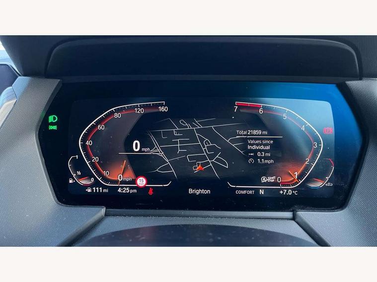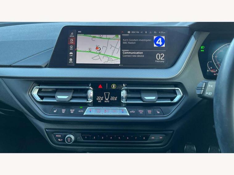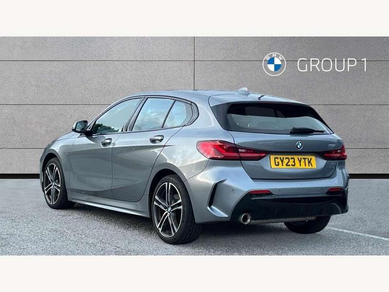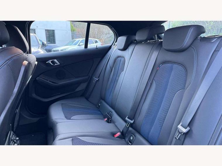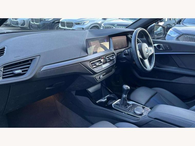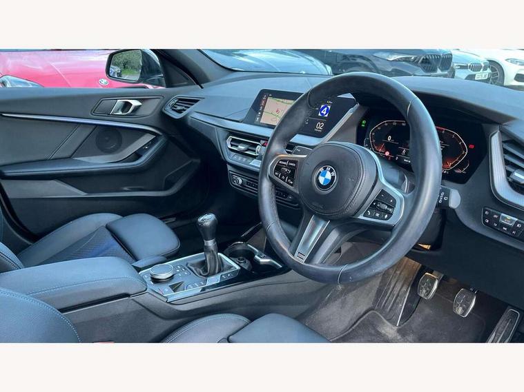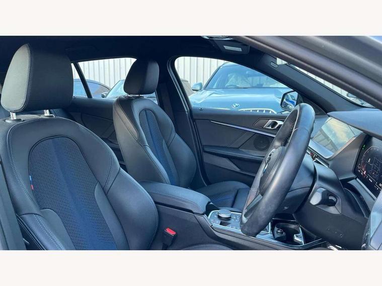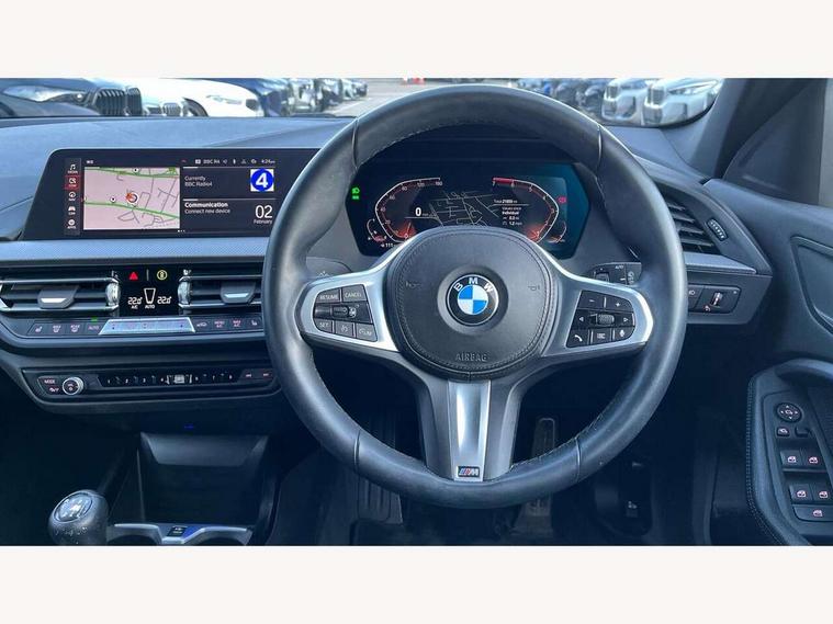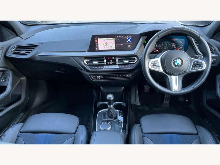Active guard plus, Attentiveness assist, BMW ConnectedDrive online services, BMW Teleservices, Check Control warning system for monitoring of lights and door/luggage compartment open warning, Cruise control with speed limiter, Eco pro mode, Front axle single joint with specific axle kinematics to minimise drive influences on steering + provide increased rigidity agile driving behaviour, Integrated owners handbook, Lane departure warning system, Oil sensor for level and grade, On board computer, Optimum shift indicator, Personal Profile, Pull away assistant, Rigidly mounted rear subframe - Multi link construction with separate spring / damper configuration and excellent driving characteristics, Speed limit Info including no-overtaking indicator, Aluminium lightweight construction, Anti roll bar front and rear, Balancer shaft, Double VANOS twin scroll turbocharging system, Drive Performance Control, Electronic differential lock, High precision injection, M sport suspension, Petrol Particulate Filter, Twin tube gas filled shock absorbers with degressive characteristic curve, VALVETRONIC engine management, DAB Digital radio, Auto dimming rear view mirror, Automatic headlight beam throw control, Automatic windscreen wipers and automatic headlight, Body colour door handles, Body colour mirror caps, Body colour roof trims, Chrome 'M' logo side designation, Chrome exhaust twin tailpipes round 90mm in left, Chrome kidney grille frame with Satin Aluminium struts, Direction indicator side lights in exterior mirrors, Electrically adjustable exterior mirror with mirror adjustment switch on drivers armrest and aspheric on driver side, convex on passenger side, Fading support, Folding side mirrors with auto dimming/folding wing mirrors with auto dimming, Follow me home headlights, Front and rear bumper system with replaceable deformation elements, Front and rear electric windows with open and close fingertip control, anti trap facility and comfort closing, Front door sill finishers in black plastic with M designation in metallic look, Green tinted heat protection glazing, High gloss shadowline window frame, Recess cover mirror frames and B/C pillar embelisher trim, High level third brake light, Integrated front windscreen with washer jets, LED daytime running lights, LED eyebrow turn indicators, LED front fog lights, Lightweight engineering, Matt black air guide grilles, Matt black wheel arch trim, Model designation on electric bootlid, Nearside reverse light in rear light cluster, Preparation for high beam assistant, Rear fog lights, Rear side wing doors, Rear window wiper, Shark fin antenna, Trailer stabilisation logic, Visible VIN plate, Welcome lighting, 12V power socket in front centre console with blanking plug, 3 rear seat head restraints, 3 seat bench in 2nd row, 3 spoke sports leather steering wheel in black leather with black stitching and decorative finisher in pearl chrome, specific M badge + leather knob, Anthracite headlining, Black boot net with lashing eyes, Cargo function on 2nd seat row, Child seat ISOFIX attachment for two outer rear seats and front passenger seat with anchorage points, Conditioned based service, Driver and front passenger backrest net on rear, Driver and front passenger seat heating, Driver side folding compartment in instrument panel, Folding rear clothes hook, Four grab handles integrated in roof lining, Front and rear door pockets with bottle holders, Front and rear side armrest integrated into door trim, Front armrest, Front sports seats, Gearshift lever with M designation, Glove compartment, Height adjustable front head restraints, Luggage compartment for bag hooks on left and right, foldable luggage compartment liner and four lashing eyelets, Manual adjust steering wheel, Multi-function controls for steering wheel, Single front passenger seat, Storage compartment in centre console, Storage compartment in luggage compartment, Stowage of the parcel shelf in luggage compartment trim, Sun visors with vanity mirrors and insert tab, Two front centre console cupholders, Two zone automatic air conditioning, Type C two USB ports in rear centre console, Velour floor mats, Additional interior lighting pack - 1 Series, BMW live cockpit professional pack- 1 Series, Connected pack professional - 1 Series, Interior lights pack - 1 Series, M Sport exterior styling aerodynamics pack - 1 Series, 2 tone horn, 3 point seatbelts on all seats, front pyrotechnic belt tensioners, stopper and belt force limiters, rear coded belt buckles, Airbags - Front driver/passenger, front and rear curtain head protection, front side, manual deactivation of front passenger airbag, Anti lock braking system (ABS) with brake assist, BMW emergency call, Brake drying, Braking readiness, Child proof locking system in rear door, City braking function, Comfort modes, Cornering brake control, Crash sensor activating of airbags, Unlocking doors, hazard warning lights, interior light, safety battery terminal, Driver and front passenger seat belt security check, Dynamic stability control + (DSC+), Dynamic Traction Control - DTC, Electrically operated hand brake, Front and rear disc brakes, Seatbelt warning, Side impact protection, Tyre pressure monitoring system, Warning triangle and first aid kit, Central locking switch for all doors, fuel filler cap and luggage compartment, Deadlocking function system to all doors, Drive away locking system on all doors and luggage compartment with de-activated in iDrive settings, Locking wheel bolts, Remote control with integrated key with High-gloss Black inlay and M designation and 1 button for open/ close lock, window, open luggage compartment, Start/stop button illuminated in centre console with keyless engine start and auto start stop deactivation button, Thatcham Cat.1 alarm and immobiliser, Wheel slip limitation close to the actuator (ARB), Contrast stitching on instrument panel, 18" Burnished M double spoke bi-colour alloy wheels finished in orbit grey - style 819M
