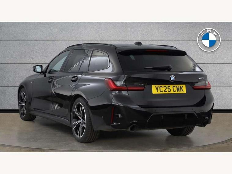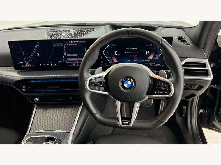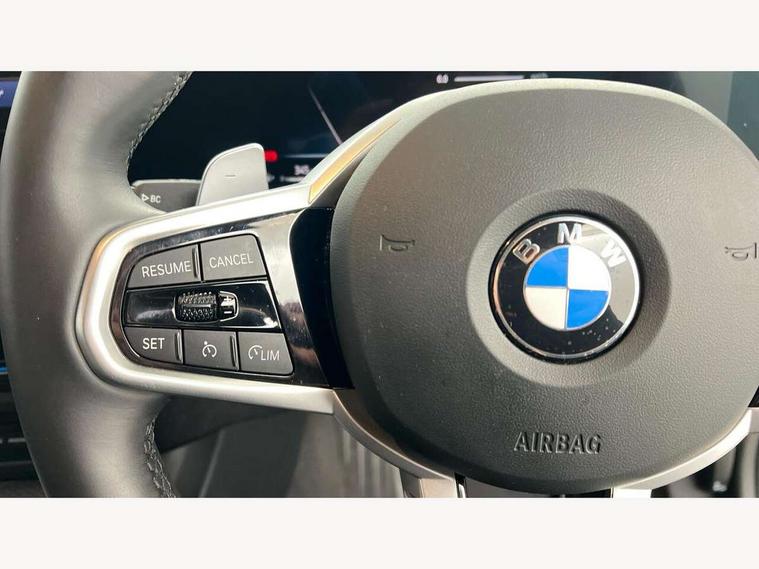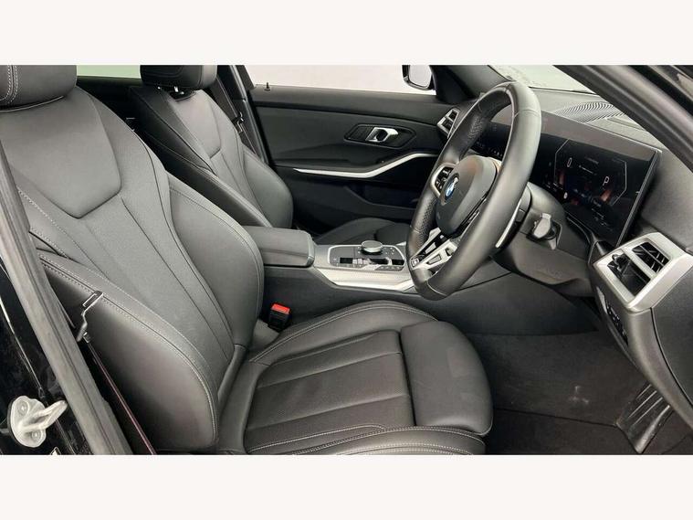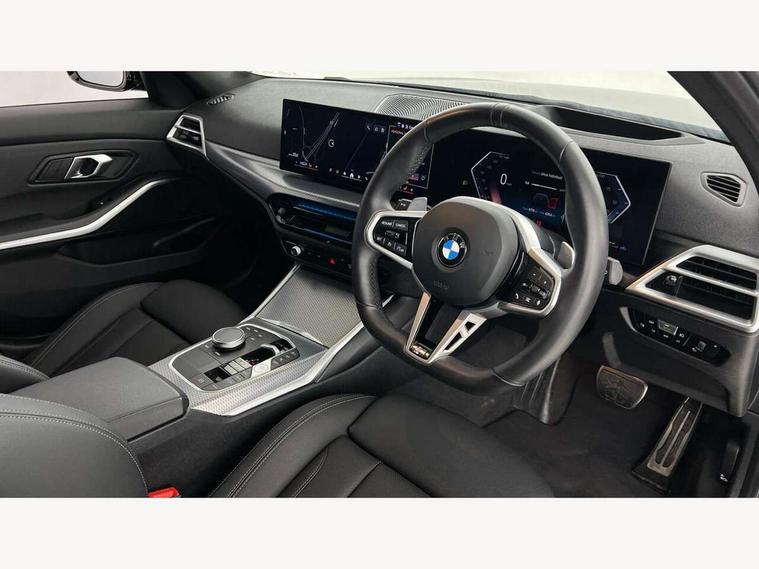 Active guard plus, Attentiveness assist, Automatic Start/stop button, Bluetooth Wi-Fi interface, BMW iDrive, BMW Teleservices, ConnectedDrive Services - last state call, Electric bootlid, Live cockpit plus with Navigation + 12.3" instrument display + 14.9" display, Intelligent voice assist, 2 USB, 4G LTE connect, Oil sensor for level and grade, Personal e-SIM, Shifting point display, Variable sport steering, Double joint spring strut front axle, Electronic differential lock control (EDLC), Fuel tank breather system, Steptronic Sport automatic transmission with steering wheel mounted gearshift paddles launch control and xtreme drive lever control, DAB tuner, 3rd brake light, Auto dimming rear view mirror, Automatic headlight beam throw control with load dependent regulating reaction, dynamic compensation of braking dive and acceleration squat, Bi-LED Low and high beam headlights, BMW emblem, engine compartment lid and tailgate, Body colour roof fin, Door sill strips, Electric windows - front and rear, with open/close fingertip control, anti-trap facility and comfort closing, Fading support, Follow me home headlight function, Front and rear bumper system with replaceable deformation elements, Front apron plastic in body colour, Fuel filler flap - right rear in body colour, Heat protection glazing on front windows and windscreen, Heated washer jets, High gloss chrome kidney frame with high gloss black kidney struts, High gloss shadow line roof rails, LED daytime running lights, LED rear lights, LED turn indicator, Licence plate panel integrated into front bumper and tailgate, M high gloss shadow line exterior trim, Matt black B-pillar finsher, Matt black window recess cover, One piece front bumper cover including towing eye cover in body colour, Rain sensor with automatic headlight activation, Rear side wing doors, Rear wiper, Reversing lights, Side frame decorative moulding black matt, Trailer stabilisation logic, Visible exhaust tailpipe finisher, Welcome lights in interior and door handle area, 12V power socket in front storage compartment, 2 front cupholder in centre console with clamping elements and matt black inlay, 3 seat bench in 2nd row, 3 spoke M Sport multifunction flat bottom leather steering wheel, 3 zone automatic air conditioning, 40:20:40 split folding rear seat with loading system, Anthracite headlining, Armrest integrated in front and rear door trim + front centre console armrest, BMW ID, Cruise control operation in steering wheel, Driving experience mode switch, Folding rear centre armrest with 2 cupholders, Front and rear headrests, Front and rear velour floor mats, Front reading light, Heated front seats, Height adjustable mechanically and infinitely variable steering column, Illuminated armrest storage compartment, Illuminated glove compartment, Illuminated luggage compartment, Lashing eyelets in luggage compartment, Single front passenger seat, Sunvisors with illuminated vanity mirrors and ticket pocket, Toolkit located in luggage compartment, Connected pack professional - 3 Series Saloon/Touring, Interior and exterior mirror pack - 3 Series Touring/Saloon, M sport exterior styling pack - 3 Series Saloon/Touring, Parking assistant pack - 3 Series, 3x3 point rear seatbelts, BMW emergency call, Child locks on rear doors, Crash sensor activating of airbags, Unlocking doors, hazard warning lights, interior light, safety battery terminal, Drive-off assistant, Driver and front passenger with seat occupancy detection for driver's and passenger side, Driver and passenger side airbags, body protection at side and airbags deploy from seat backrests, Dry braking, Dynamic brake control, Dynamic stability control + (DSC+) - Anti-lock Braking System (ABS) with brake assist and cornering brake control + Automatic Stability Control (ASC), Dynamic Traction Control - DTC, Electric parking brake including automatic hold function and automatic release of the parking brake when driving off, Front airbag deactivation, Front airbags for driver and front passenger, Head airbags in 1st and 2nd row, head protection at side, curtain airbags open from headliner above 1st and 2nd row, Plastic fuel tank, Side impact protection, Tyre pressure sensors, Ventilated front and rear disc brakes, Warning triangle and first aid kit, Alarm system, Centre lock switch, Closing system with central locking, Electronic vehicle immobiliser, Locking wheel bolts,